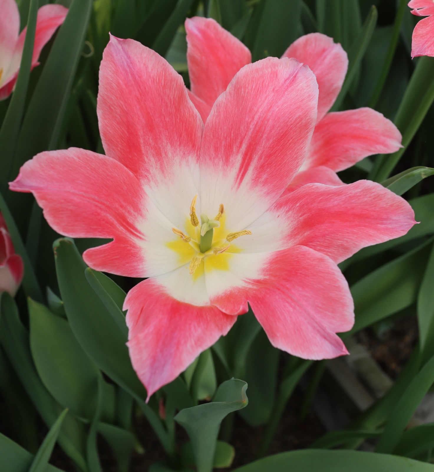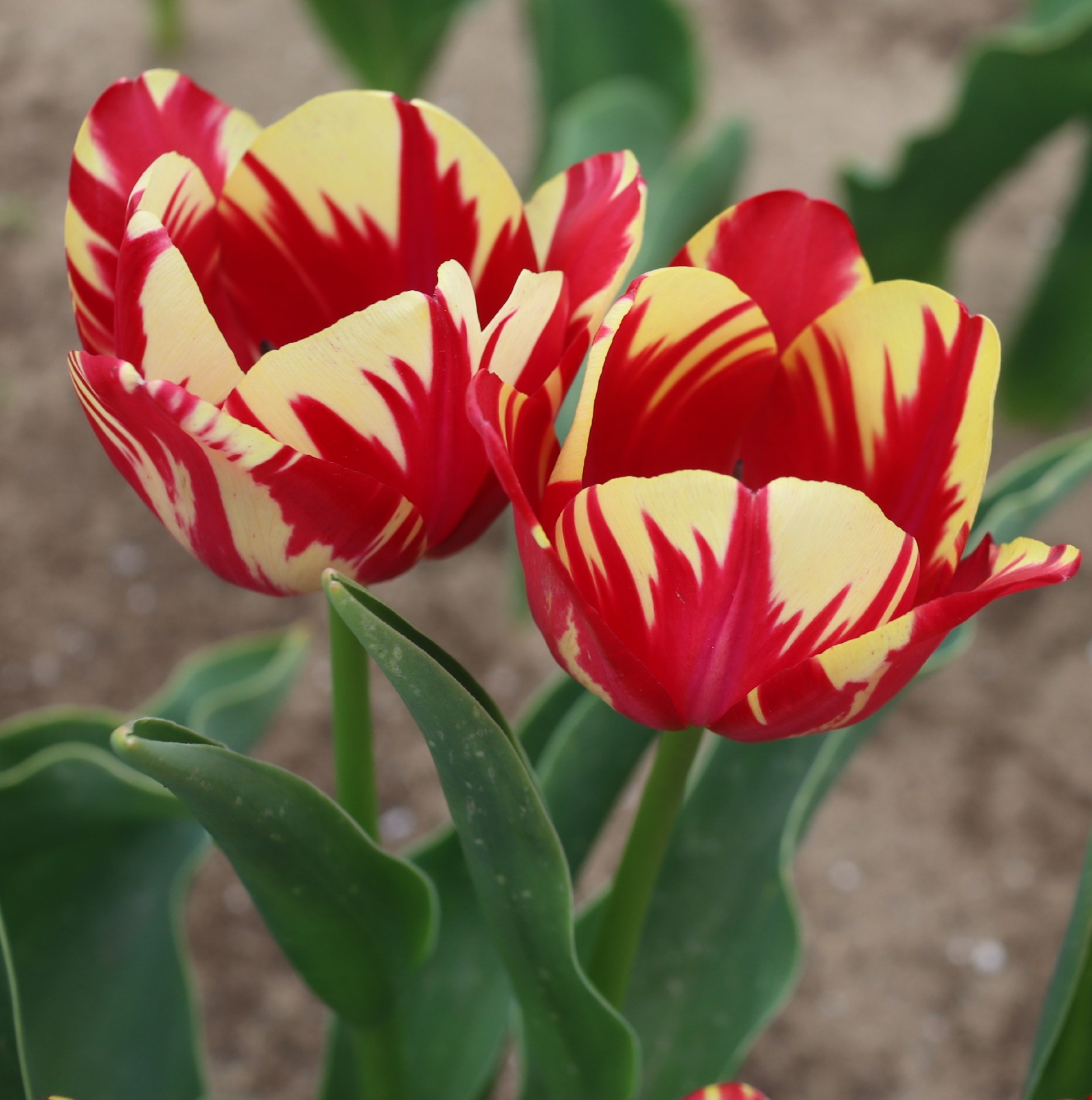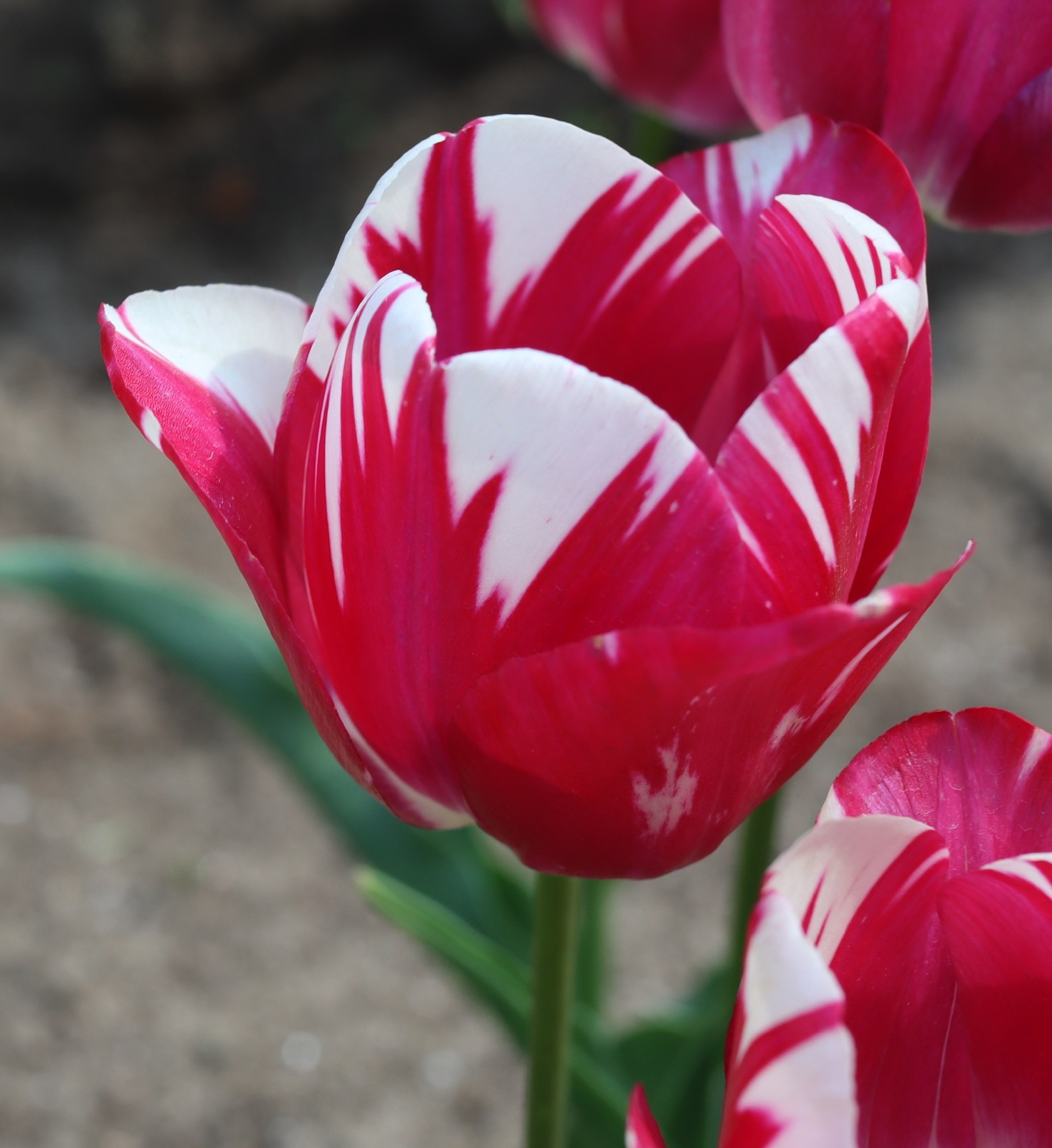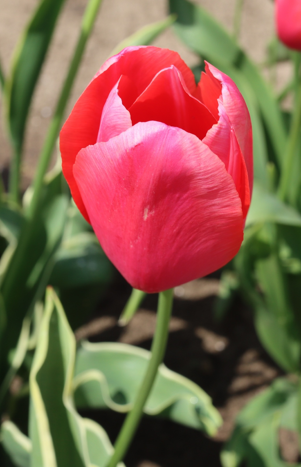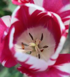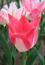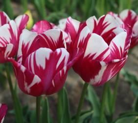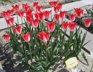 | スピッツベルゲン spitsbergen T ・トライアンフ系。2009年発表。強いコントラストの花が人気を呼んで出回り量が多くなった |