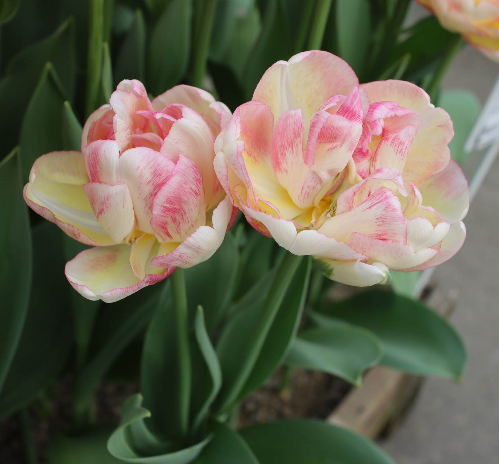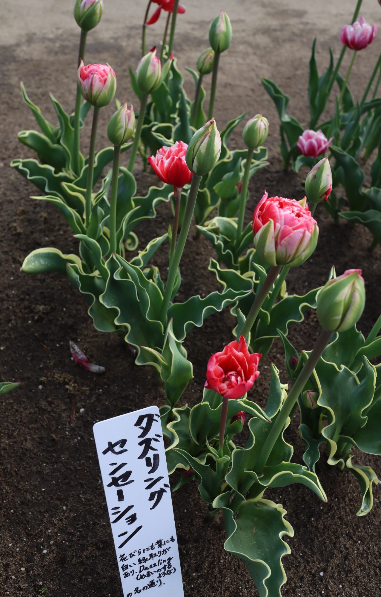 | ダブルシェイク DoubleShake DL ・クリーム/ピンクかすり ・オランダの品種。交配に日本の品種が使われているため「2つの国をシェイクした」の意味をこめた |