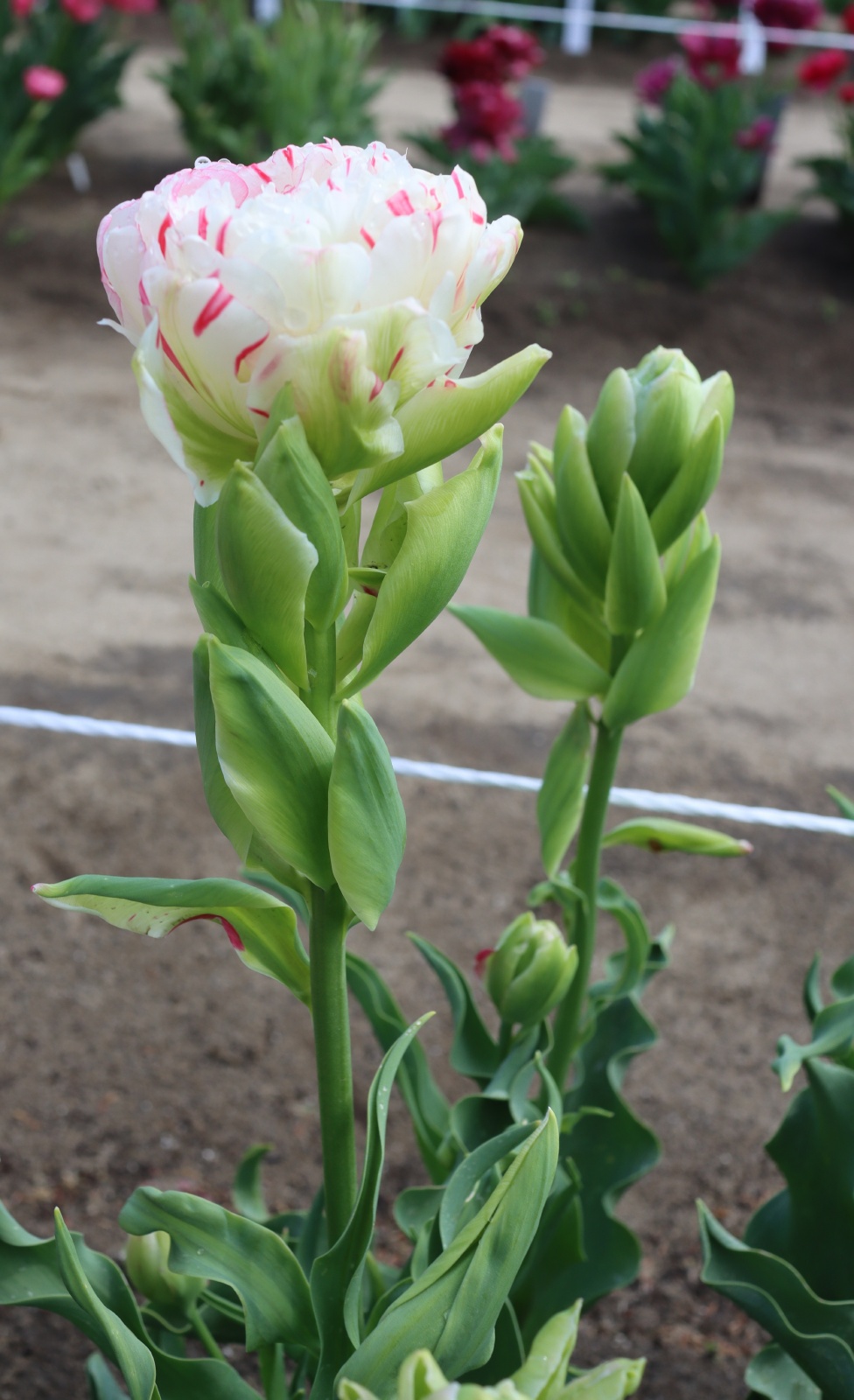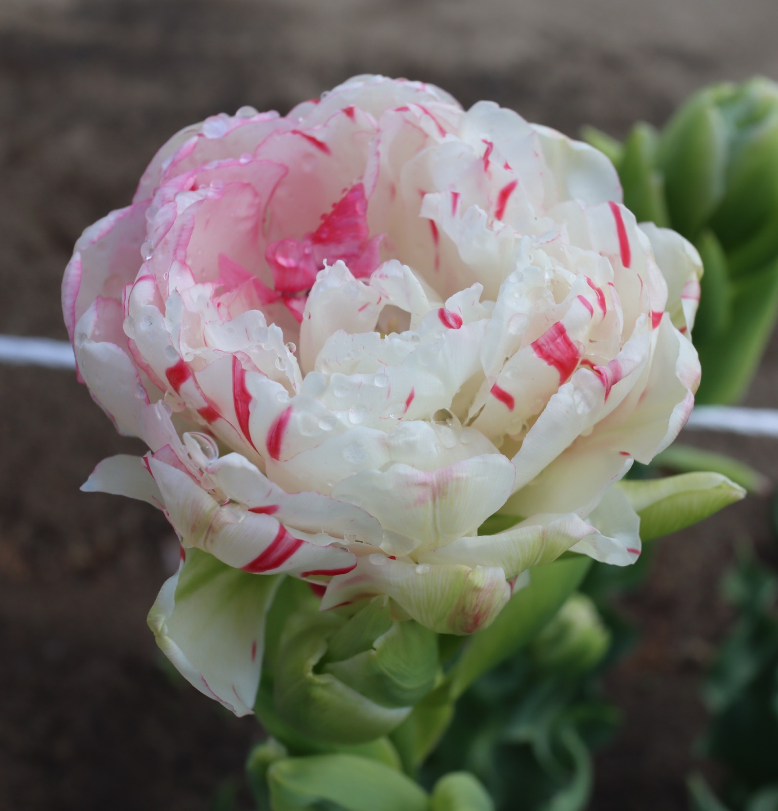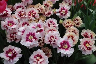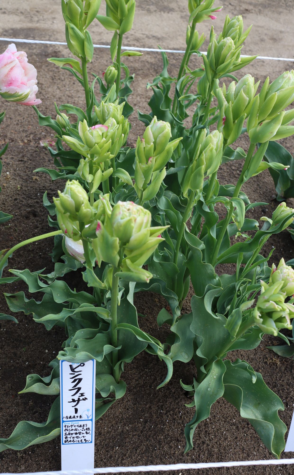 | ピンクフェザー PinkFeather DL ・八重遅咲き系。オランダでもあまり作られない品種。花弁が非常に多く色づかないで終わることも多い |
