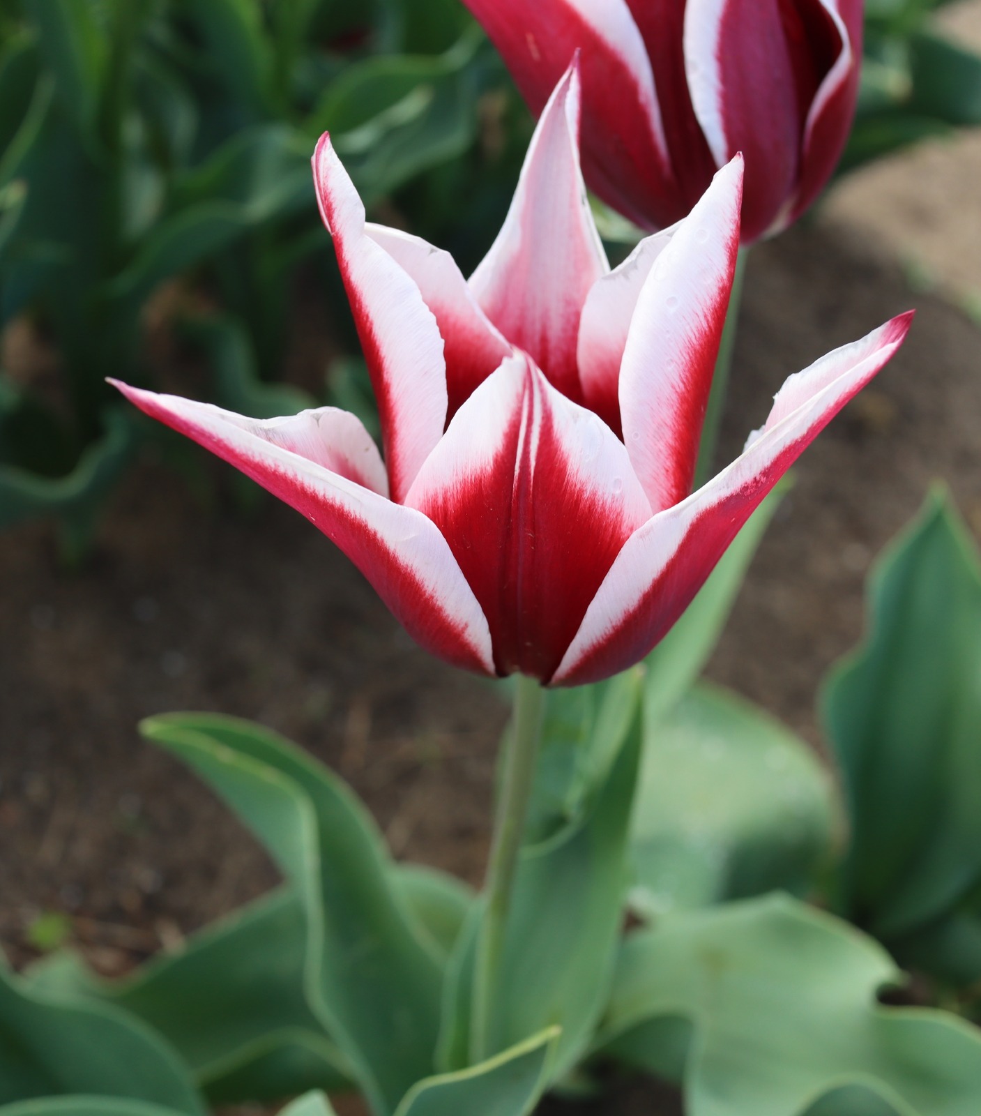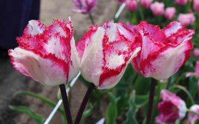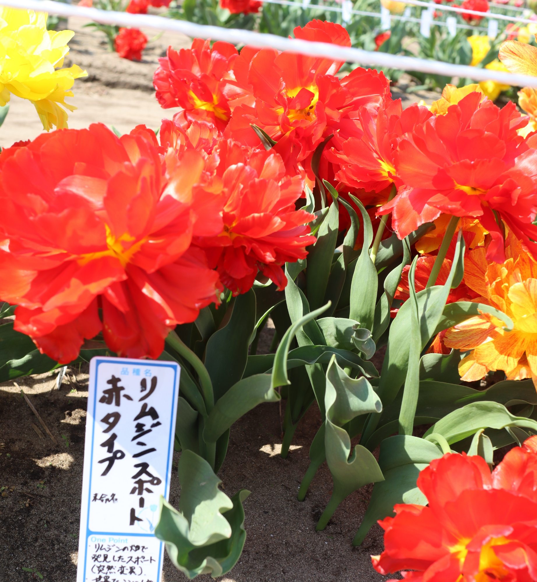 リンファンダーマーク LeenvanderMark T ・Red/White ・Medium、赤にクリームふち ・レーンバンデルマルク。1968年登録。オランダでも日本でも作付けの多いロングセラー。胎内市でも生産されている |