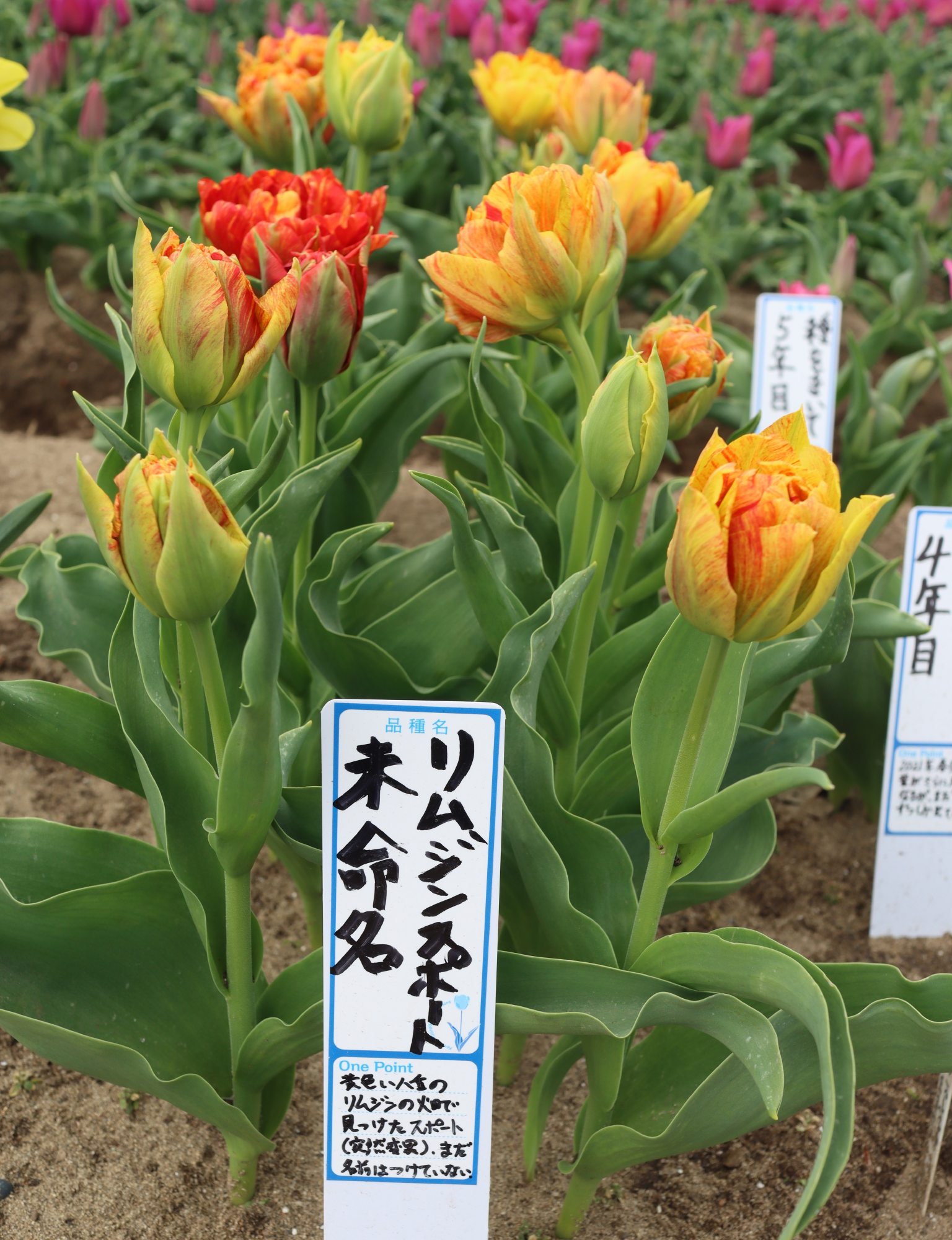| リムジン Limousine DE ・八重早咲き系。黄色の八重の中で大きなシェアを占める。花首がやや弱く雨で折れやすい。 |