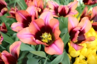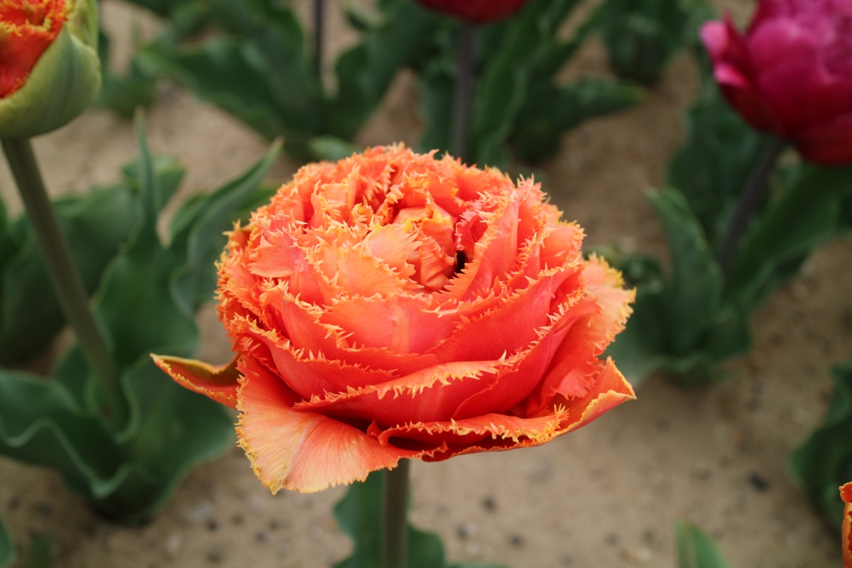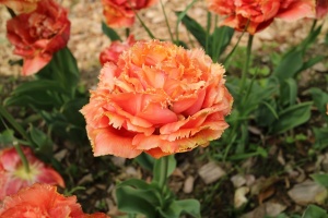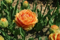 | センシャルタッチ SensualTouch FR ・Brown/Orange ・Medium ・Double Fringed Tulip ・フリンジ咲き+八重咲き。花弁の重なりが多く雨に弱い。 |