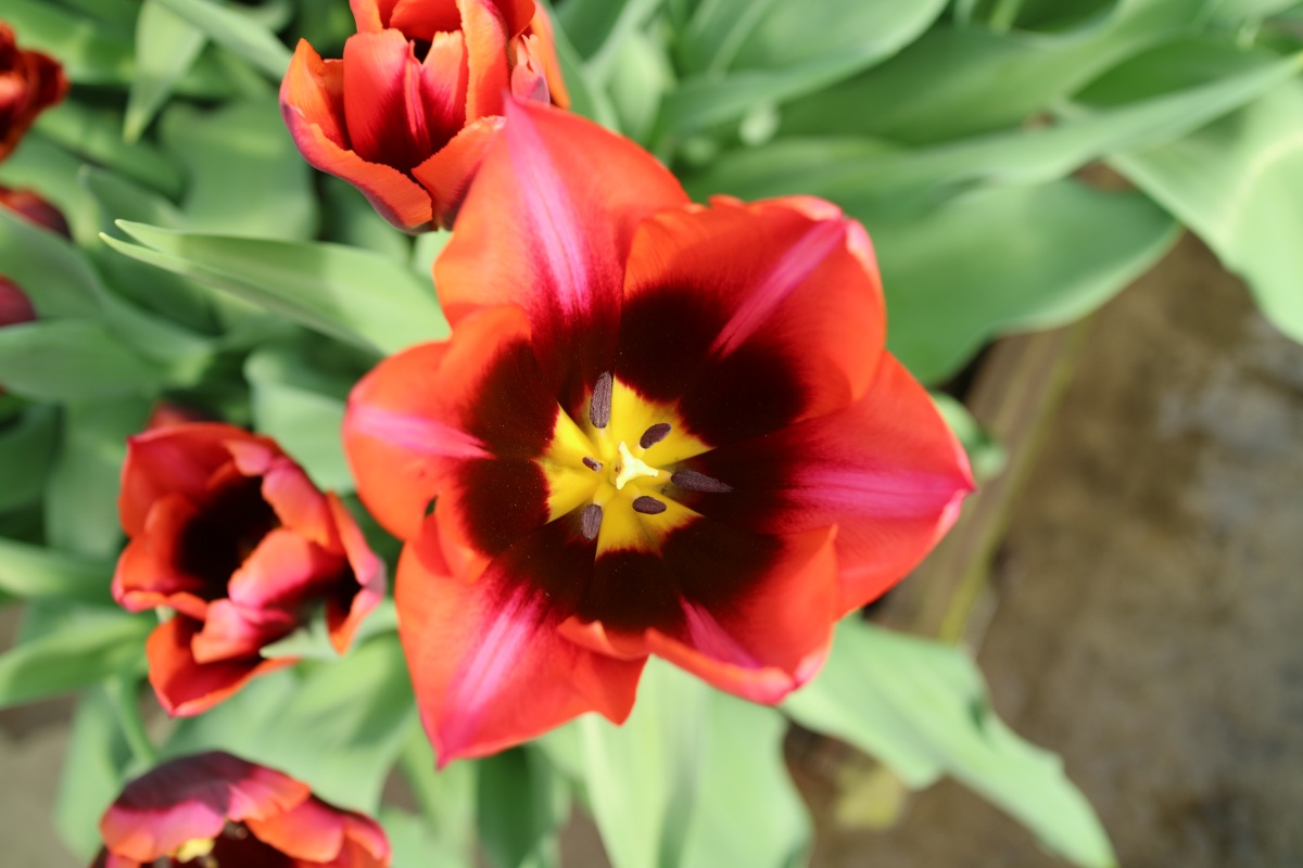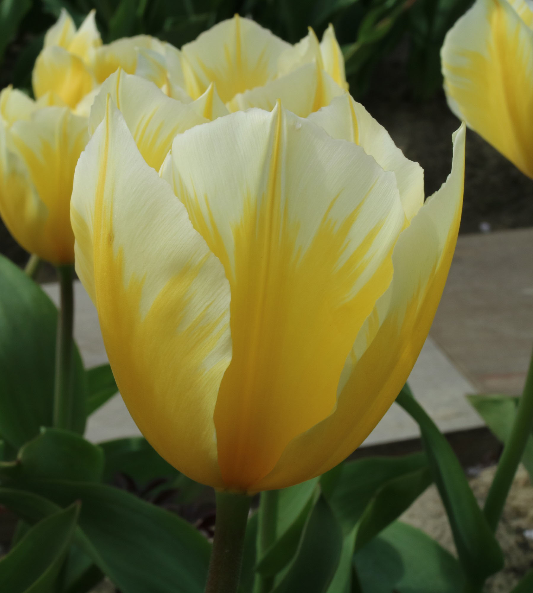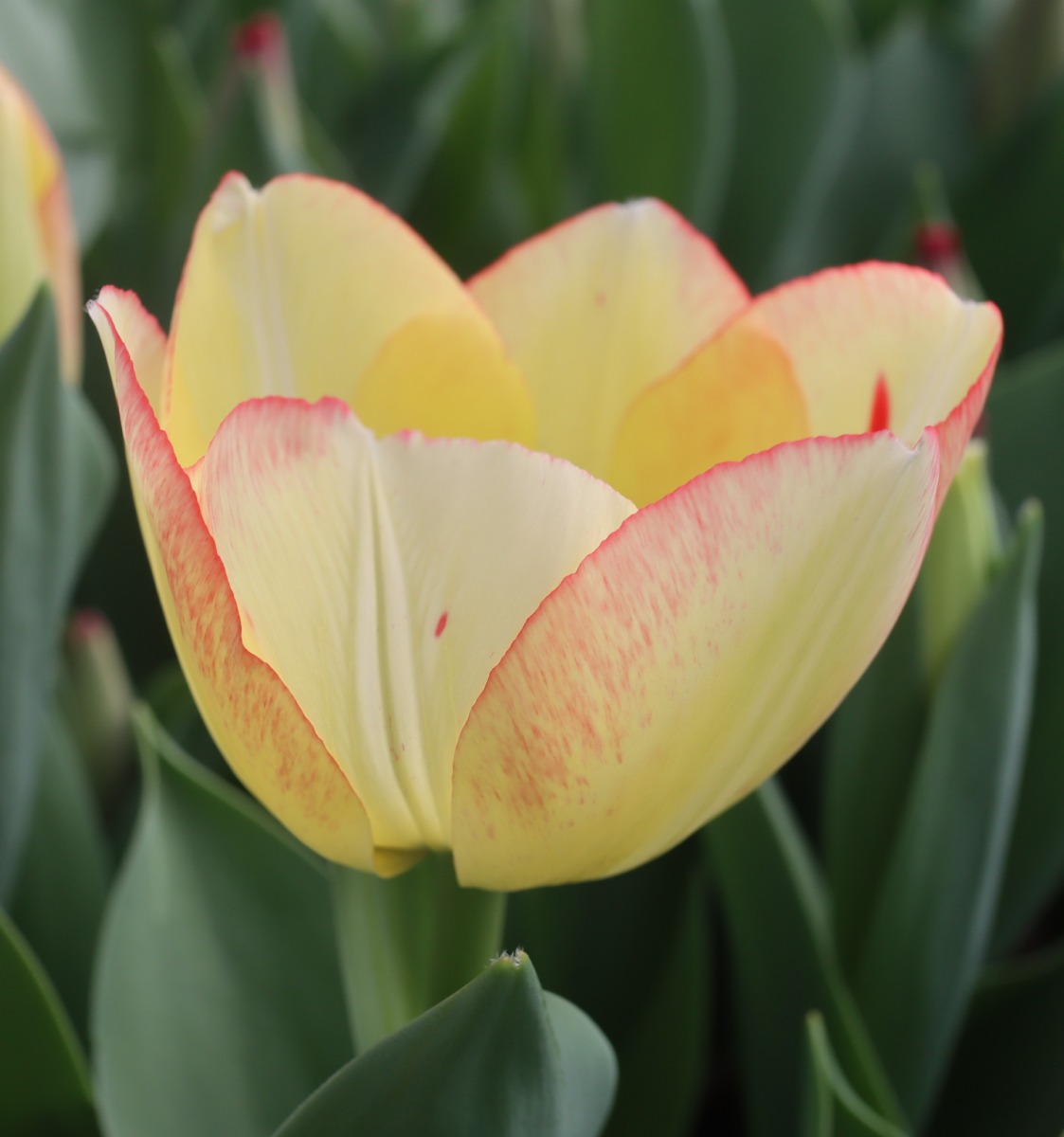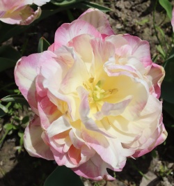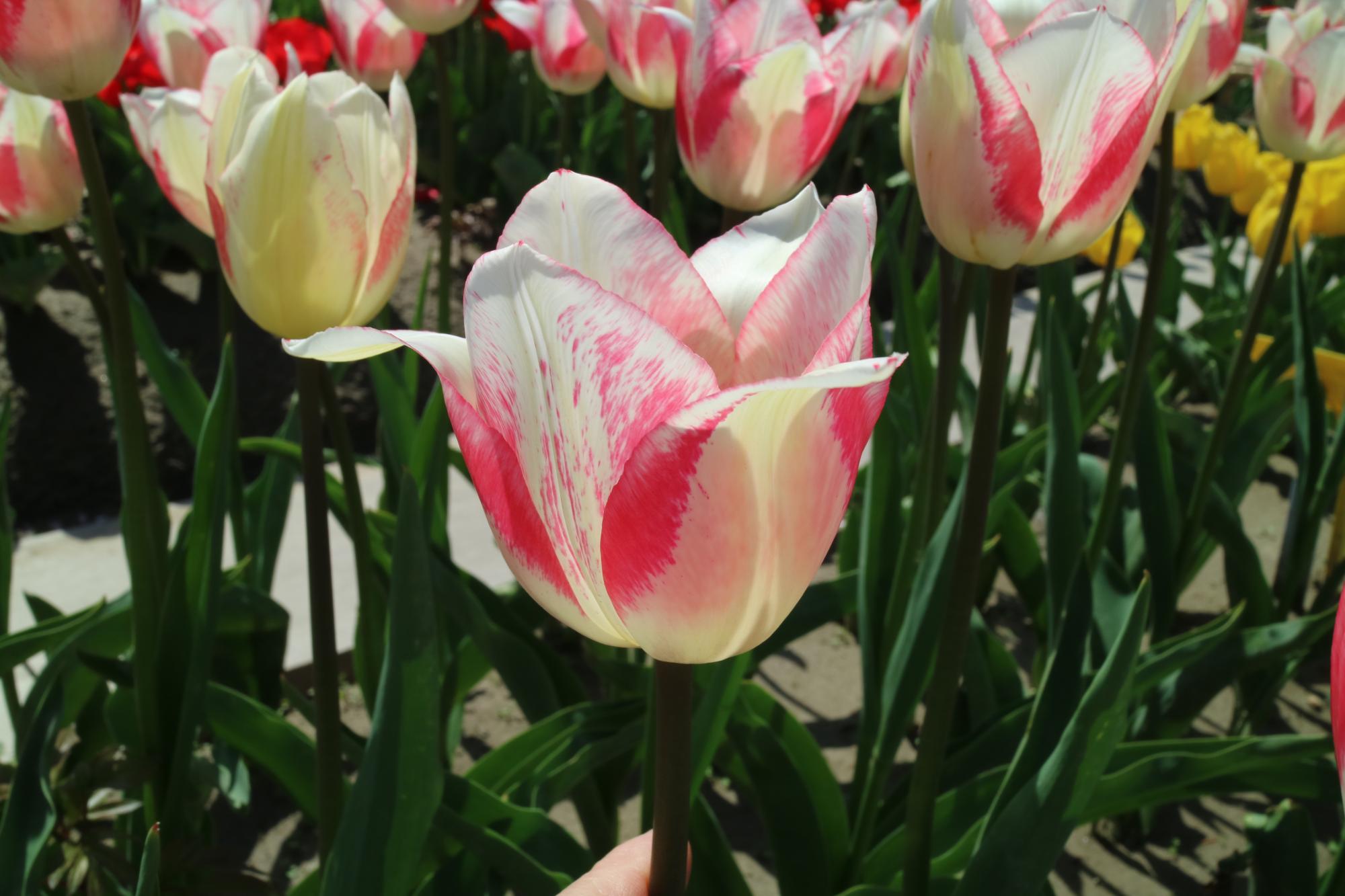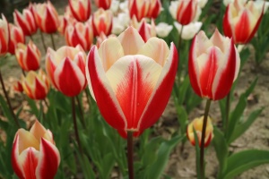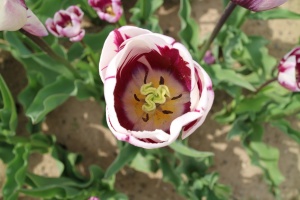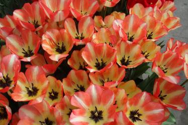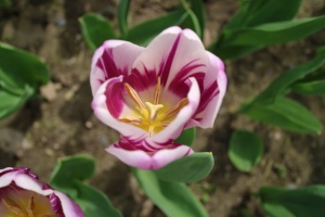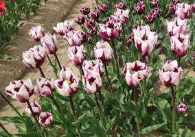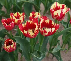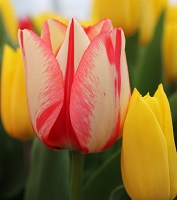 | スピッツベルゲン spitsbergen T ・トライアンフ系。2009年発表。強いコントラストの花が人気を呼んで出回り量が多くなった |