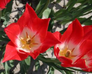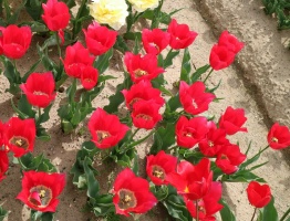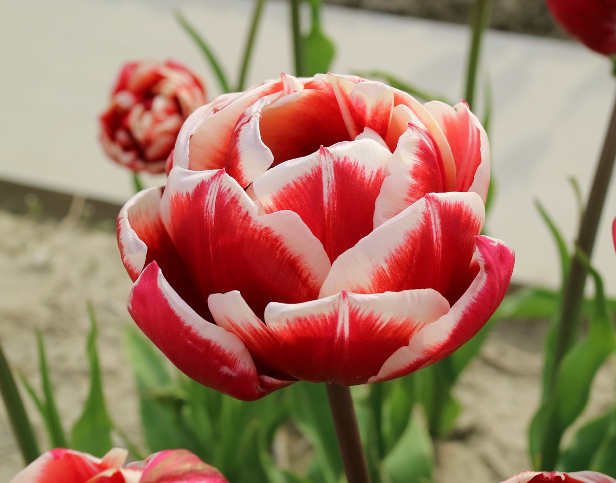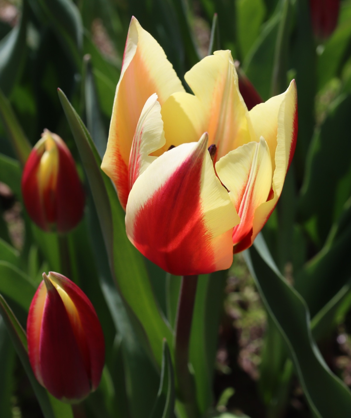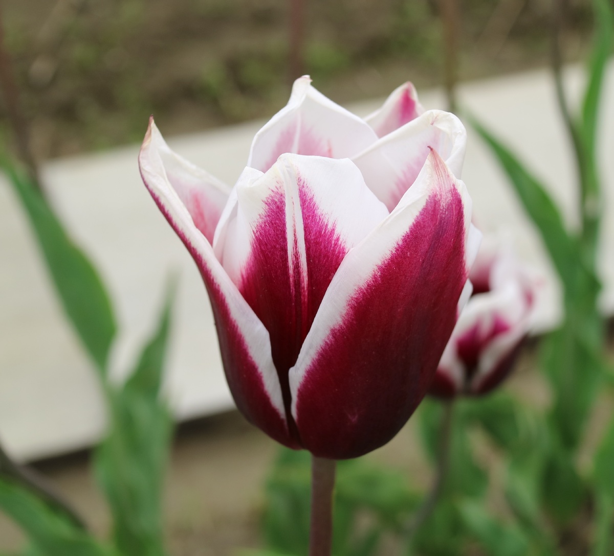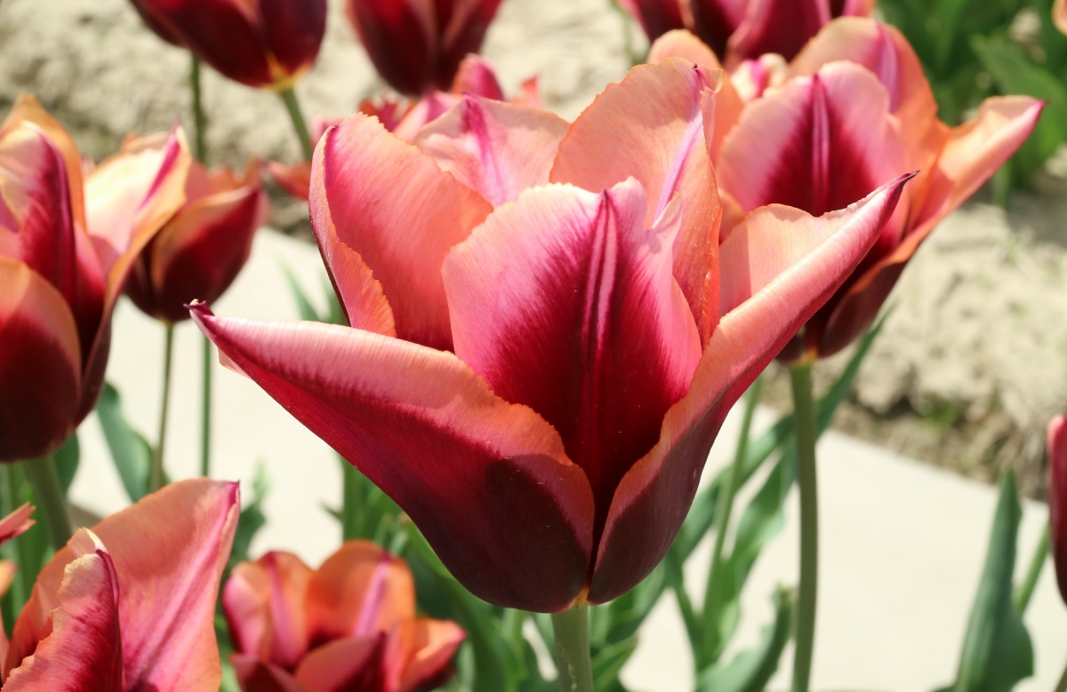 | スピッツベルゲン spitsbergen T ・トライアンフ系。2009年発表。強いコントラストの花が人気を呼んで出回り量が多くなった |