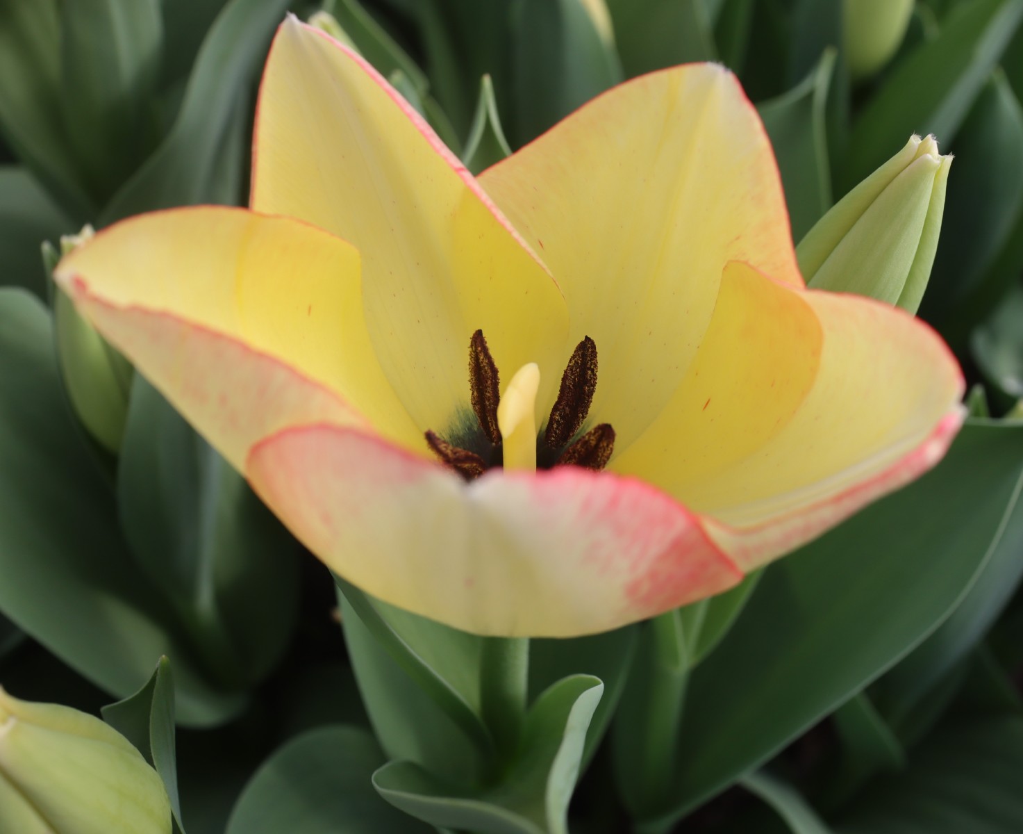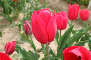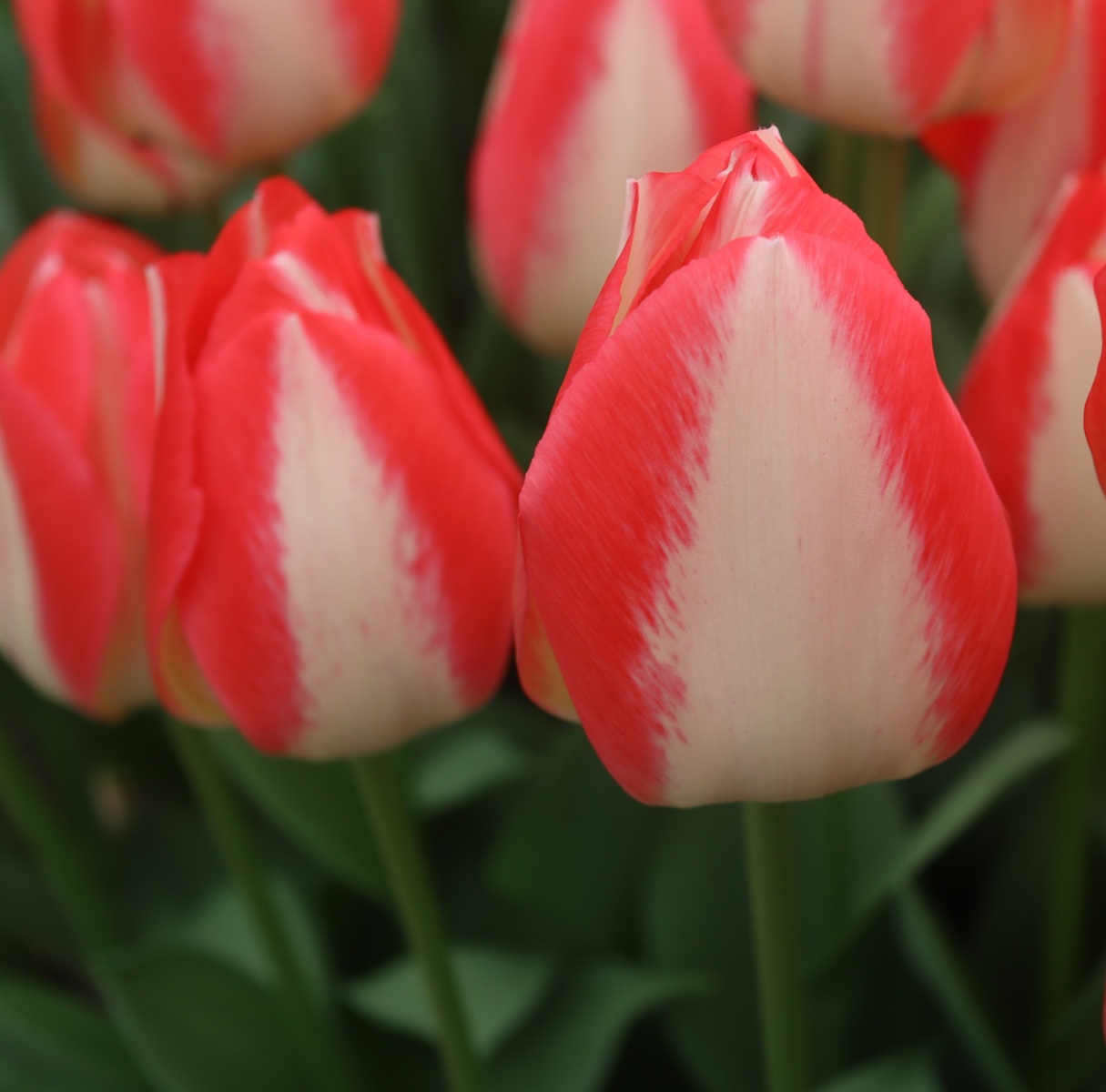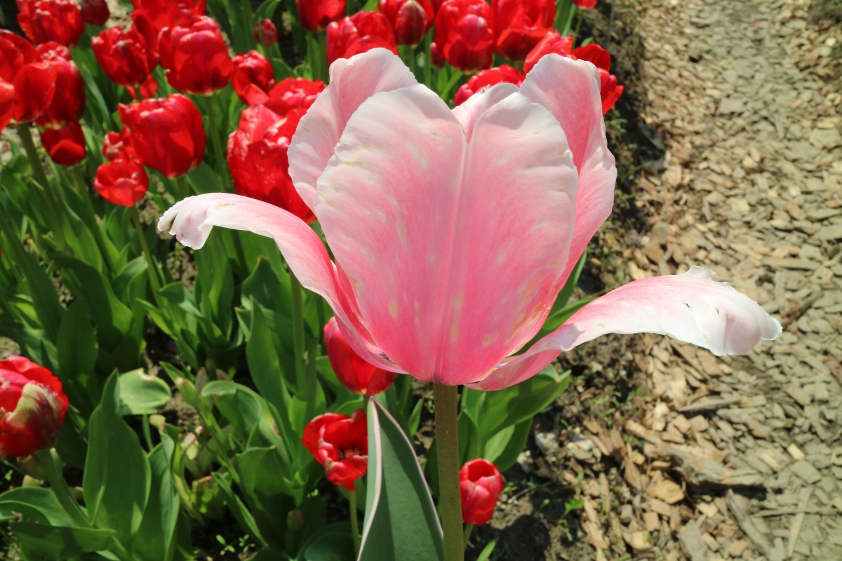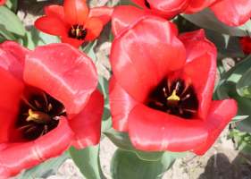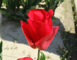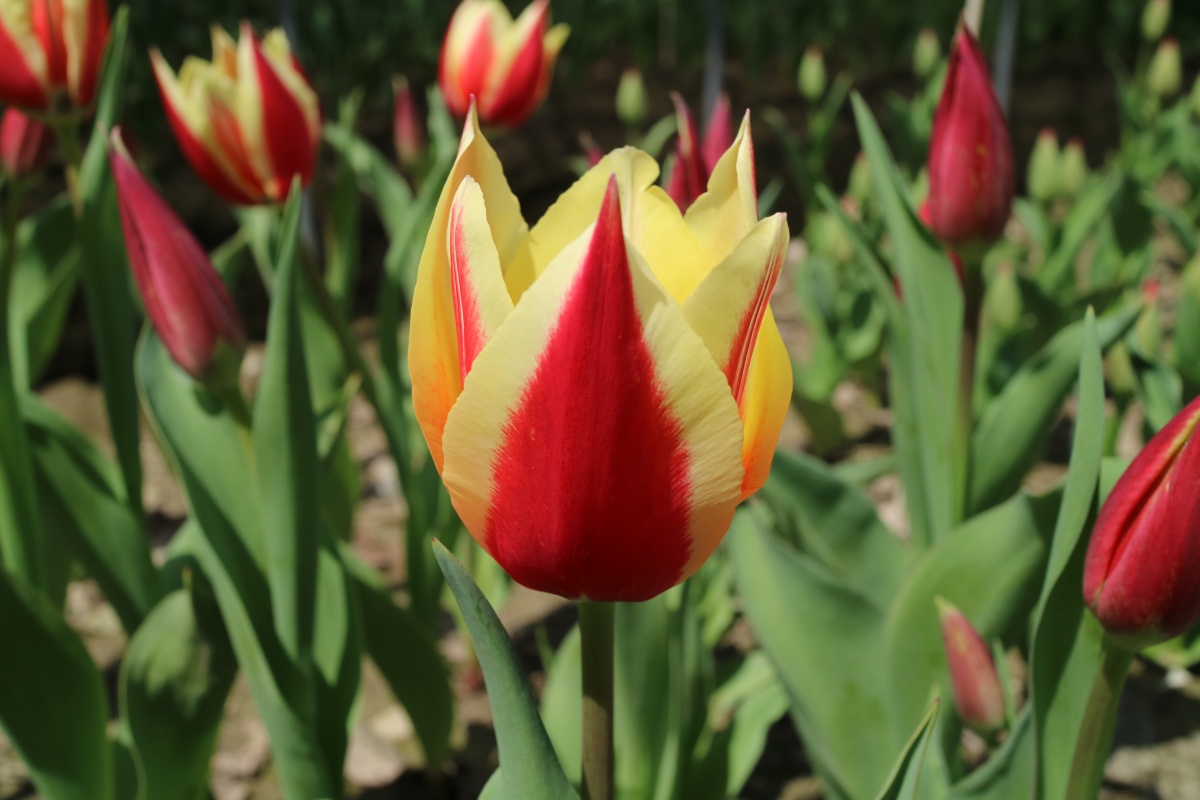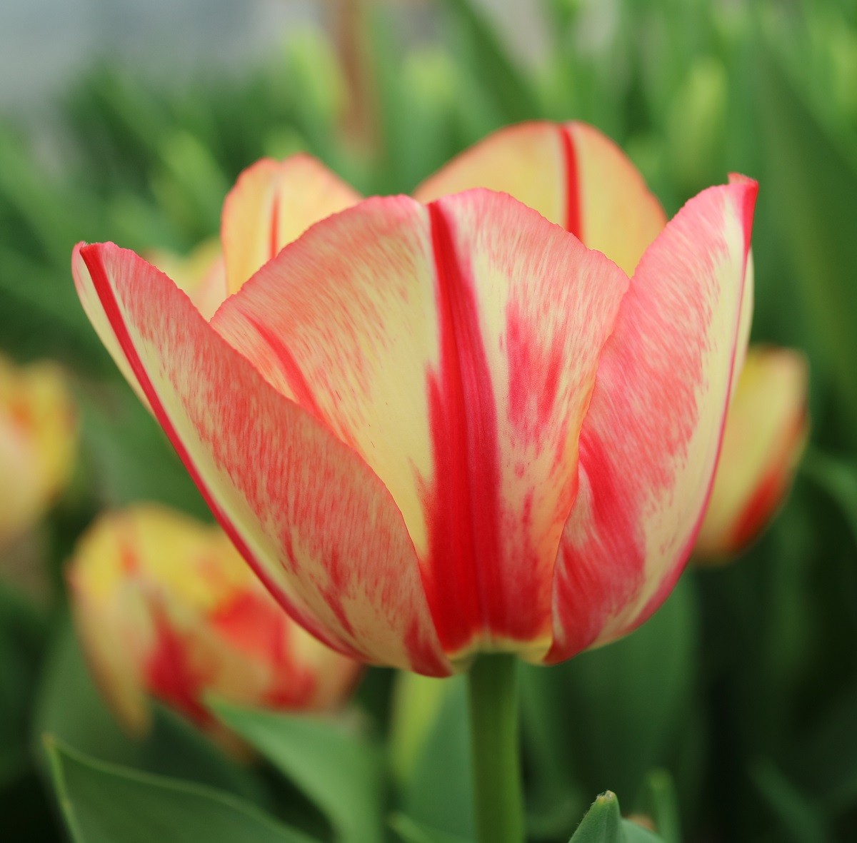 | スピッツベルゲン spitsbergen T ・トライアンフ系。2009年発表。強いコントラストの花が人気を呼んで出回り量が多くなった |