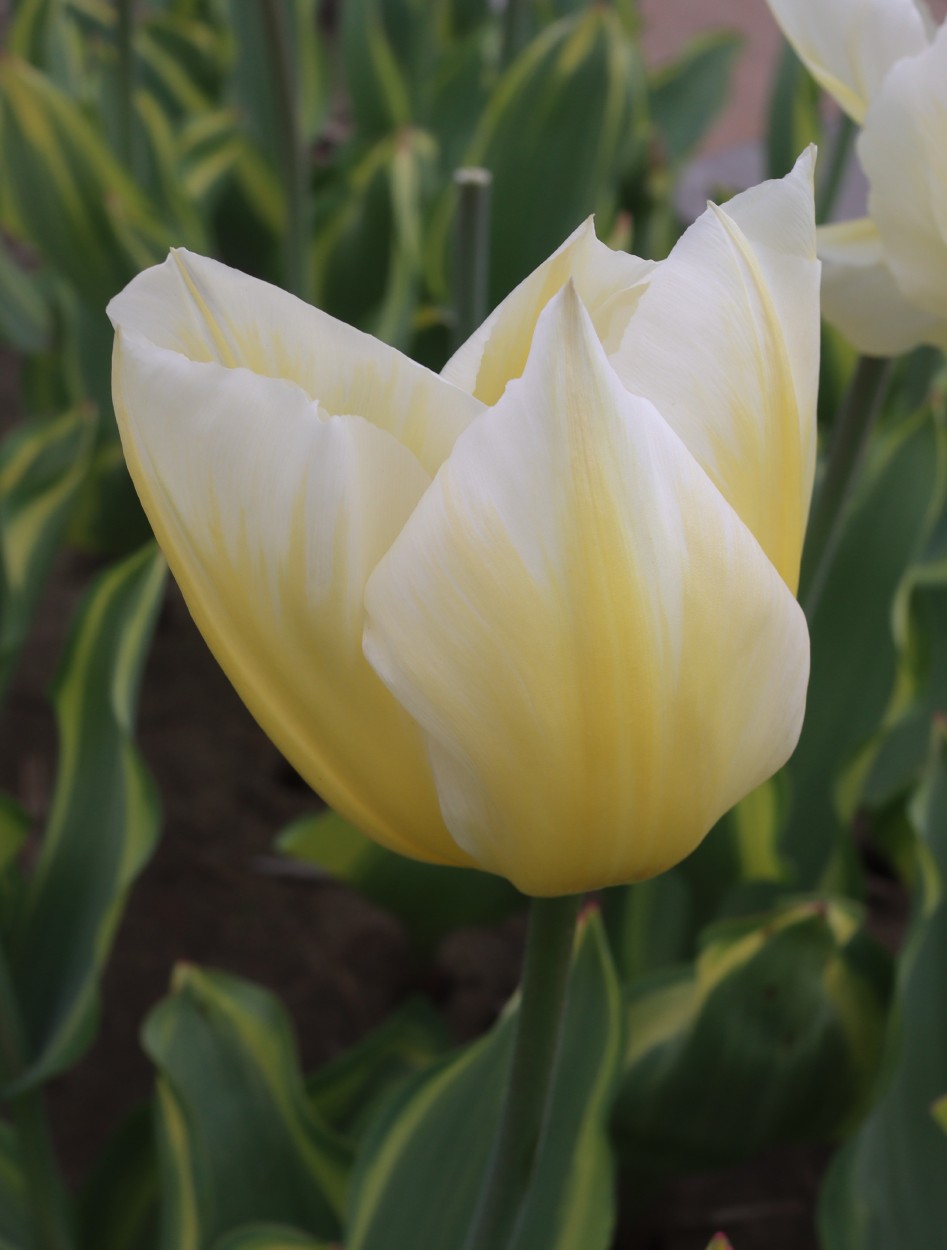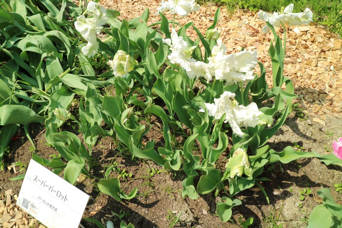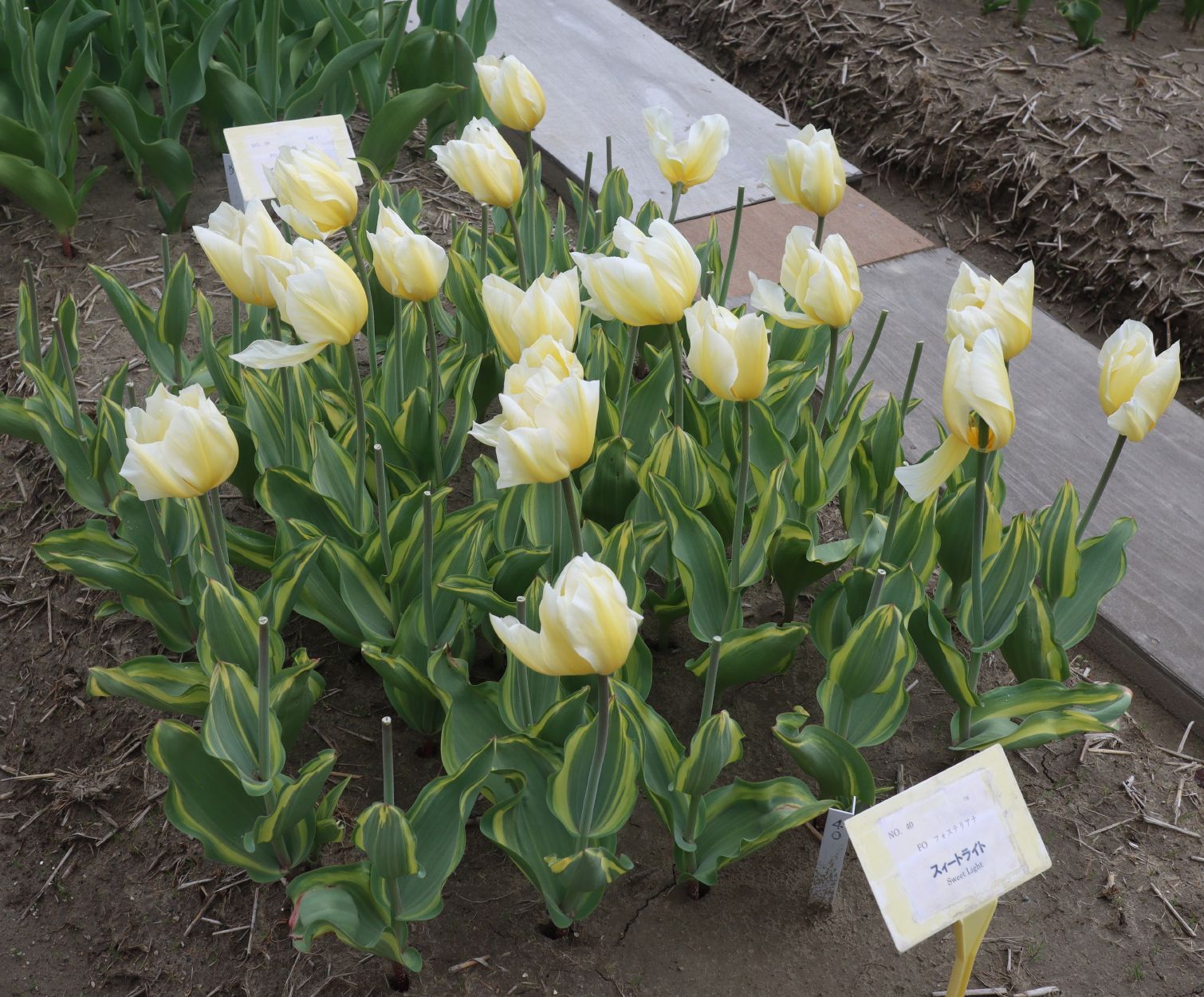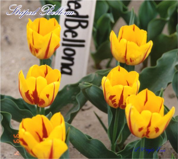 | ス-パーシンフォニー SuperSinfonie ・葉の斑入りが見事だが、光合成能力が低く、球根が育てにくいため生産されなくなった。 |