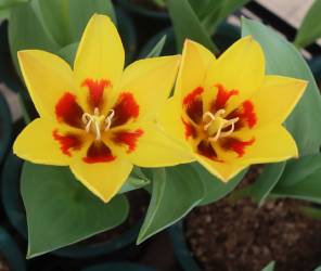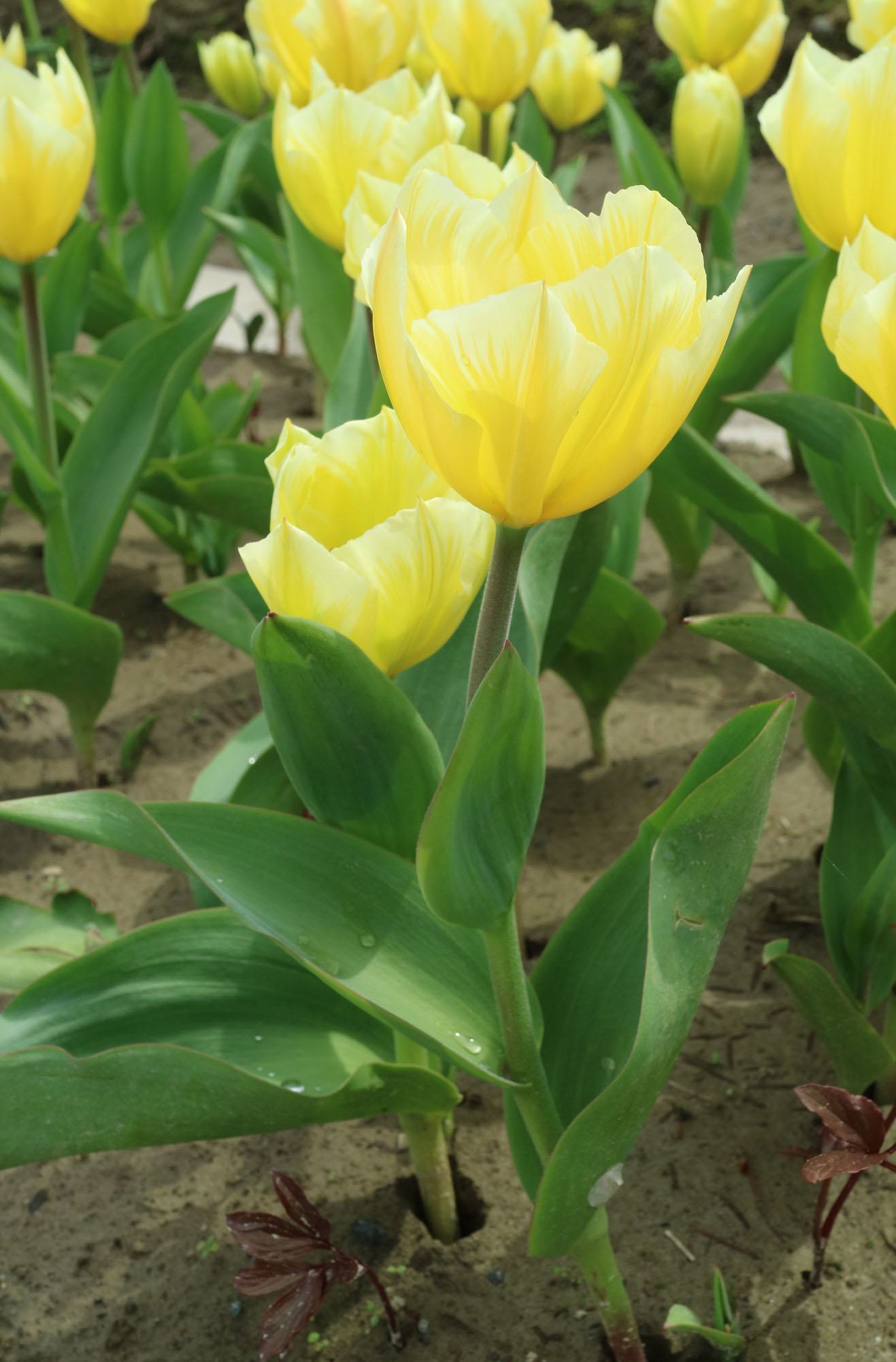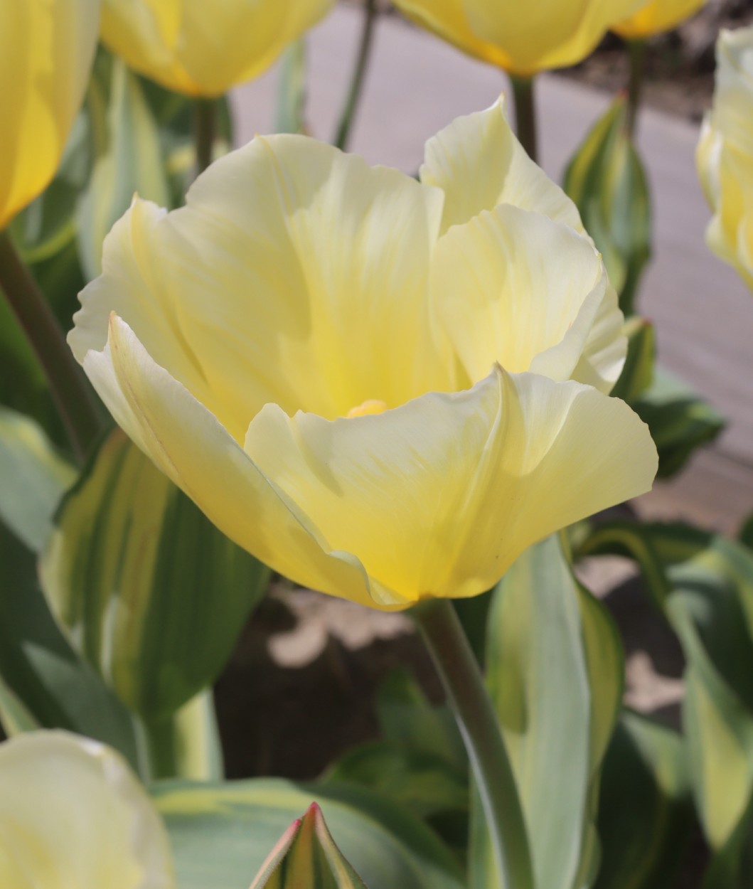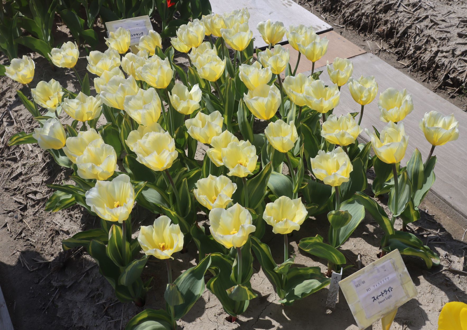 | ス-パーシンフォニー SuperSinfonie ・葉の斑入りが見事だが、光合成能力が低く、球根が育てにくいため生産されなくなった。 |