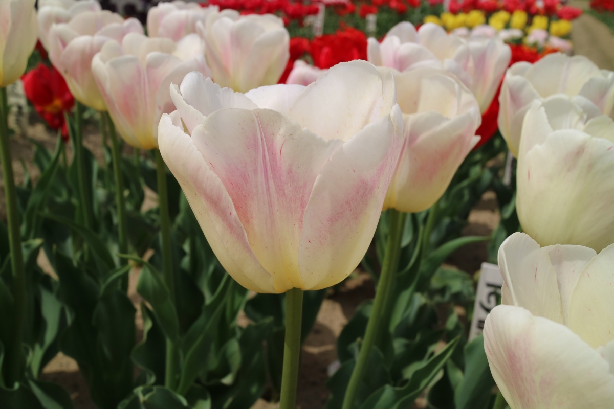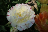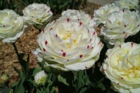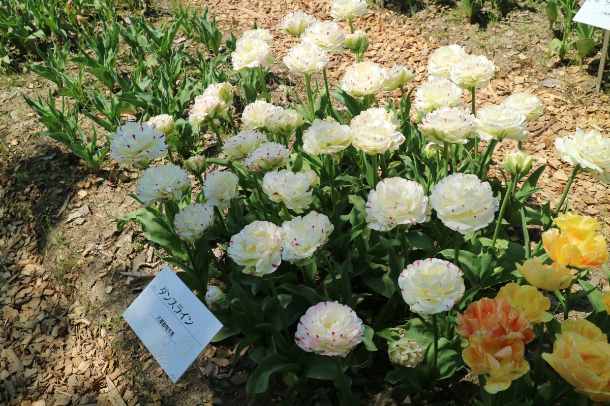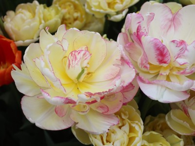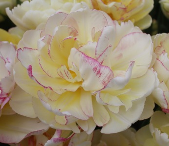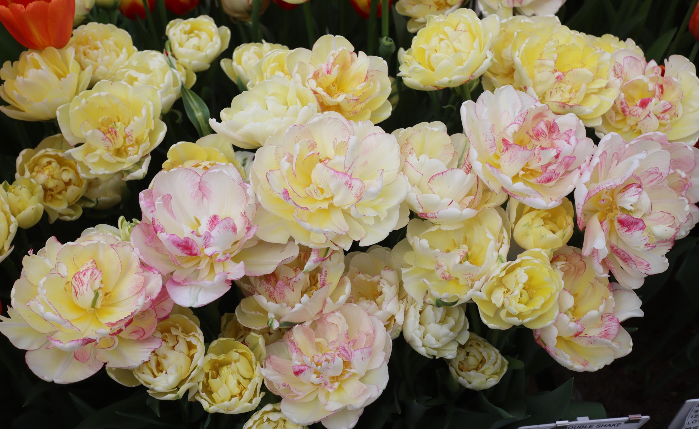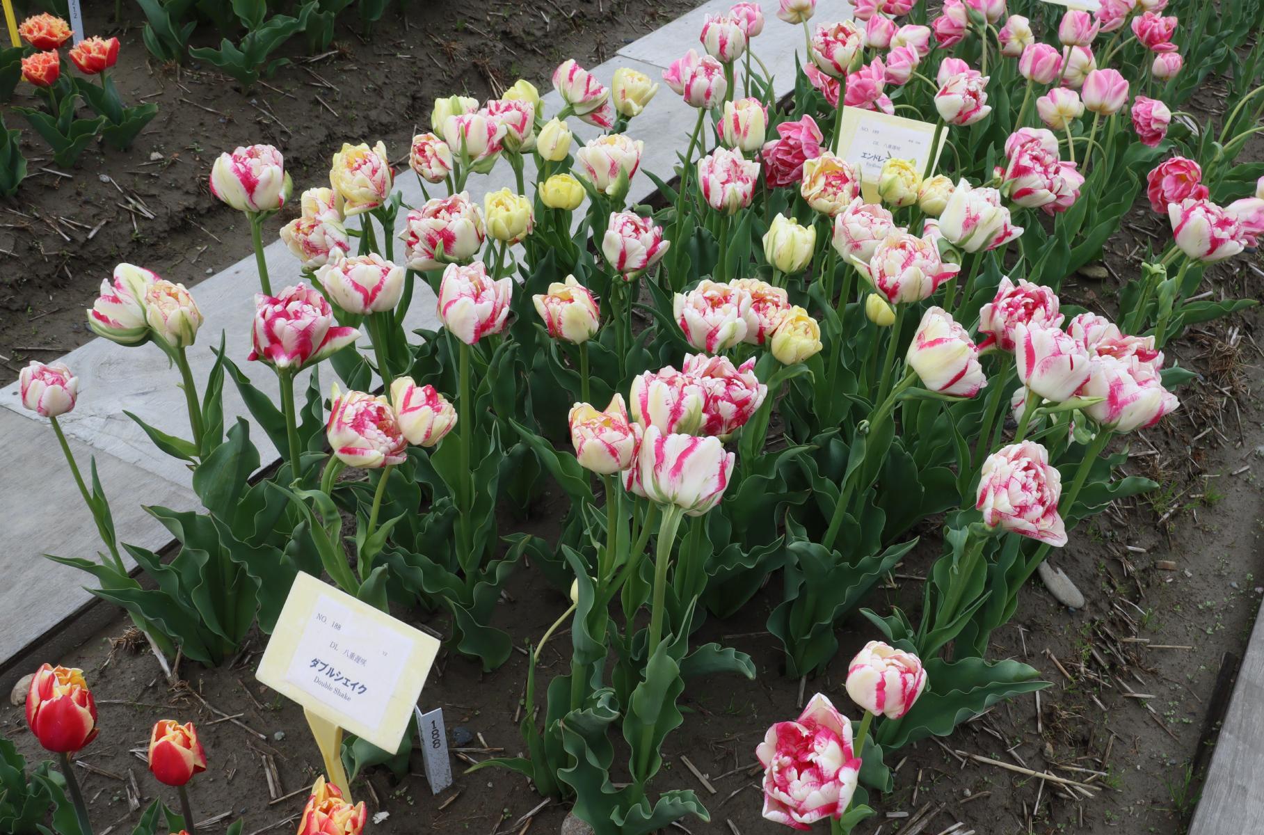 | ダブルシェイク DoubleShake DL ・クリーム/ピンクかすり ・オランダの品種。交配に日本の品種が使われているため「2つの国をシェイクした」の意味をこめた |