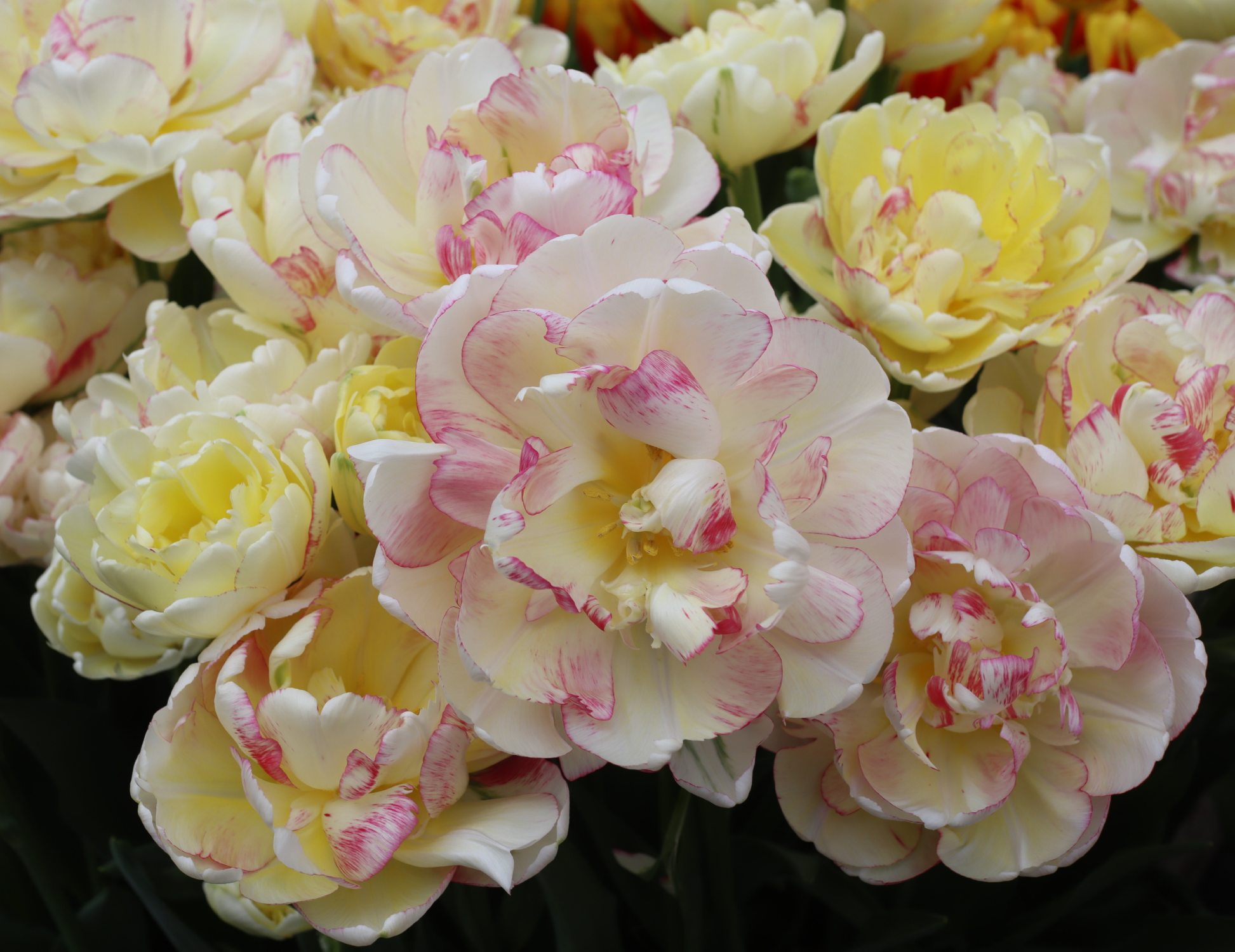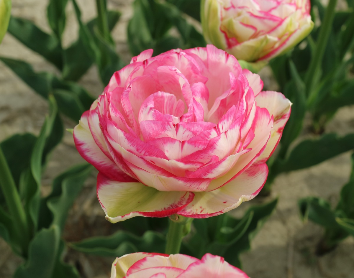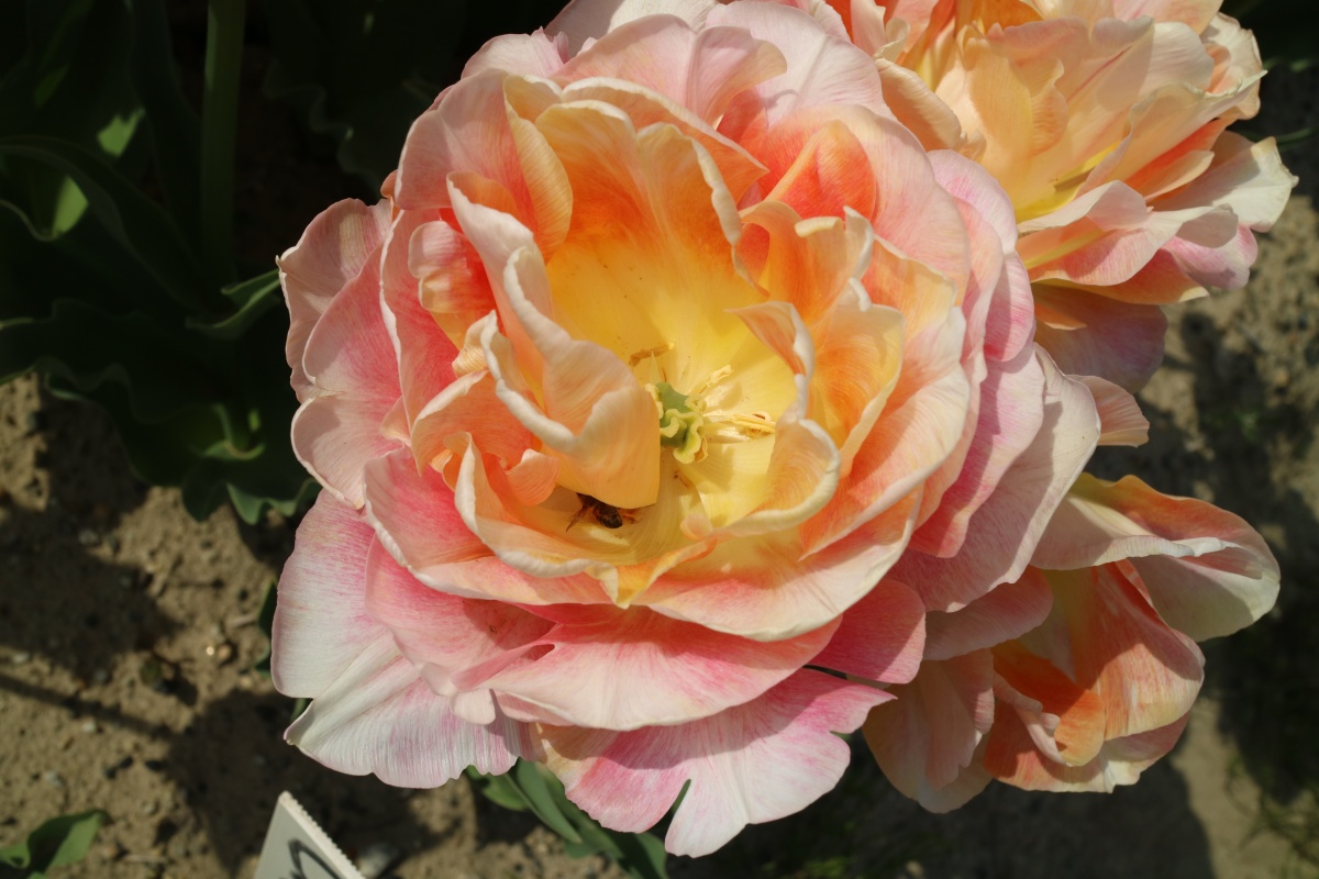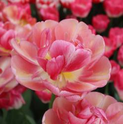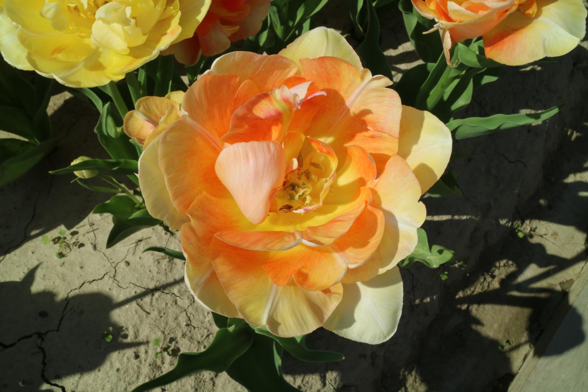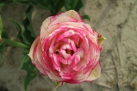 | ダブルシェイク DoubleShake DL ・クリーム/ピンクかすり ・オランダの品種。交配に日本の品種が使われているため「2つの国をシェイクした」の意味をこめた |