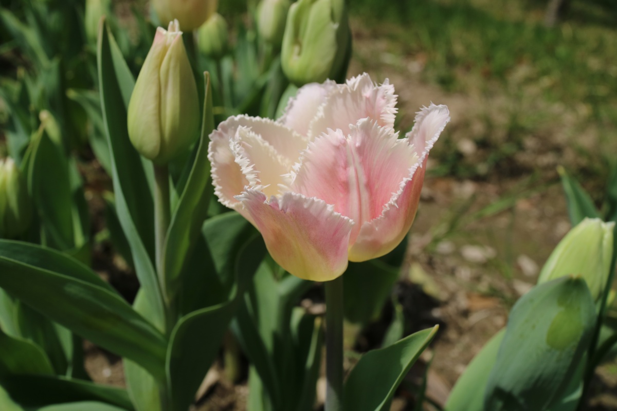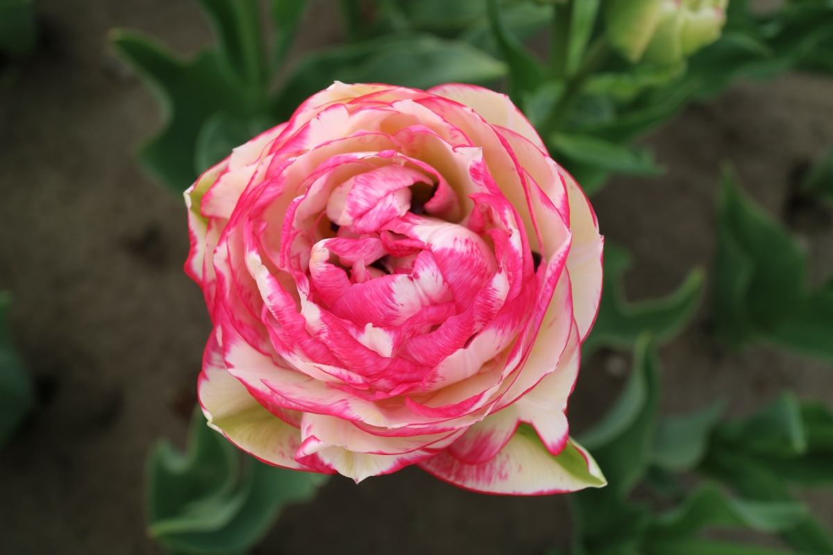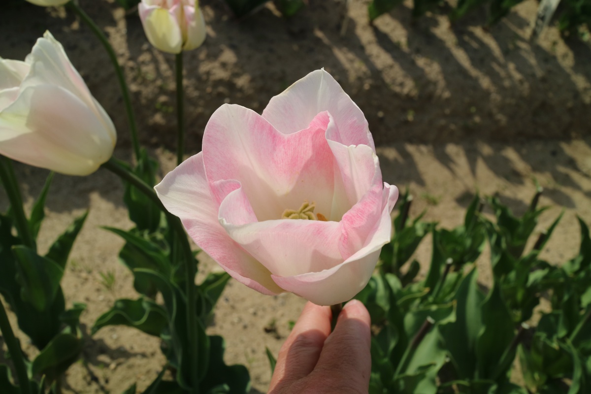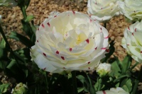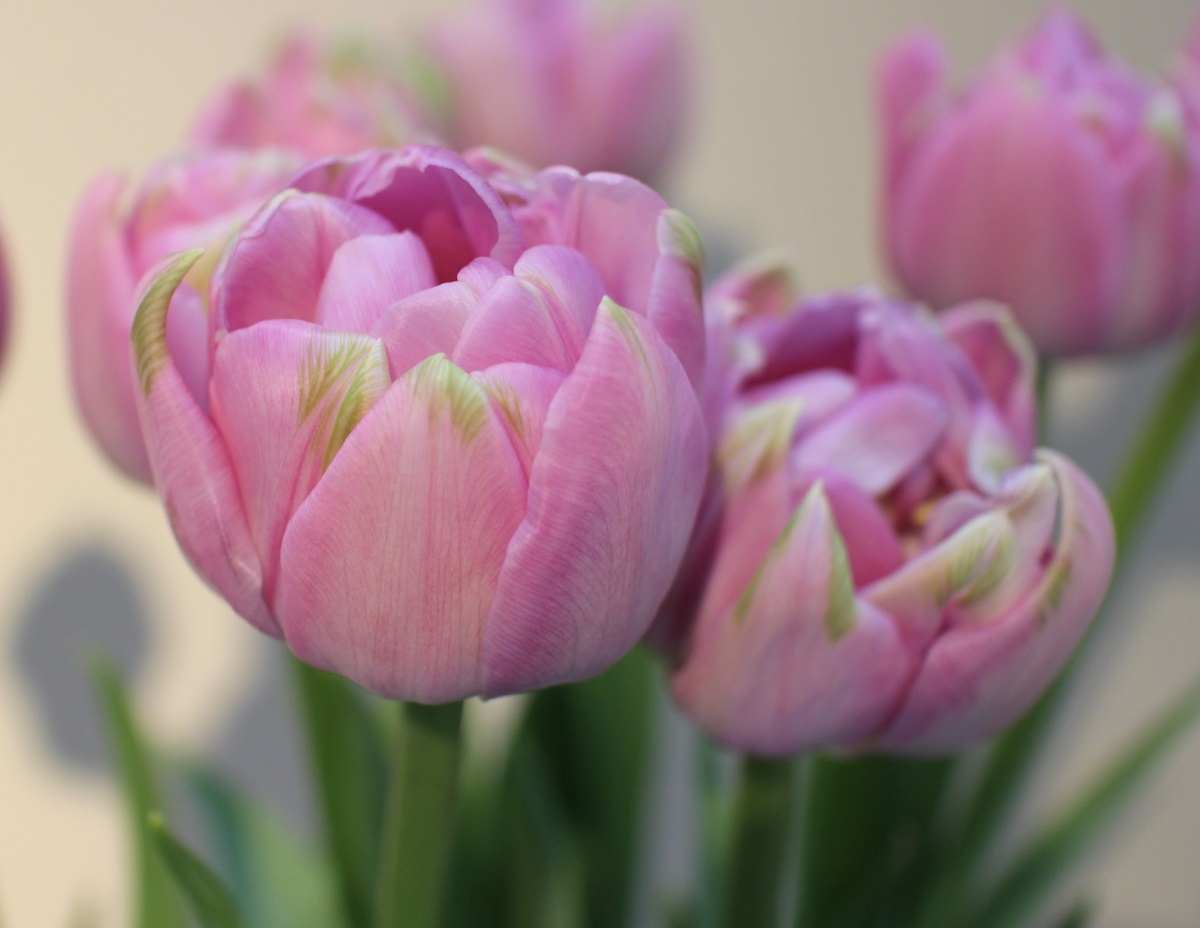 | ダブルシェイク DoubleShake DL ・クリーム/ピンクかすり ・オランダの品種。交配に日本の品種が使われているため「2つの国をシェイクした」の意味をこめた |