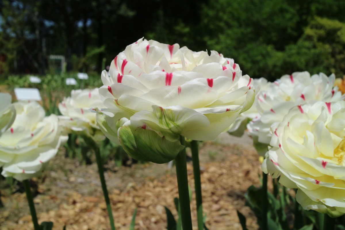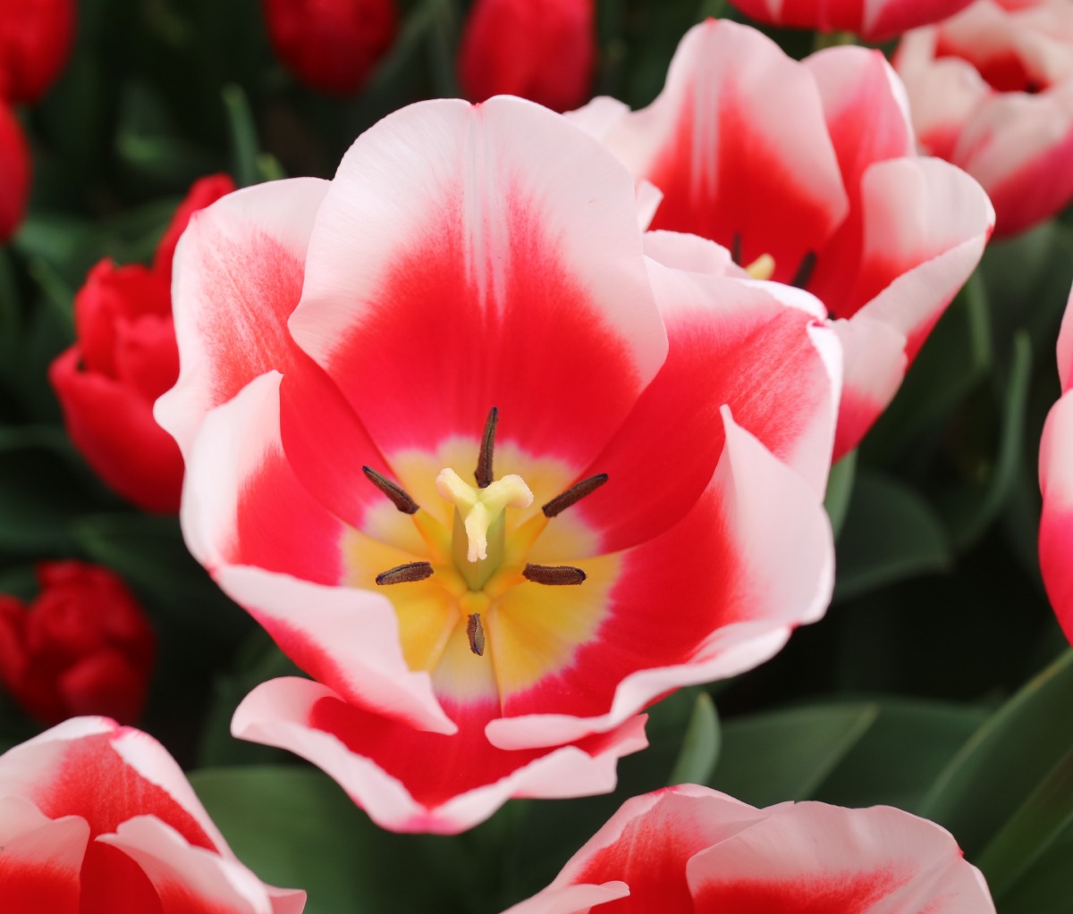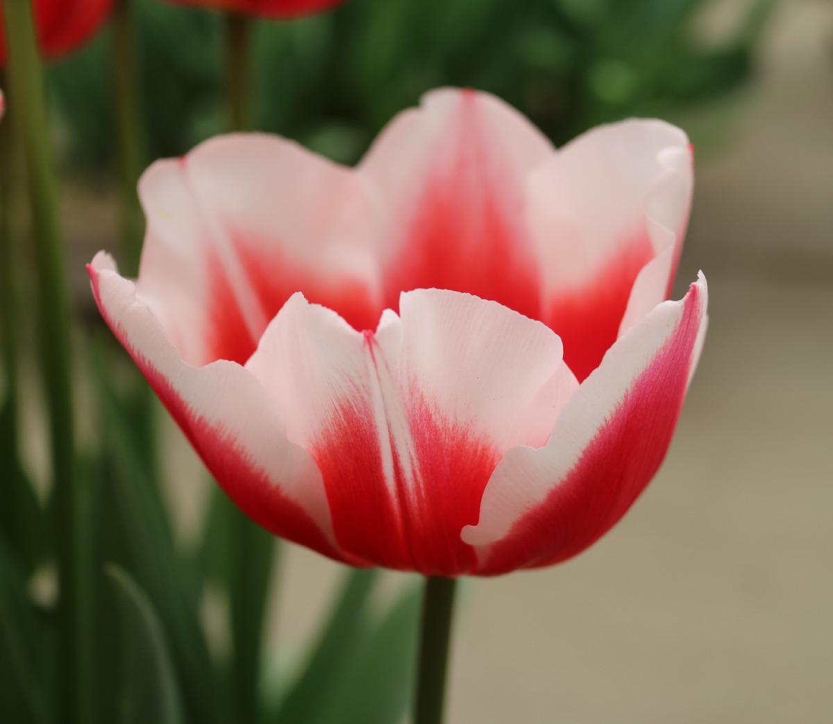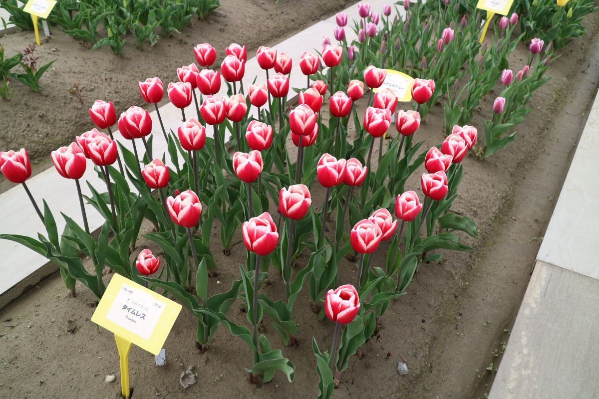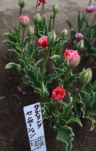 | タイムレス Timeless T ・赤/白 ・ジャパンフラワーバルブオブザイヤーの受賞歴あり。丸みのある花型 |