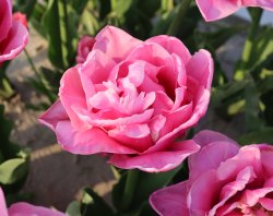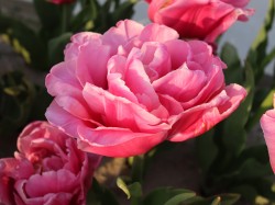 | ダブルアローサ DoubleArosa DE ・ピンク ・2018年登録。特に花弁の重ねが多いタイプ。八重咲き。胎内市でも生産されている。 |