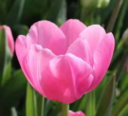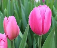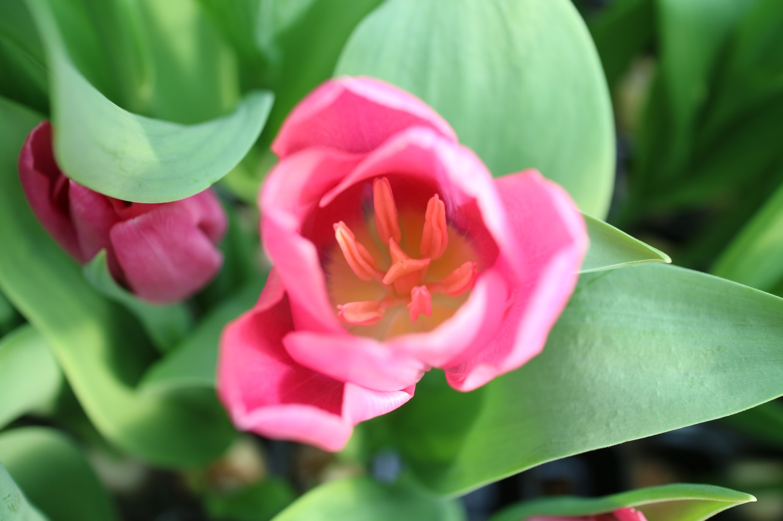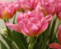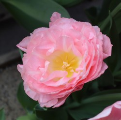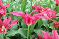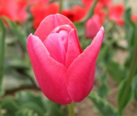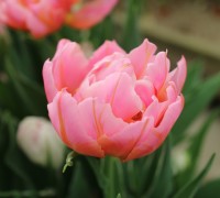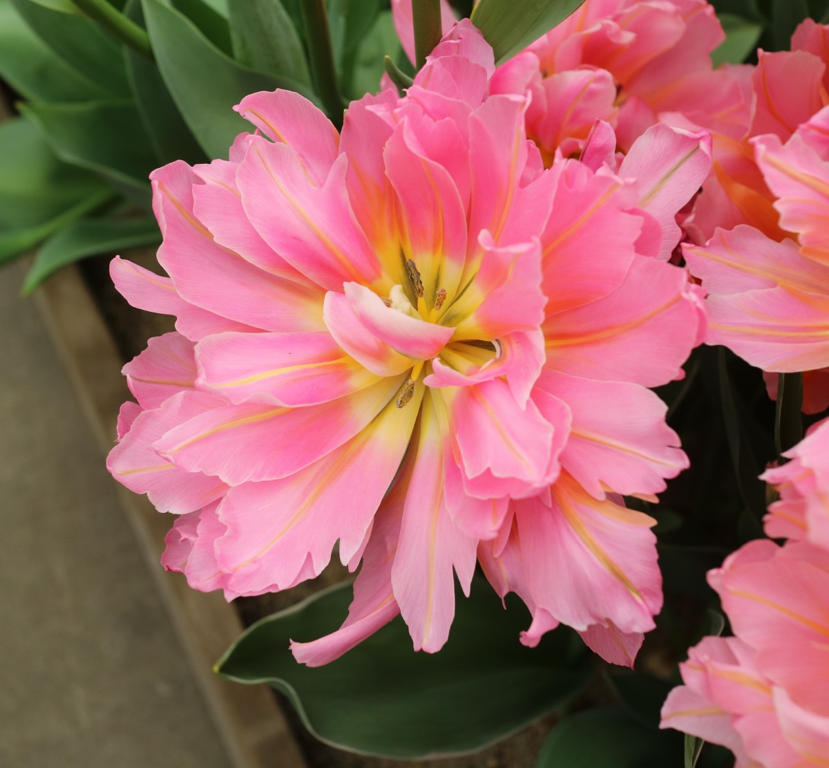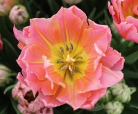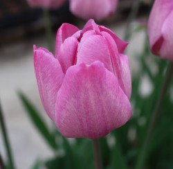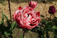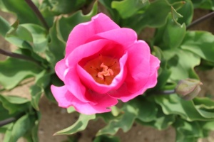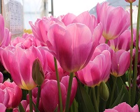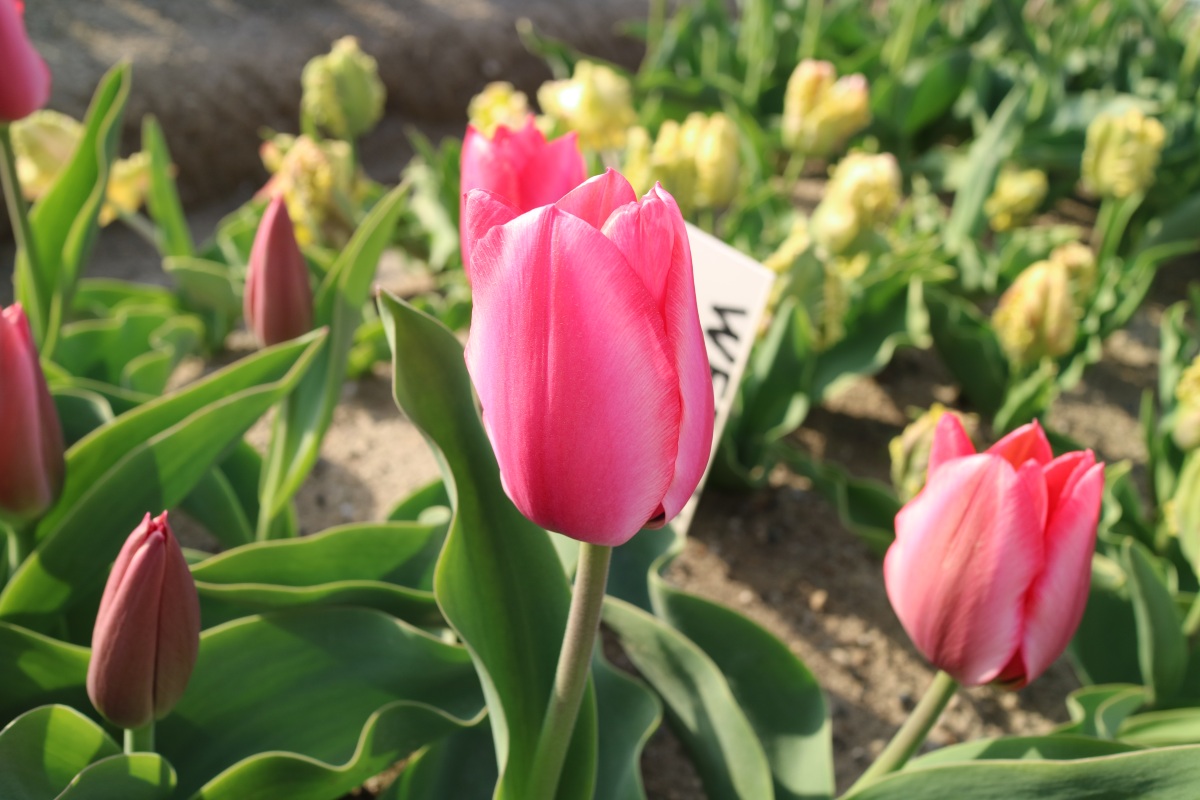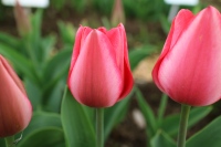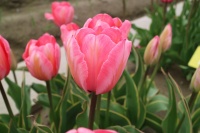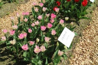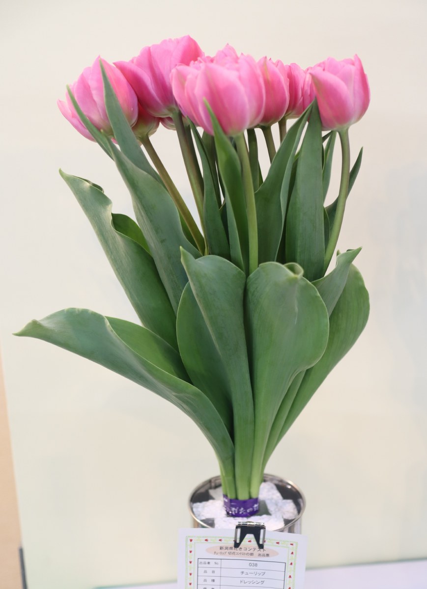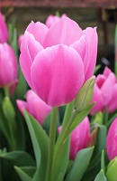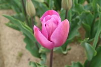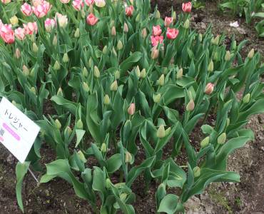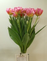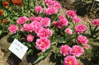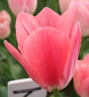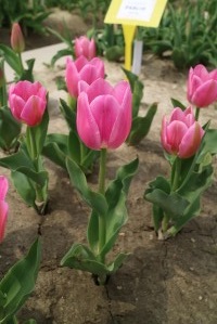 | トレザー Tresor T ・桃 ・トライアンフ系。「宝」という意味。切花向けに改良されていて葉がすっきりまとまって育つ |