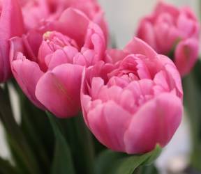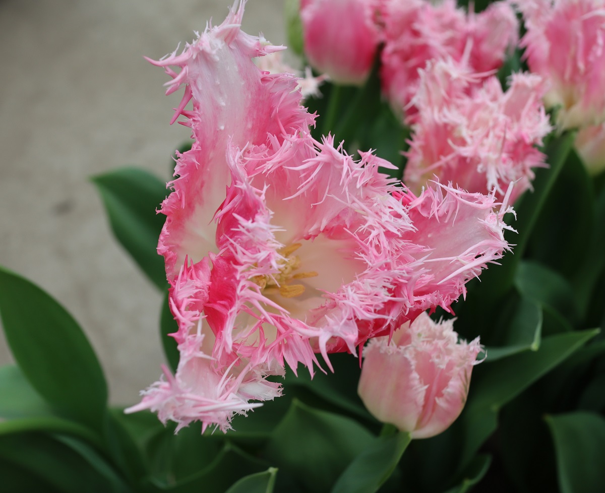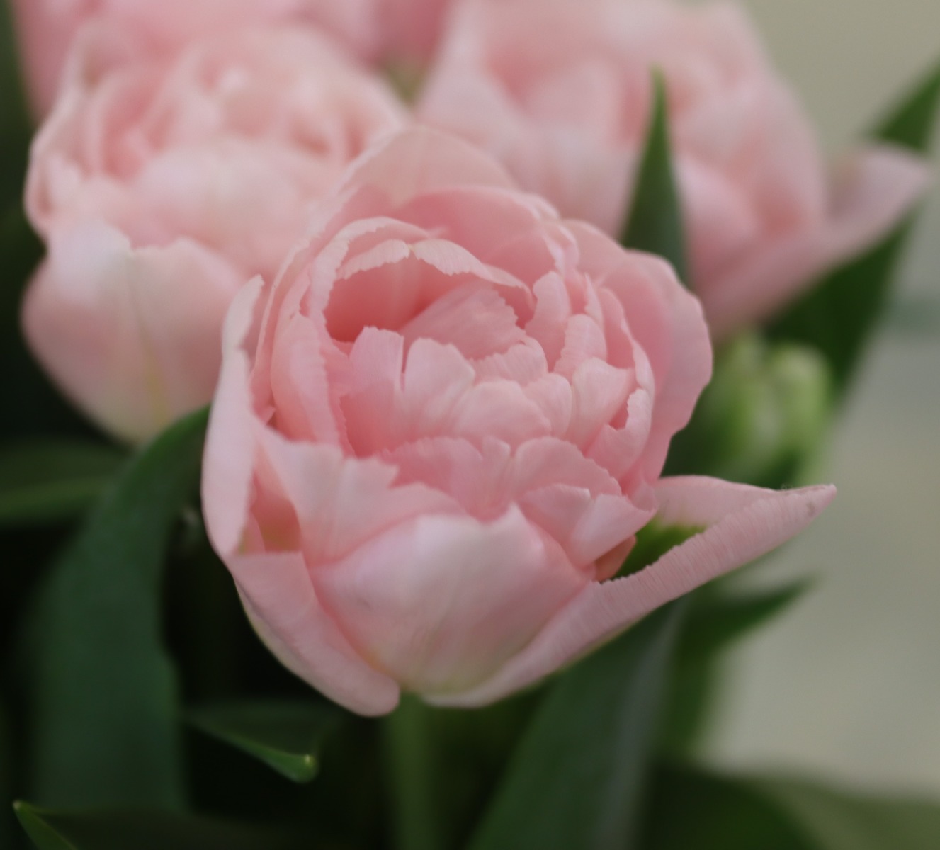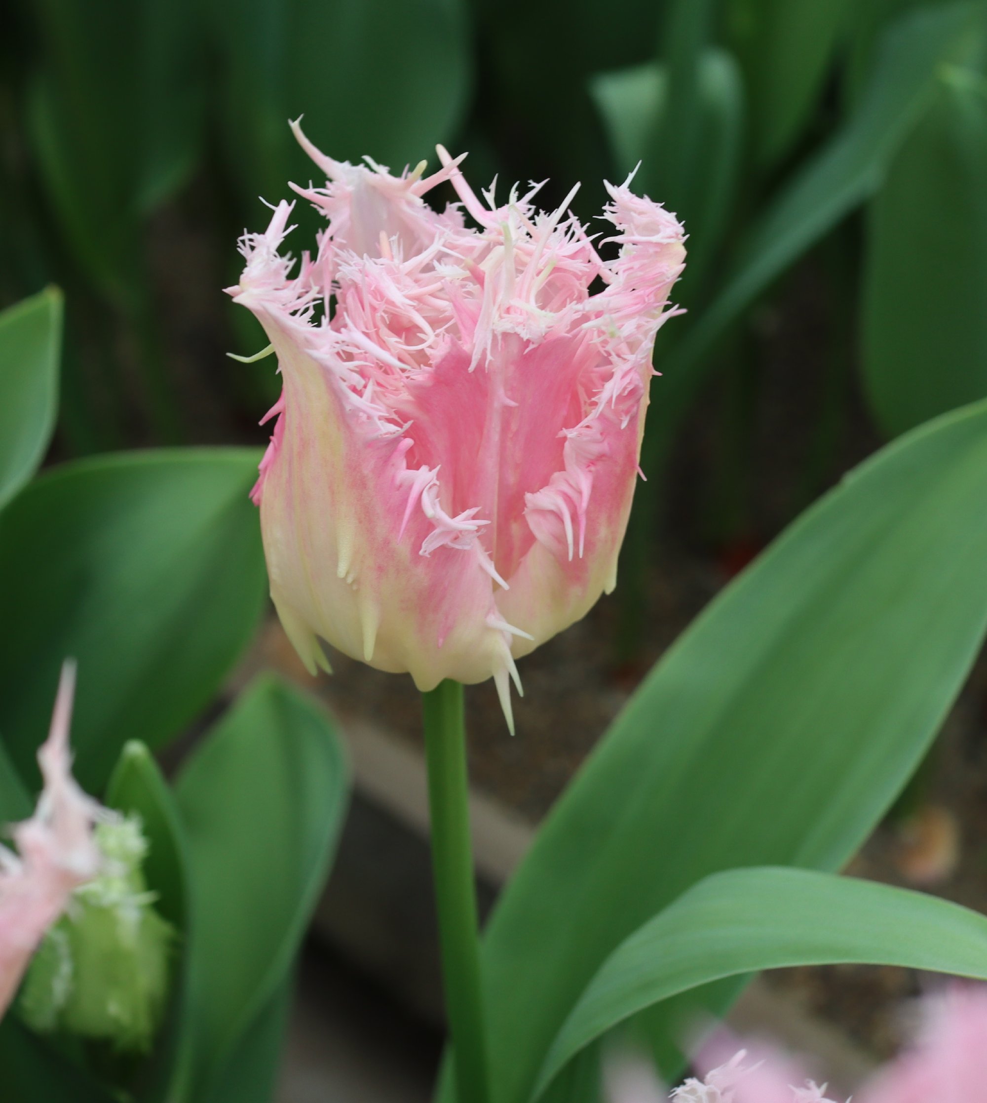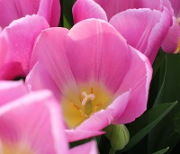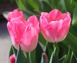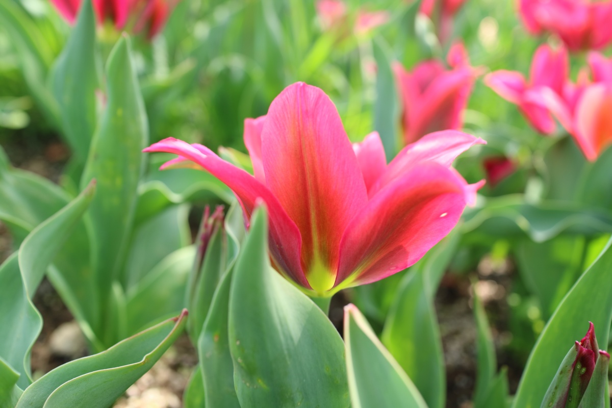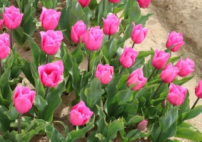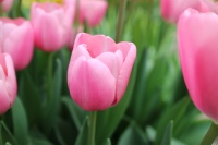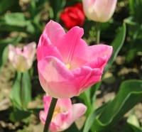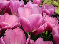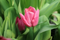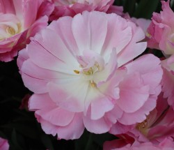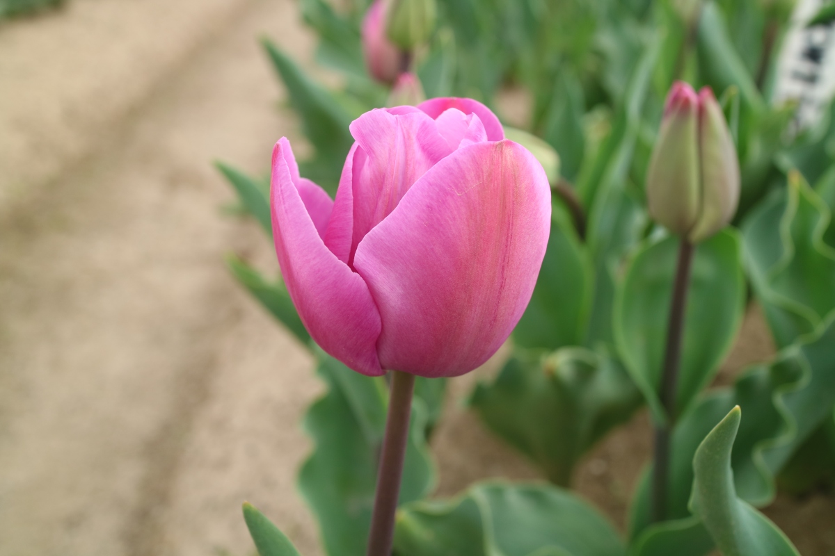 | トレザー Tresor T ・桃 ・トライアンフ系。「宝」という意味。切花向けに改良されていて葉がすっきりまとまって育つ |