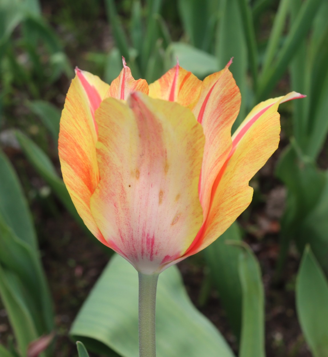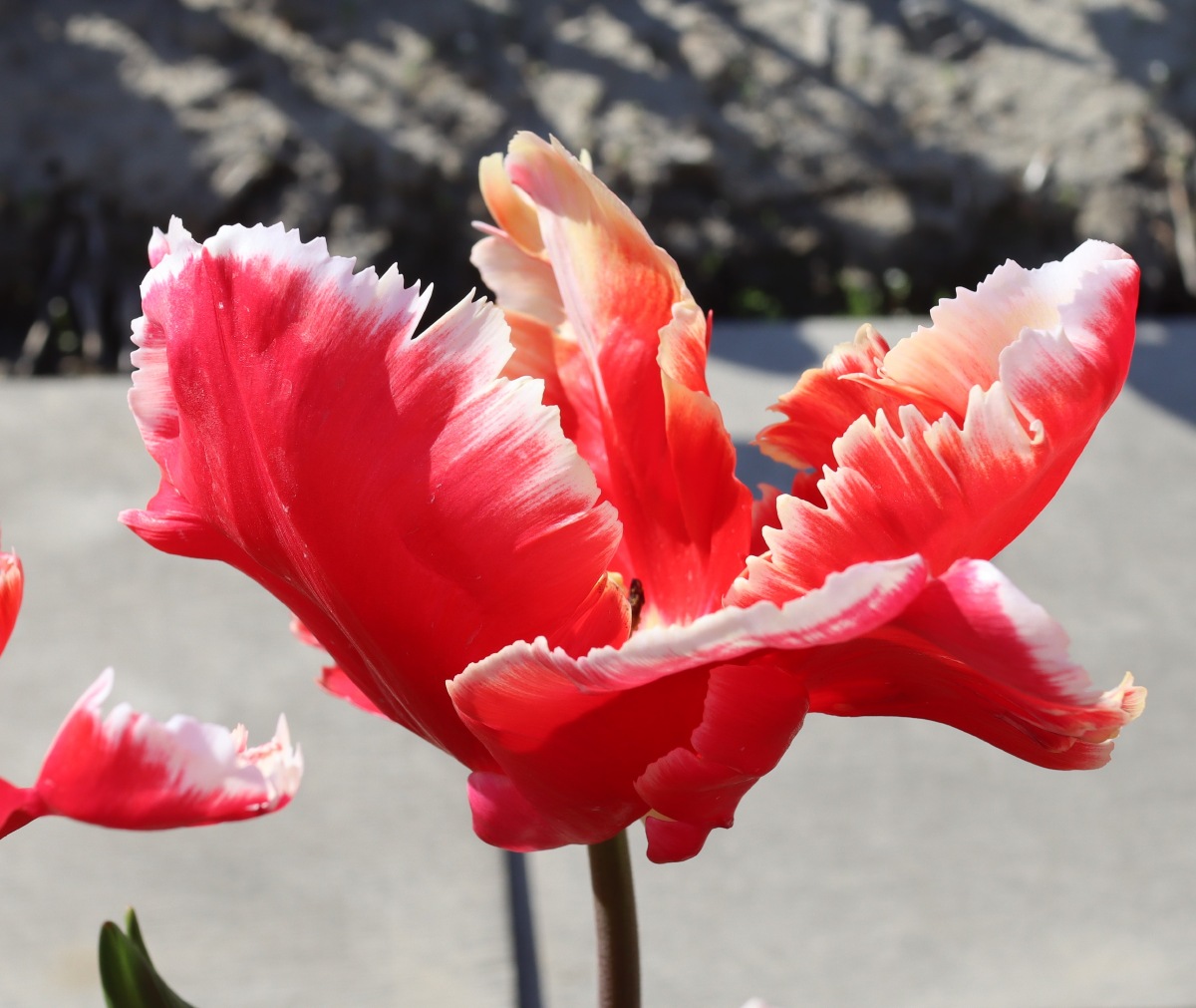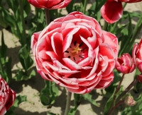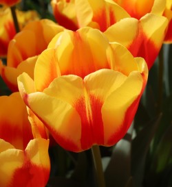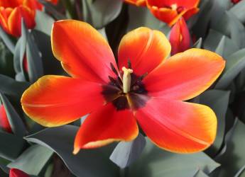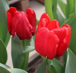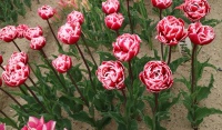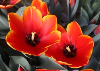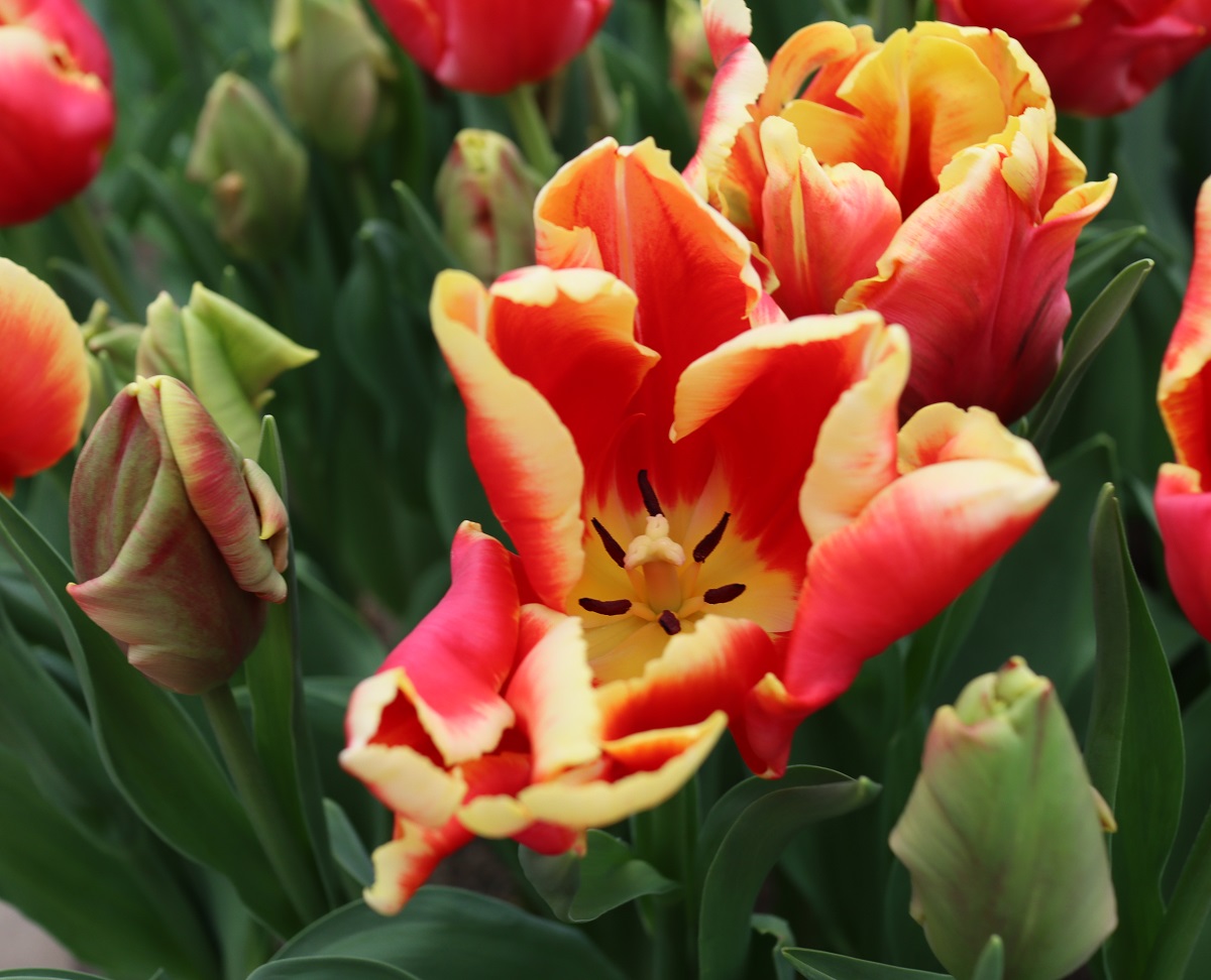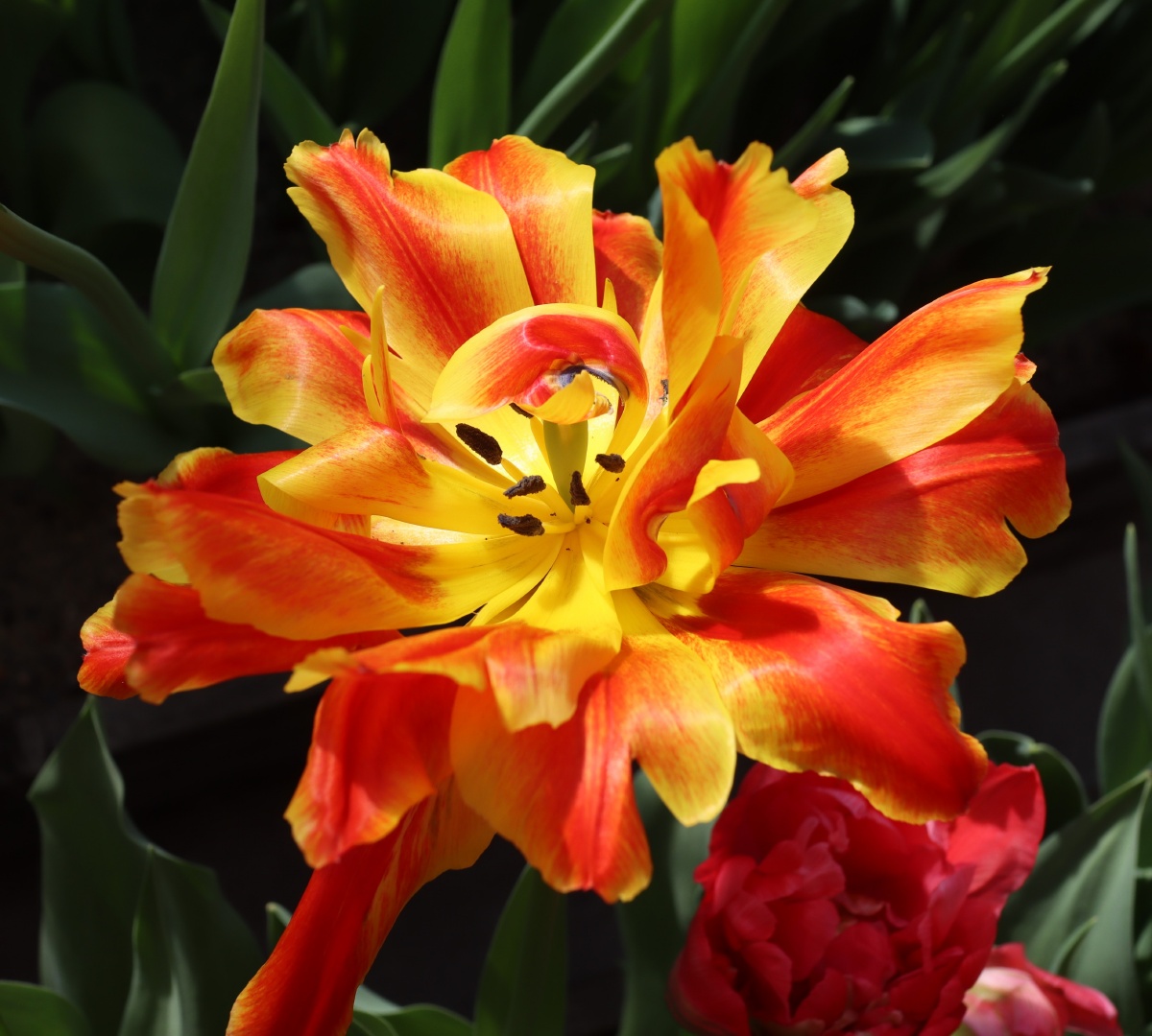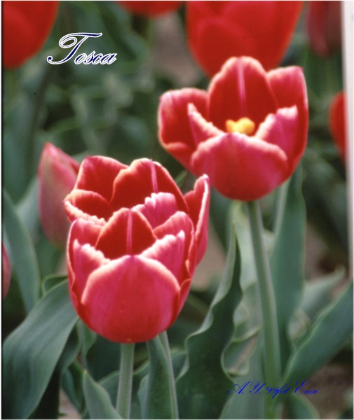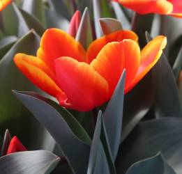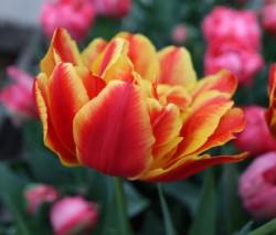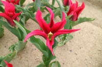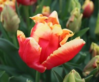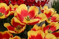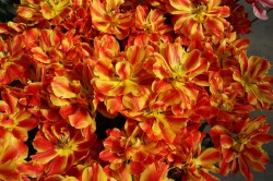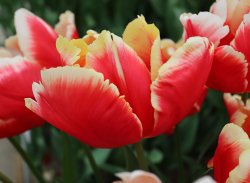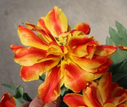 | テキサスフレーム TexasFlame ・パロット咲き系。同色系の大型なフレーミングパロットが広く普及したため市場から消えた品種 |
