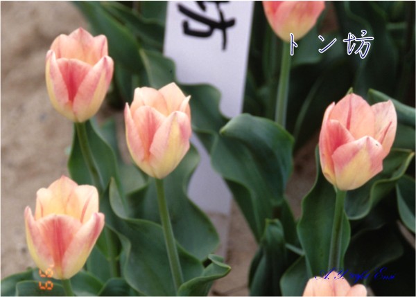 | トーホク TOHOKU T ・オレンジ/ピンク ・東日本大震災の復興を願ってオランダから贈られた品種。現在では生産されなくなってしまった。 |