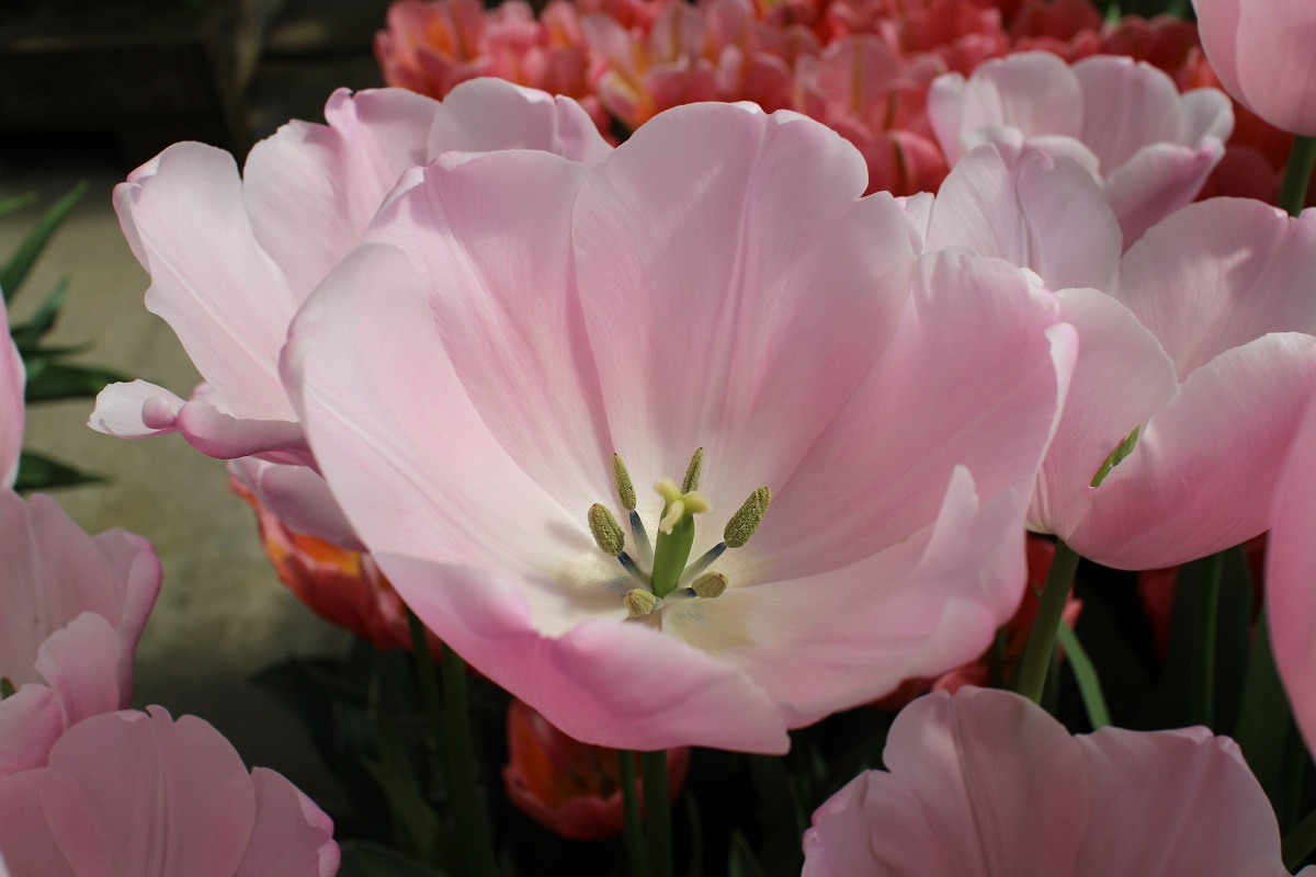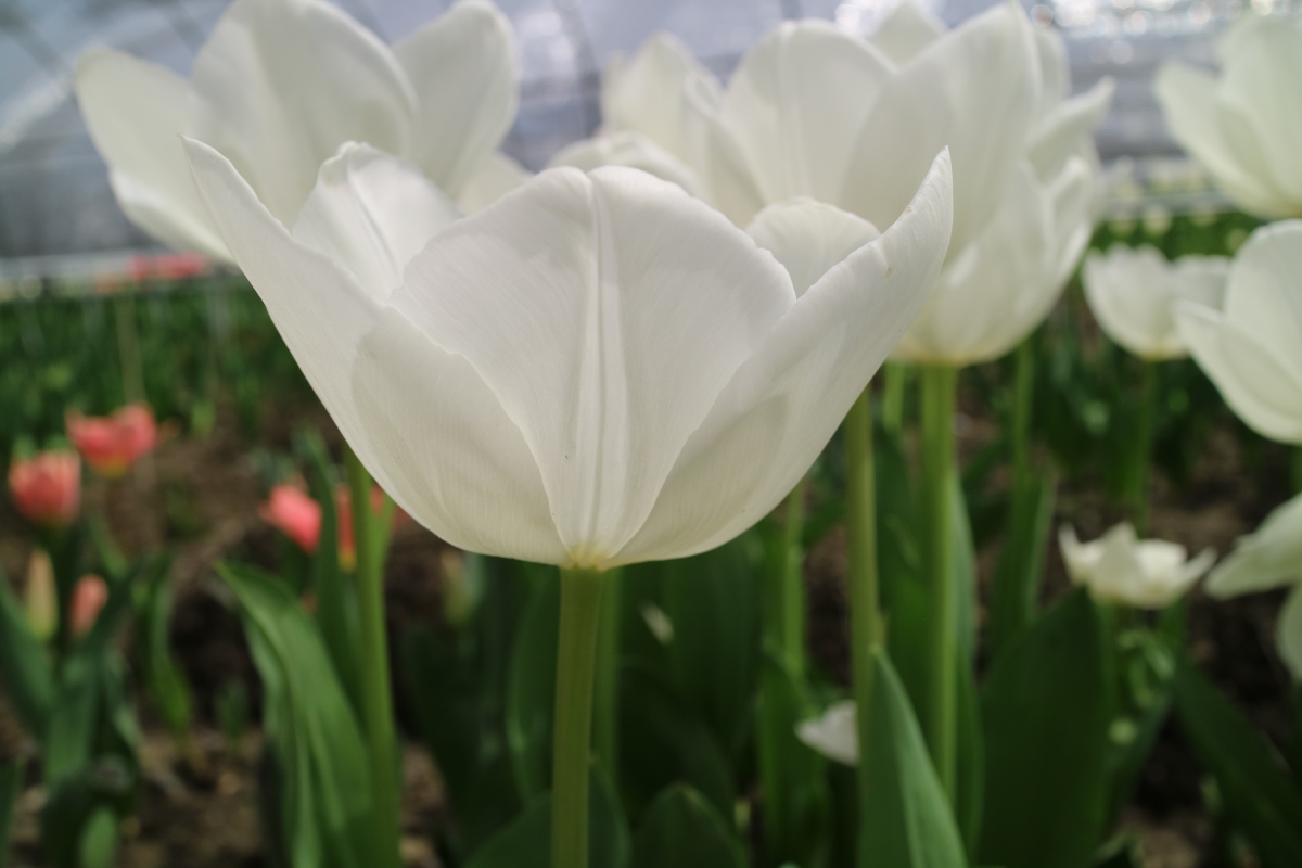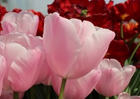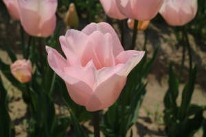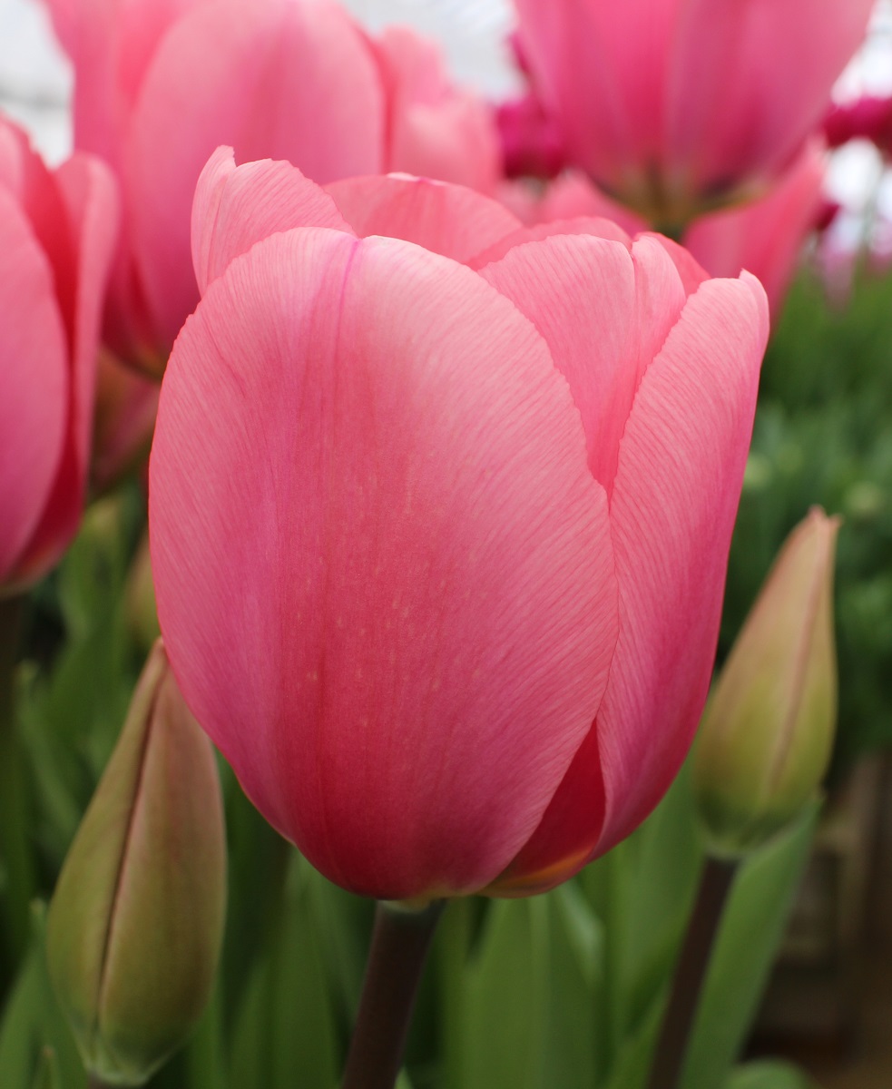 | ピンクダイアモンド PinkDiamond SL ・Pink、薄桃 ・Medium ・Sport of Pink Supreme ・一重遅咲き系。桜色が日本人に好まれているが生産が難しくオランダでは既に絶滅している |