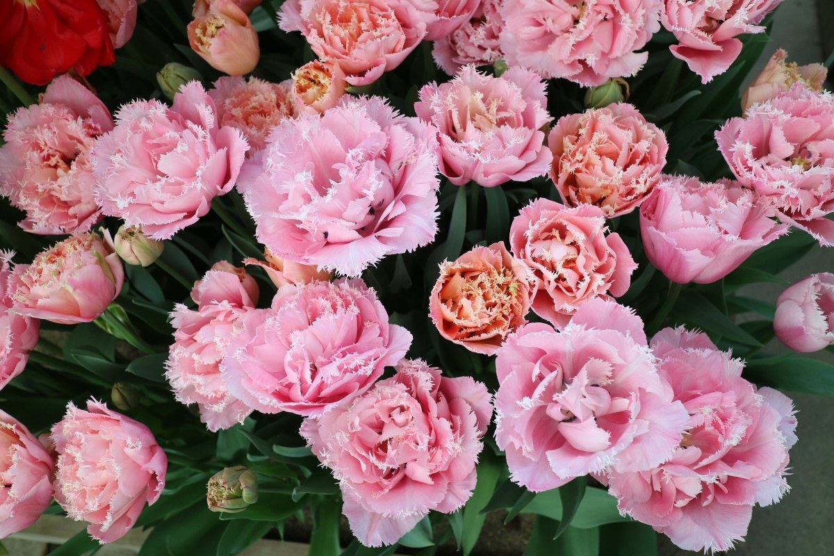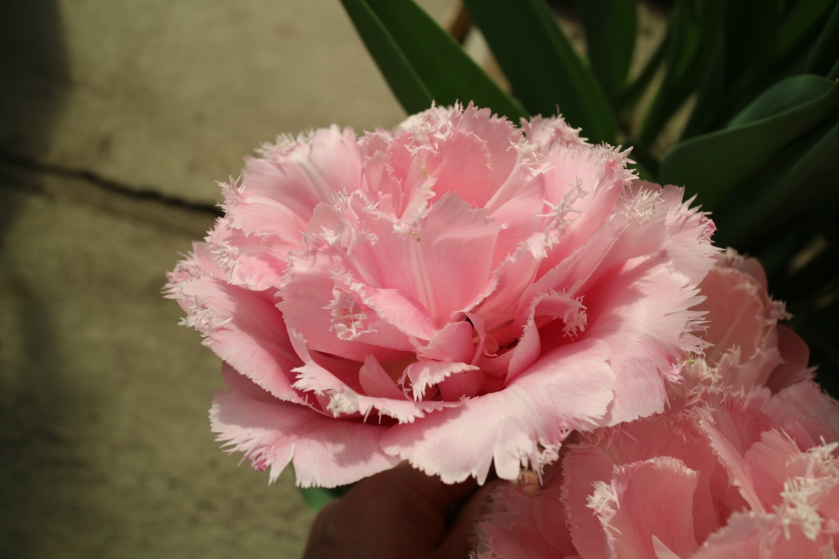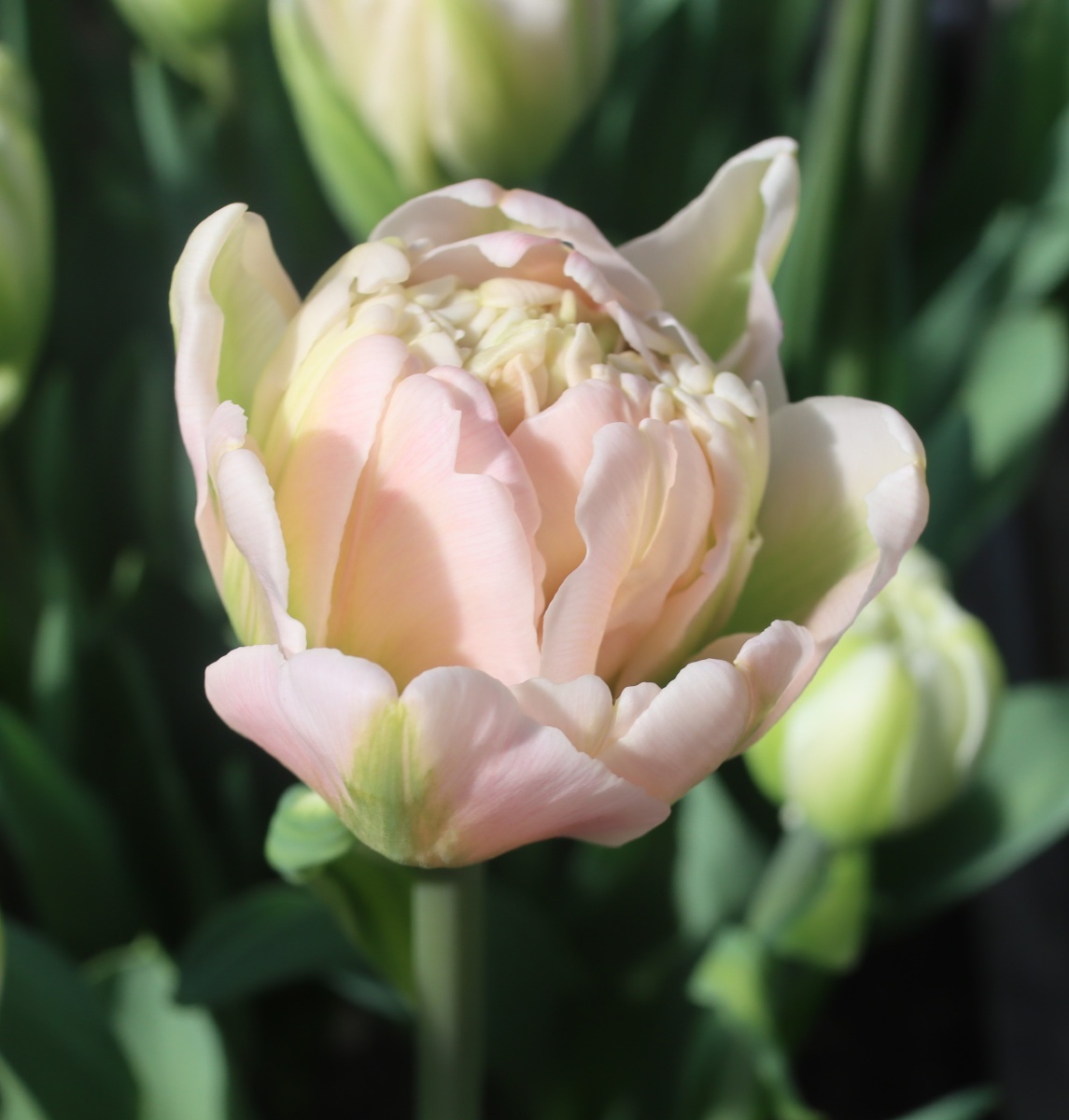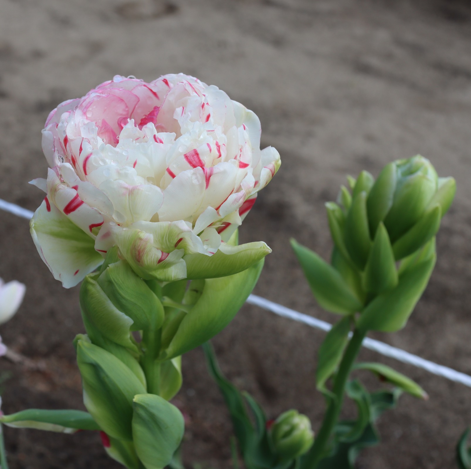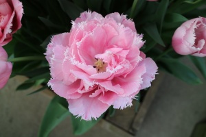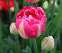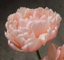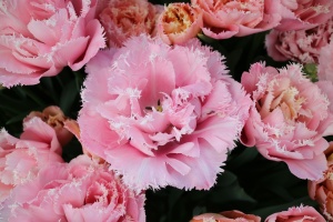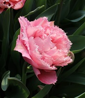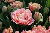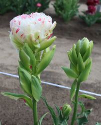 | ピンクフェザー PinkFeather DL ・八重遅咲き系。オランダでもあまり作られない品種。花弁が非常に多く色づかないで終わることも多い |