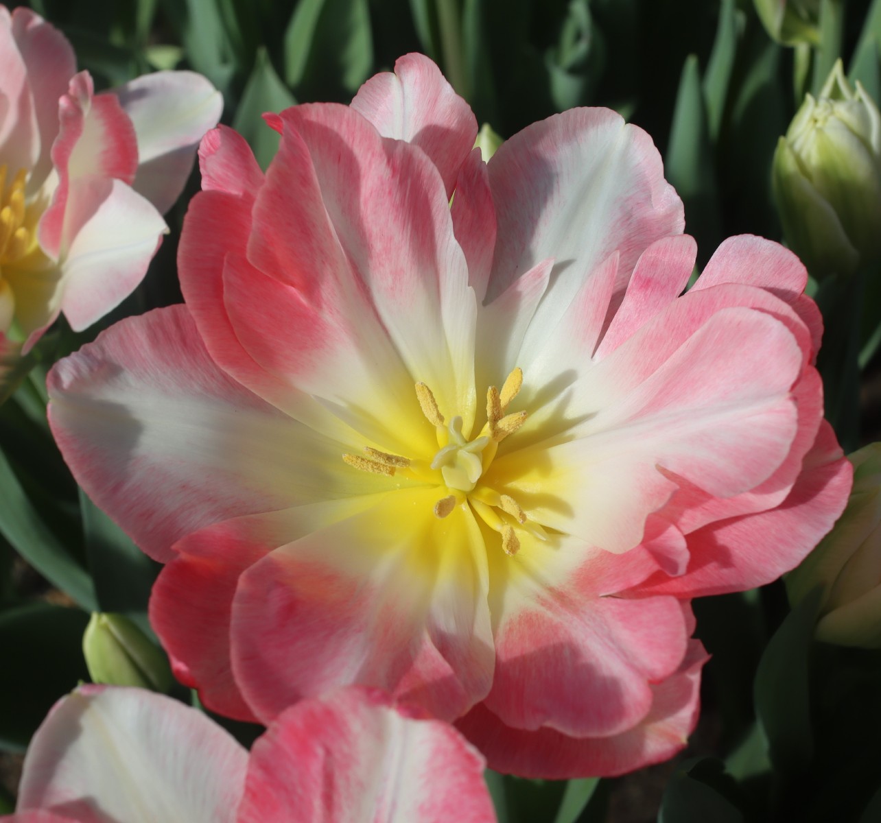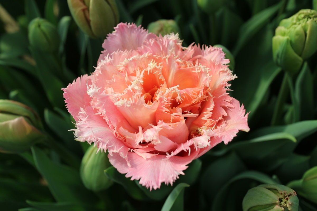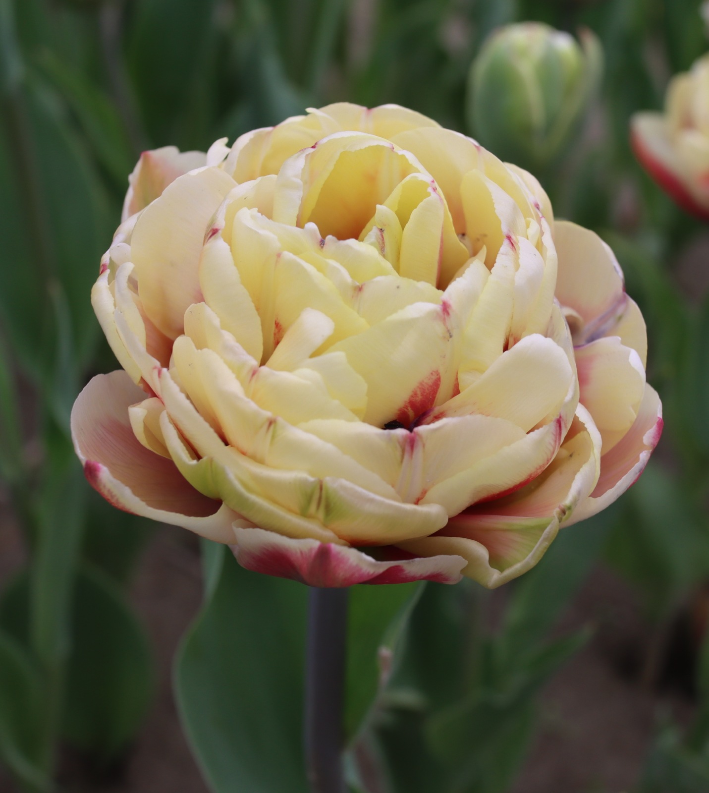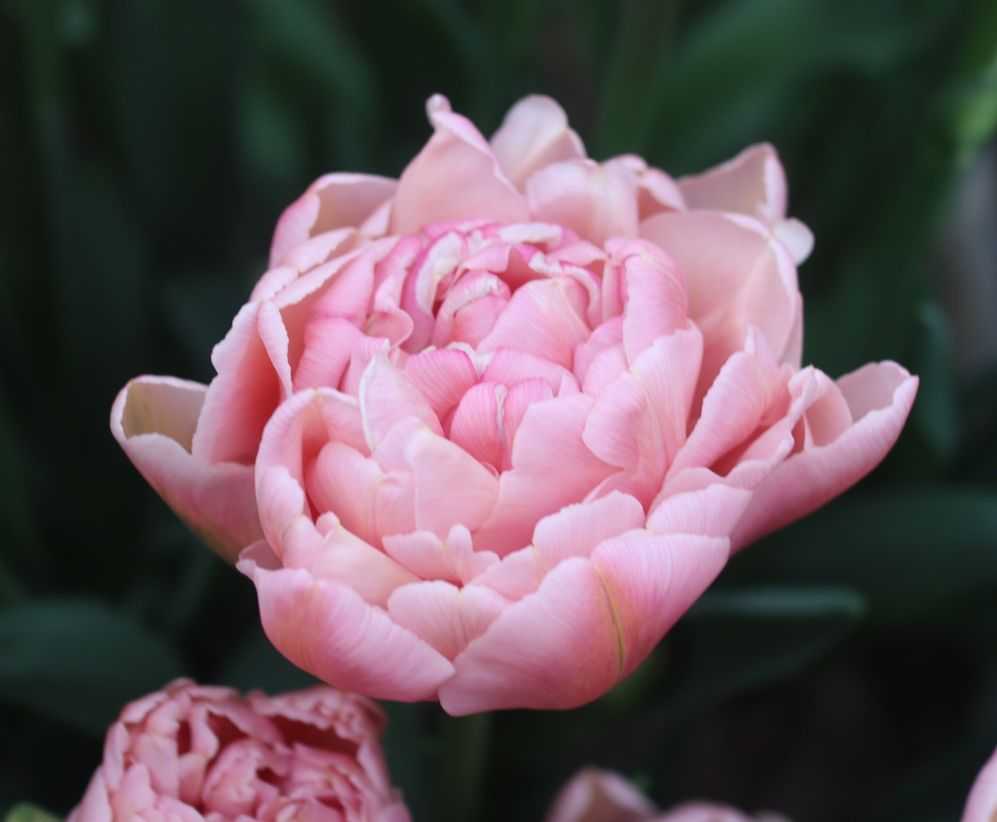 | ピンクフェザー PinkFeather DL ・八重遅咲き系。オランダでもあまり作られない品種。花弁が非常に多く色づかないで終わることも多い |