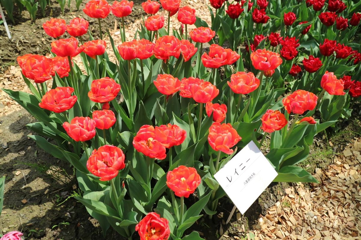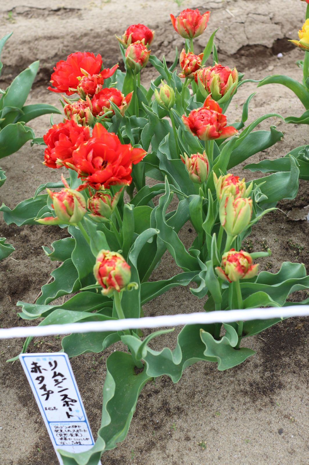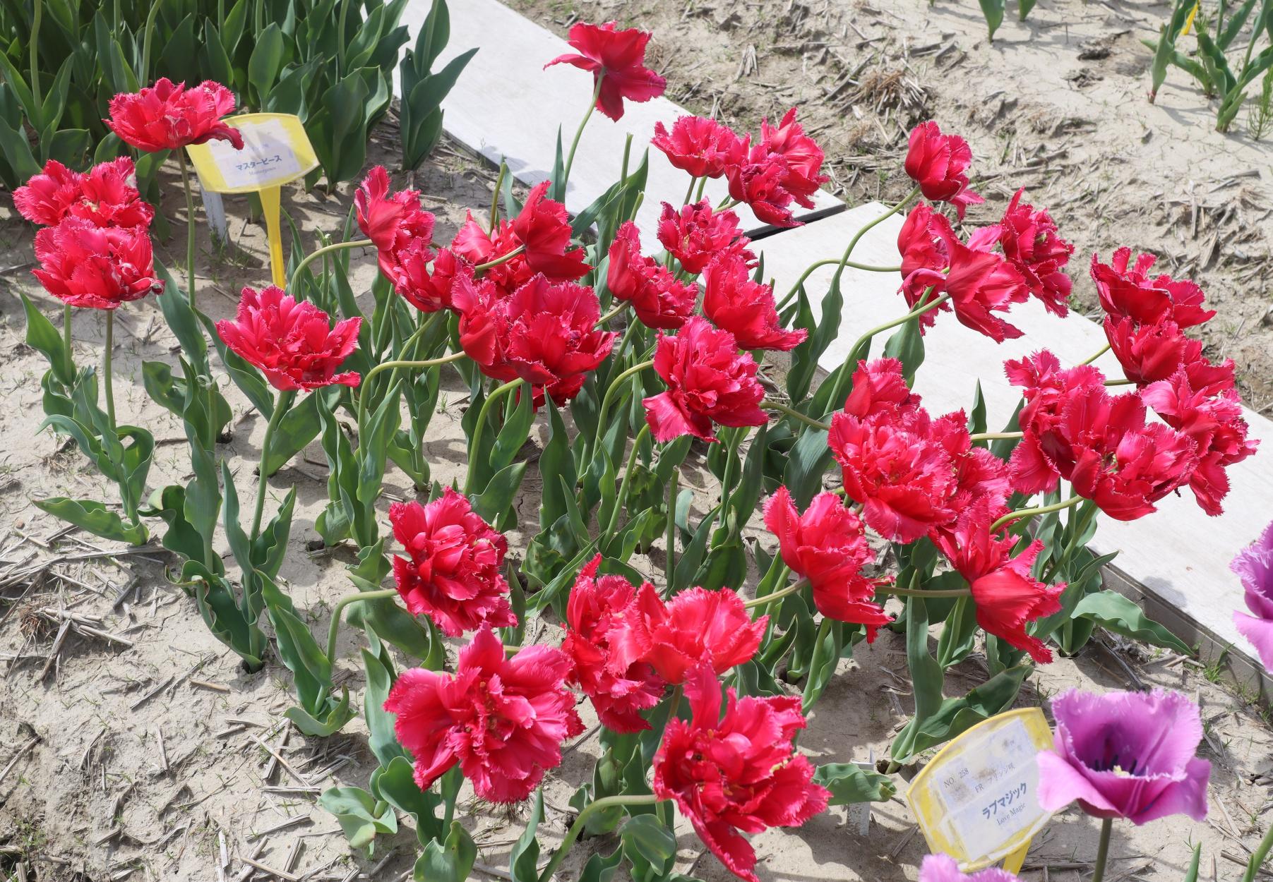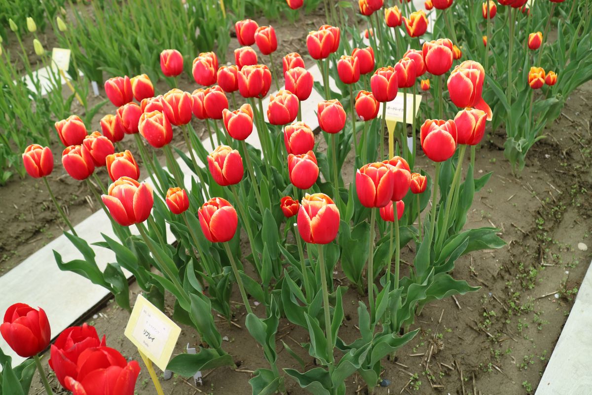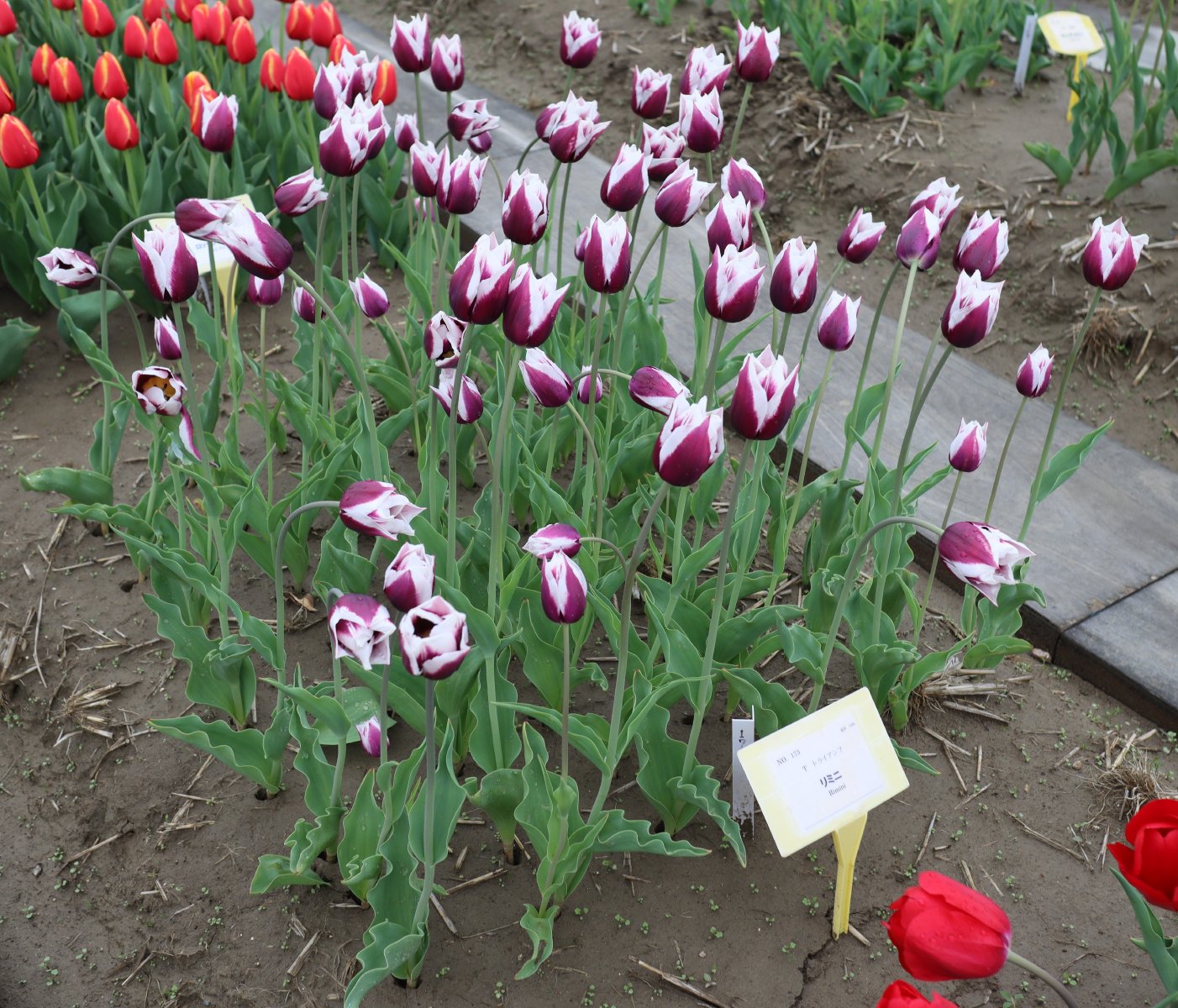 リンファンダーマーク LeenvanderMark T ・Red/White ・Medium、赤にクリームふち ・レーンバンデルマルク。1968年登録。オランダでも日本でも作付けの多いロングセラー。胎内市でも生産されている |