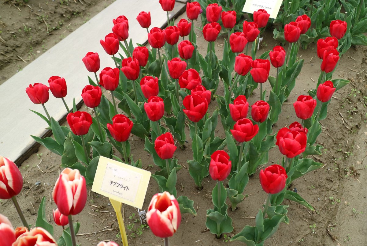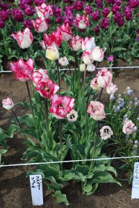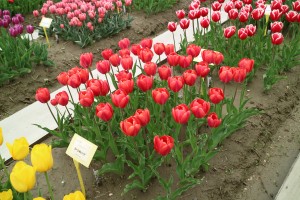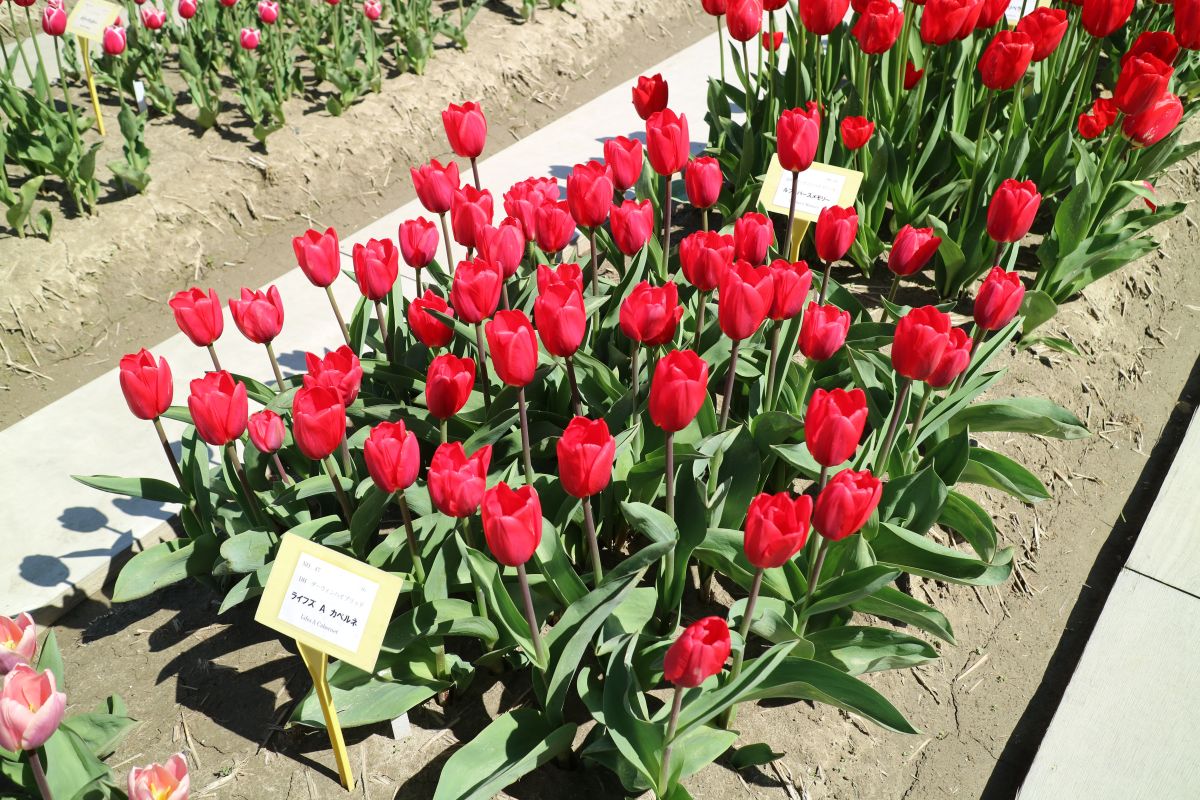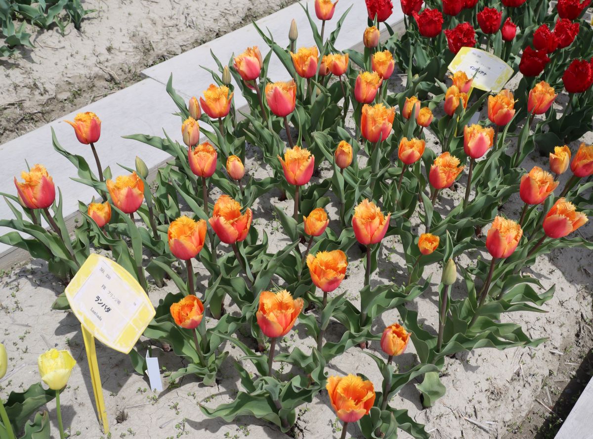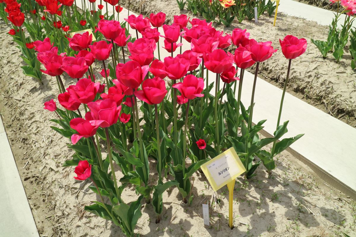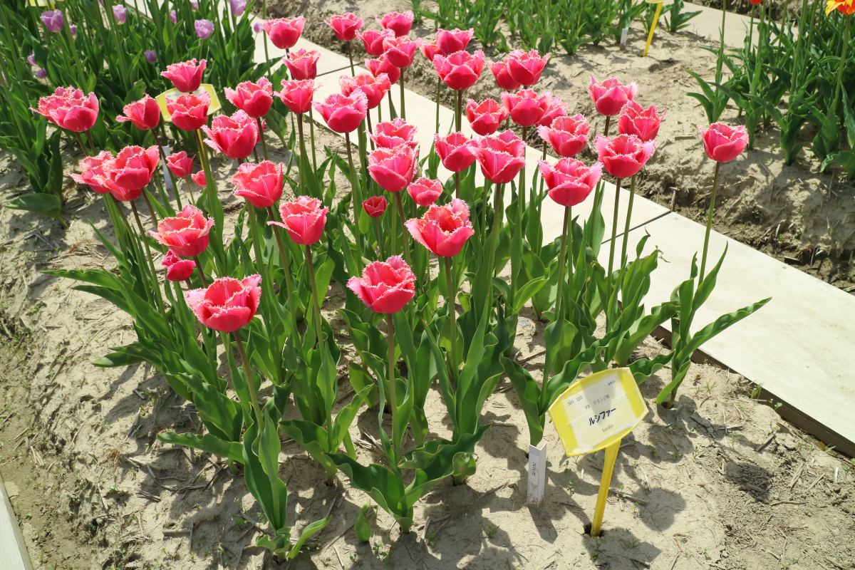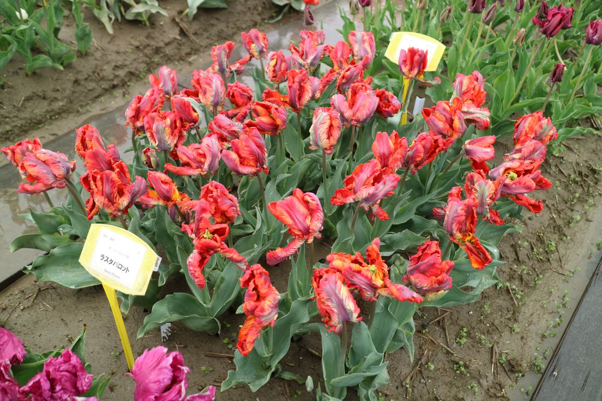 リンファンダーマーク LeenvanderMark T ・Red/White ・Medium、赤にクリームふち ・レーンバンデルマルク。1968年登録。オランダでも日本でも作付けの多いロングセラー。胎内市でも生産されている |