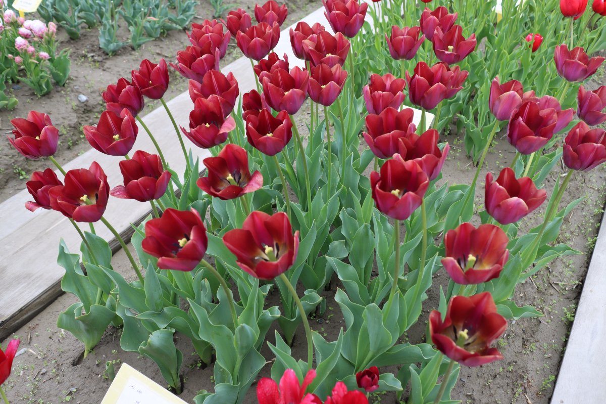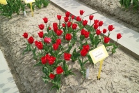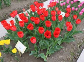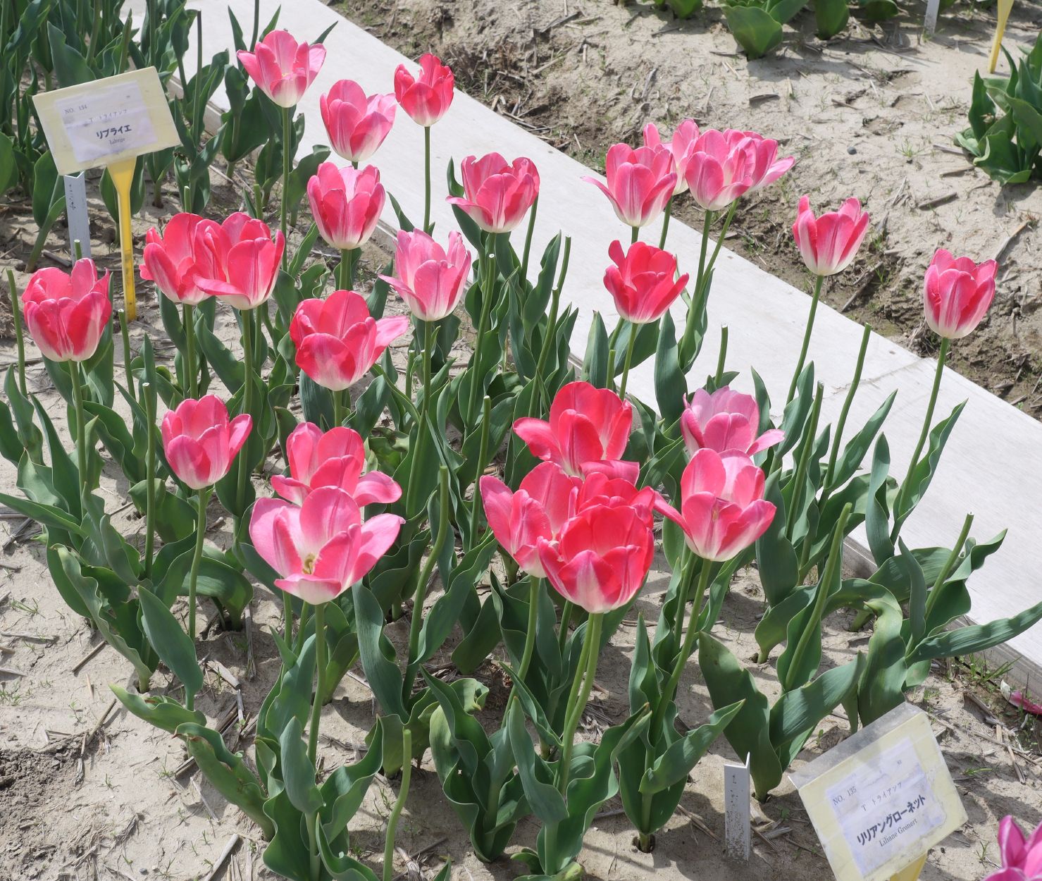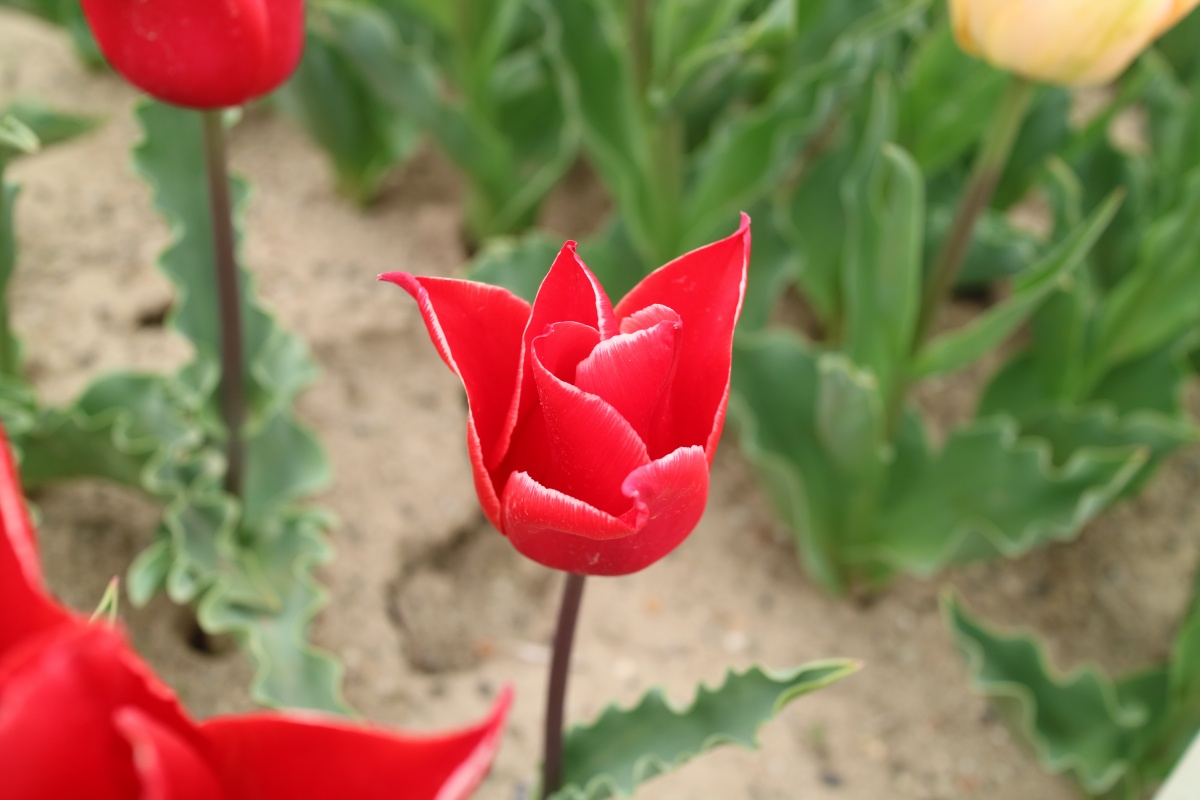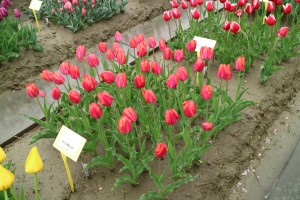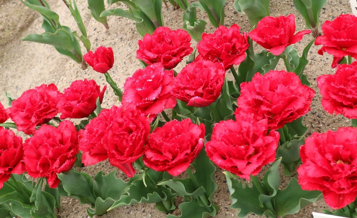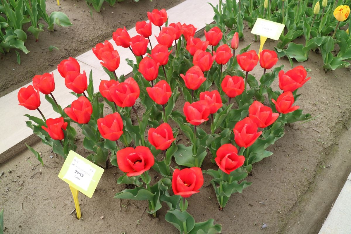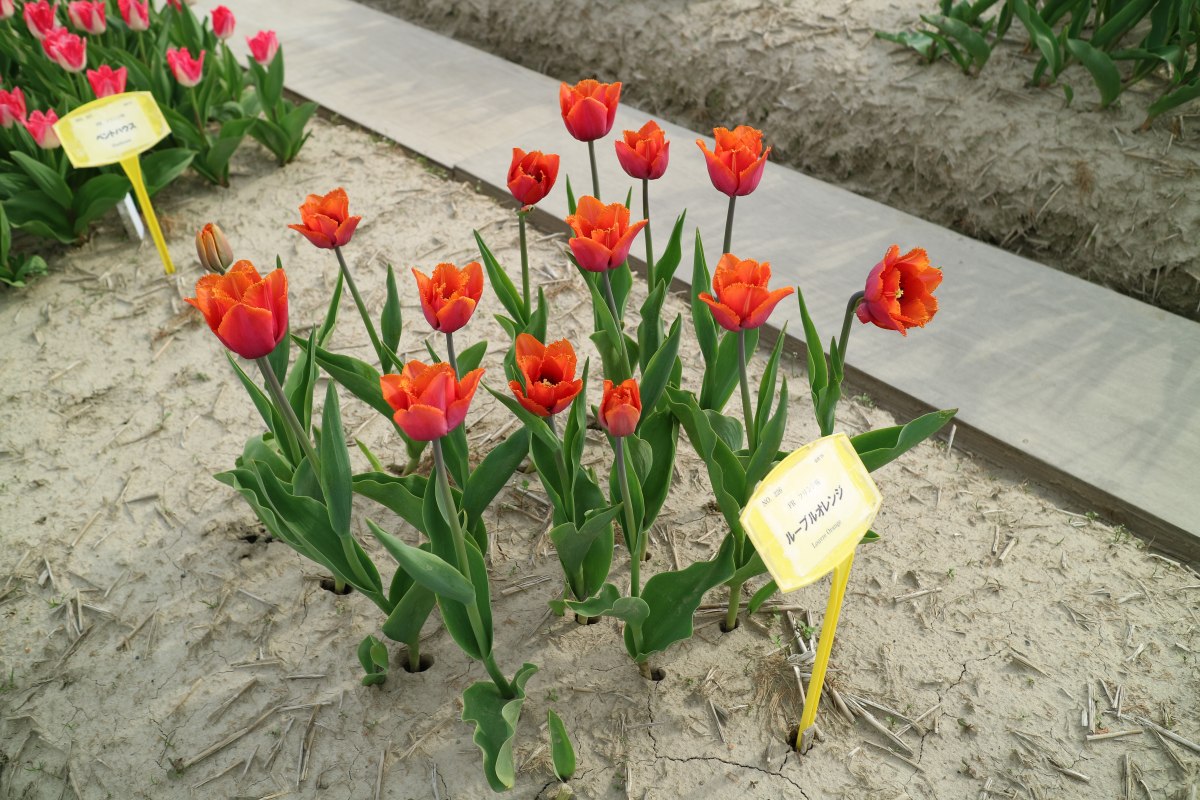 リンファンダーマーク LeenvanderMark T ・Red/White ・Medium、赤にクリームふち ・レーンバンデルマルク。1968年登録。オランダでも日本でも作付けの多いロングセラー。胎内市でも生産されている |