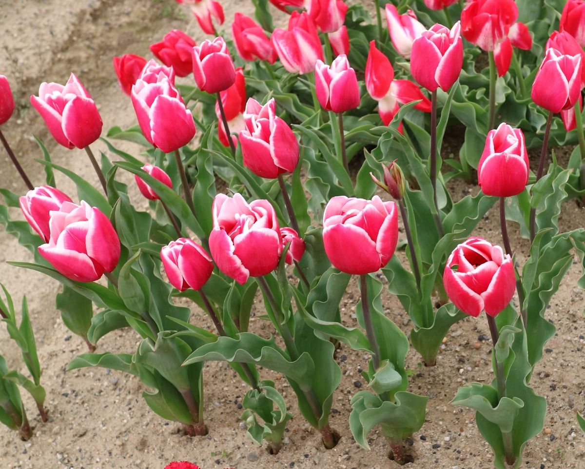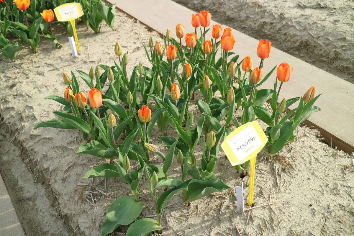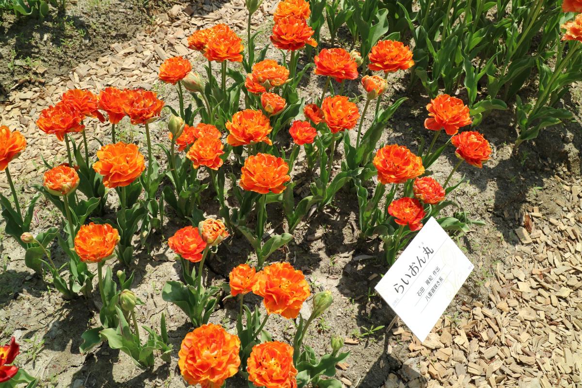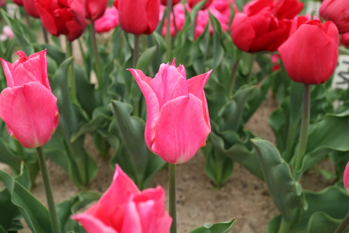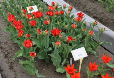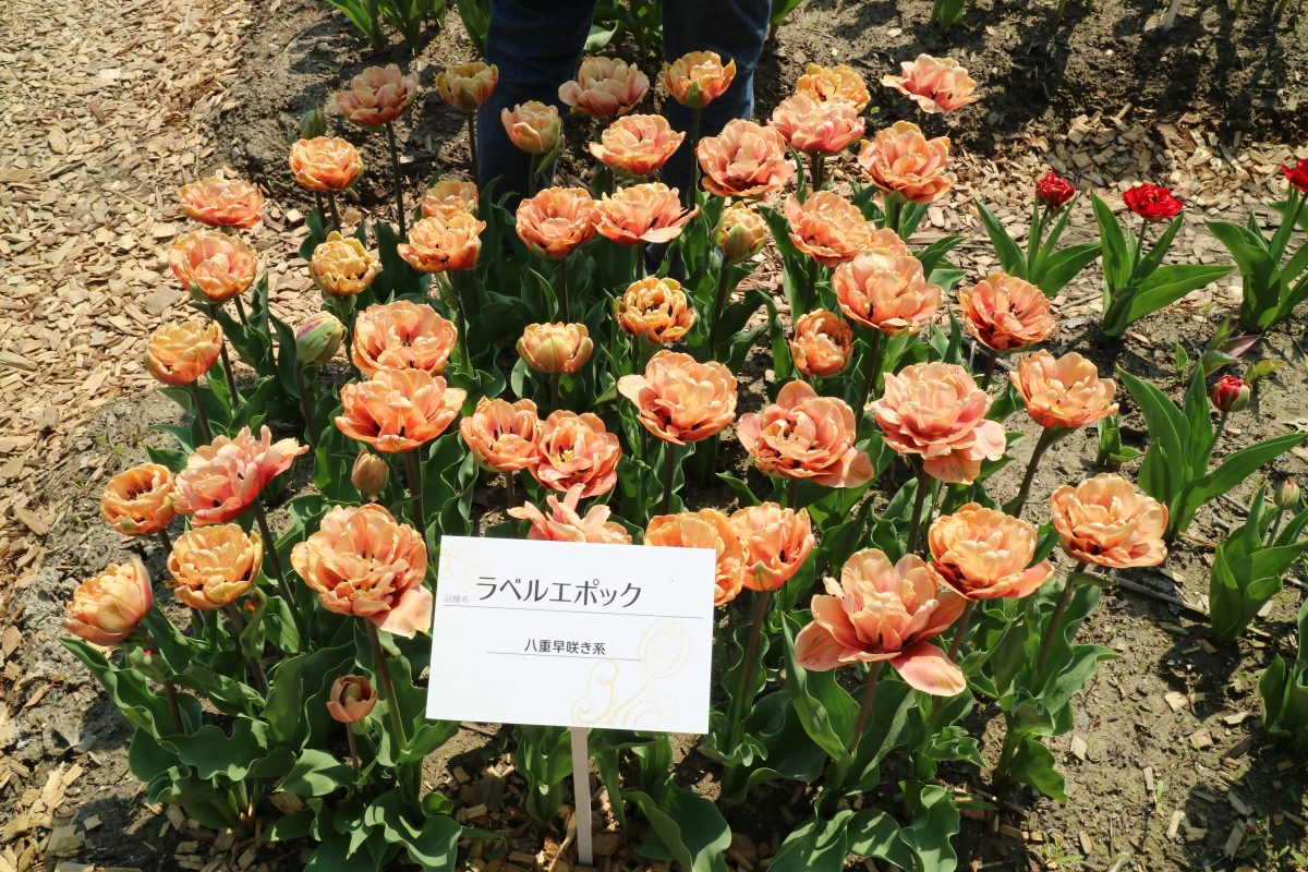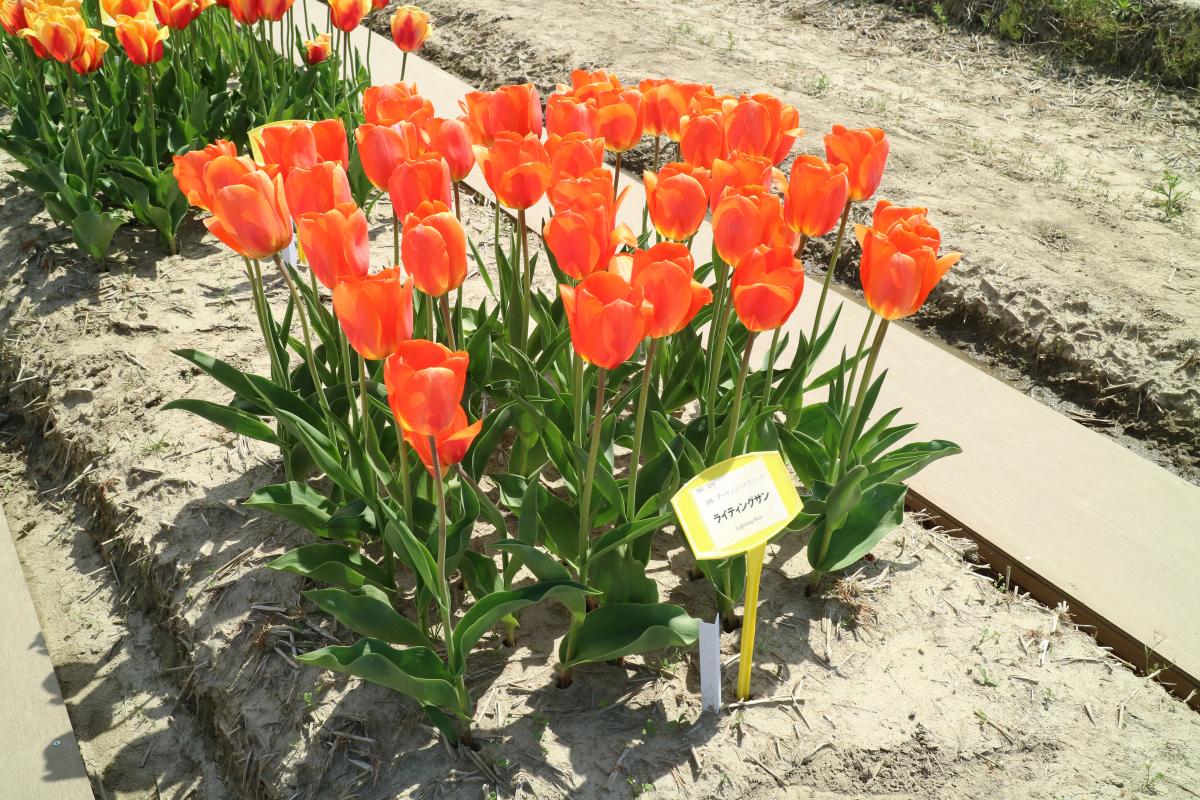 リンファンダーマーク LeenvanderMark T ・Red/White ・Medium、赤にクリームふち ・レーンバンデルマルク。1968年登録。オランダでも日本でも作付けの多いロングセラー。胎内市でも生産されている |
