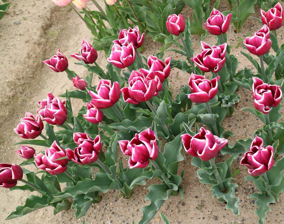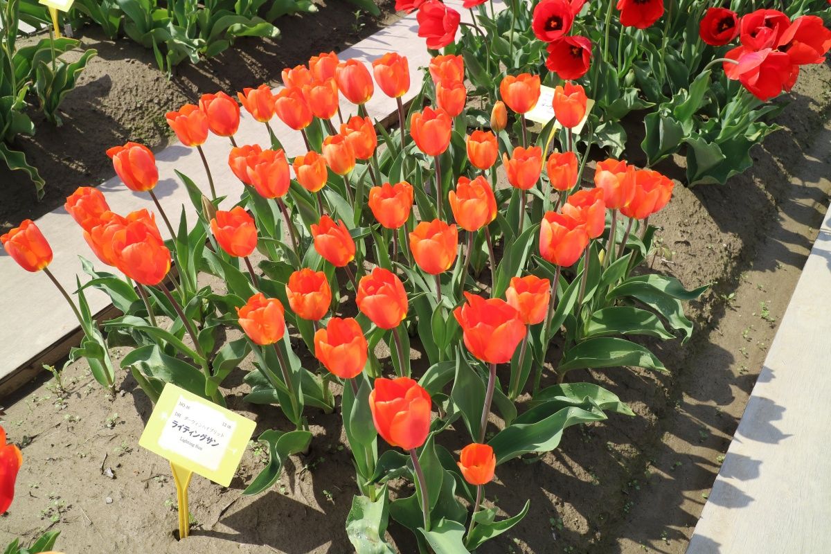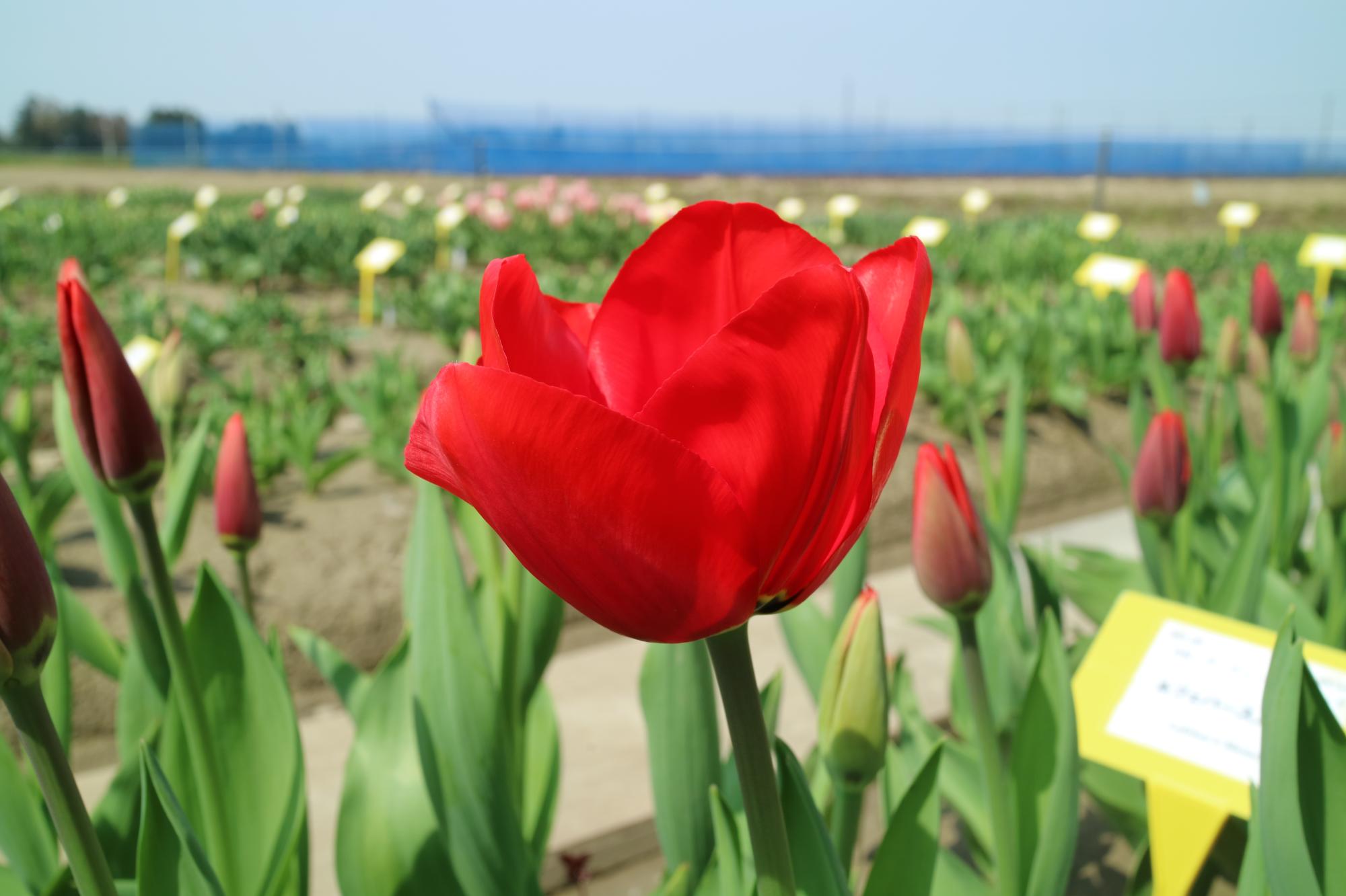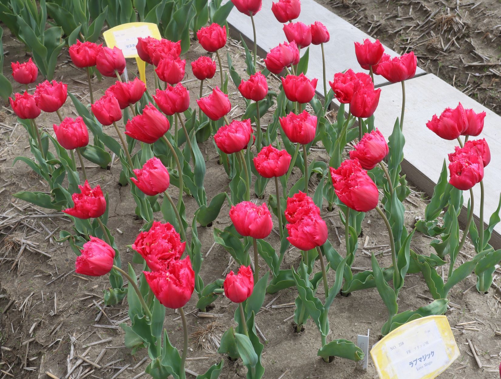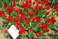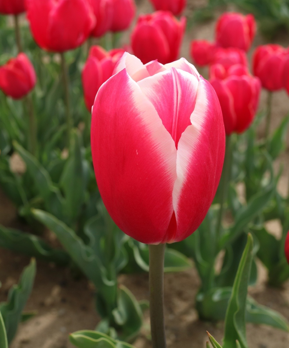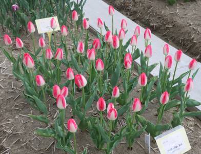 リンファンダーマーク LeenvanderMark T ・Red/White ・Medium、赤にクリームふち ・レーンバンデルマルク。1968年登録。オランダでも日本でも作付けの多いロングセラー。胎内市でも生産されている |