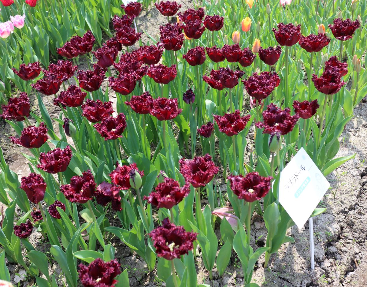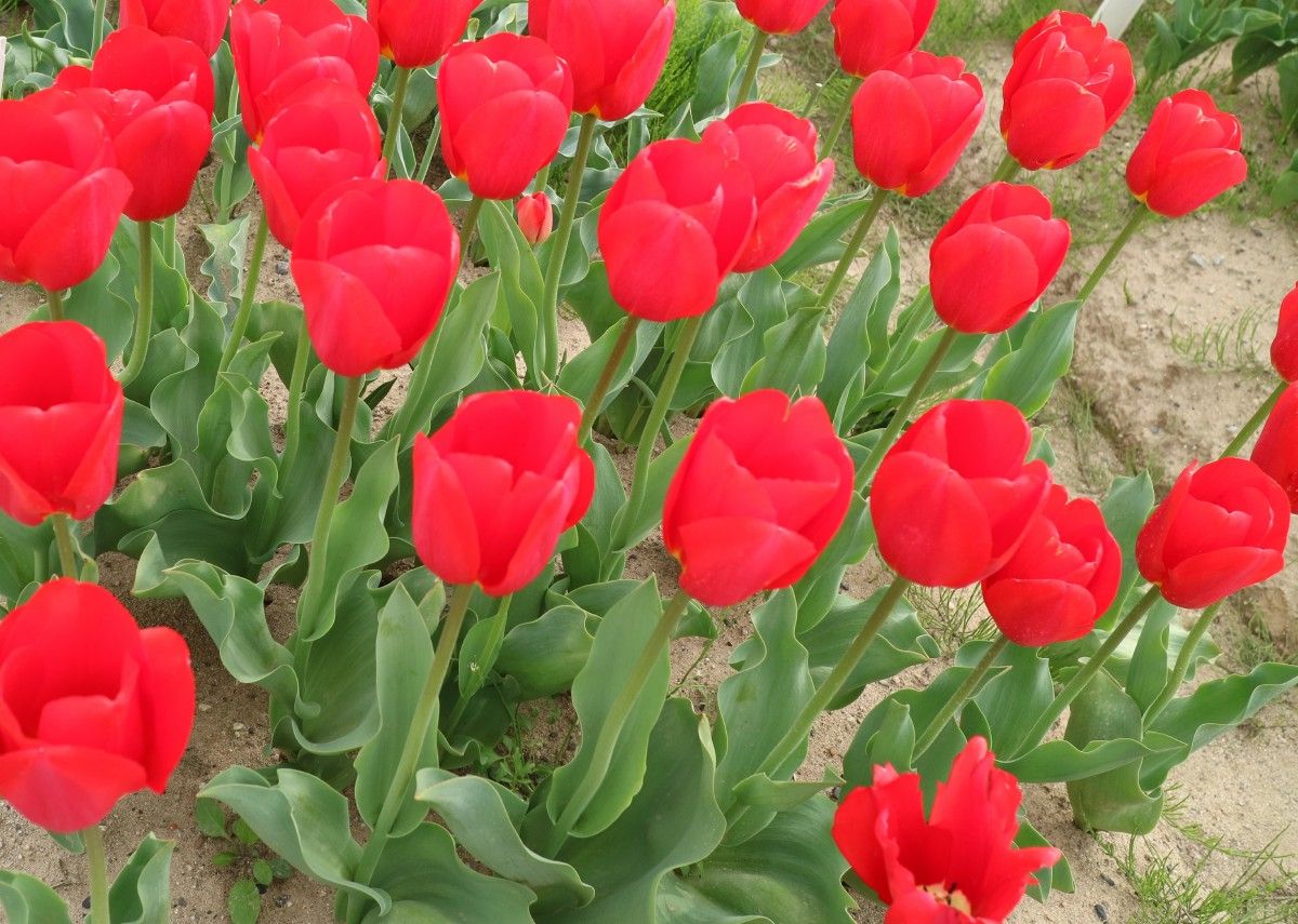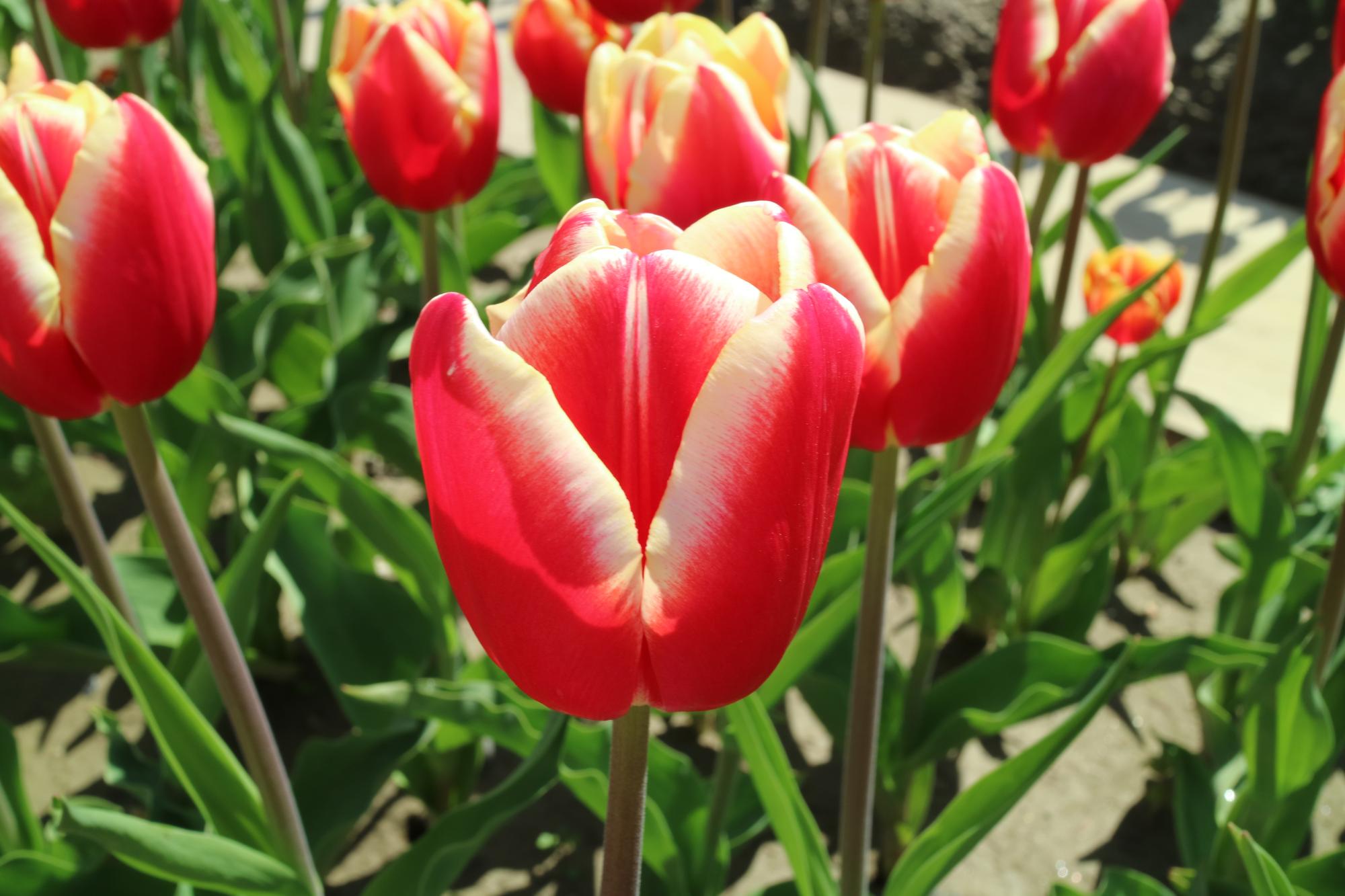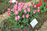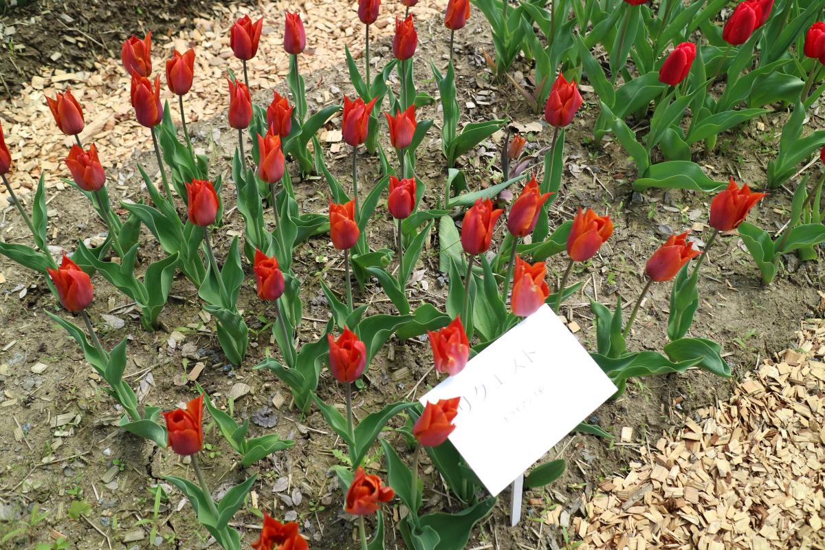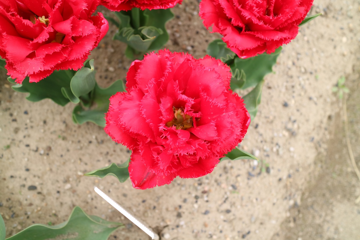 リンファンダーマーク LeenvanderMark T ・Red/White ・Medium、赤にクリームふち ・レーンバンデルマルク。1968年登録。オランダでも日本でも作付けの多いロングセラー。胎内市でも生産されている |