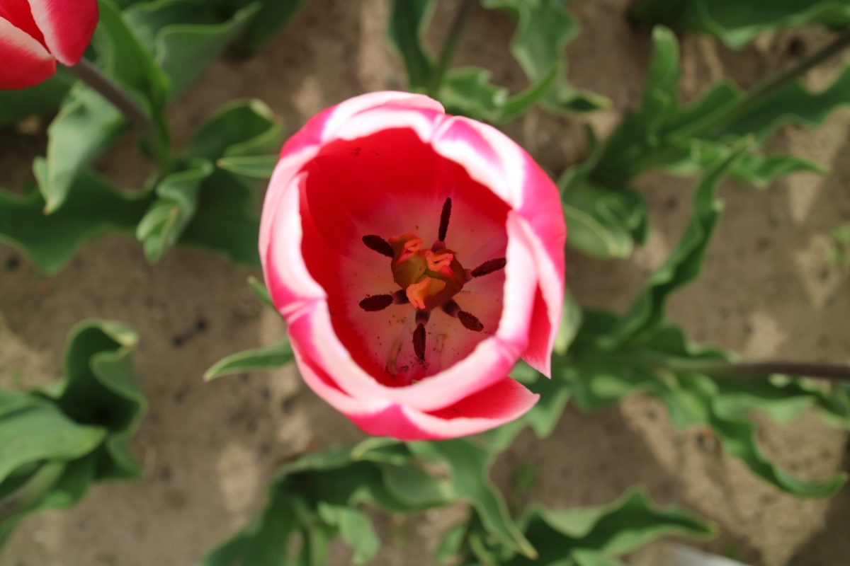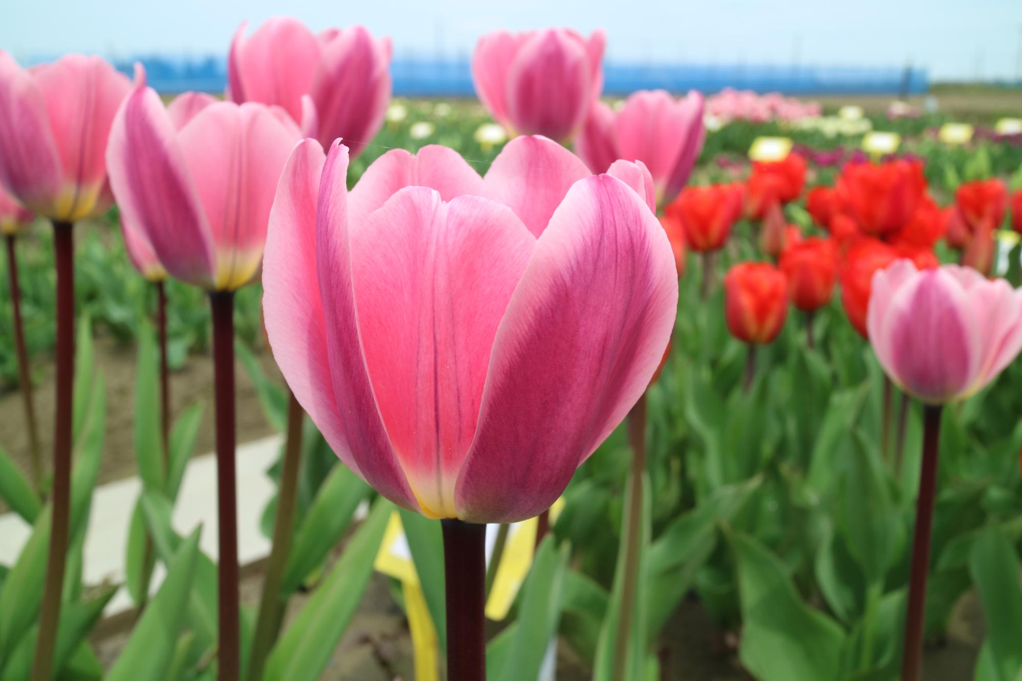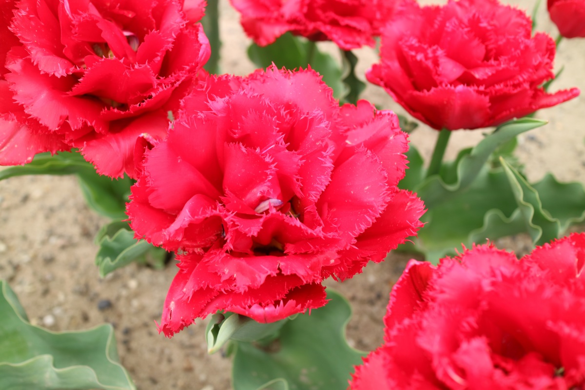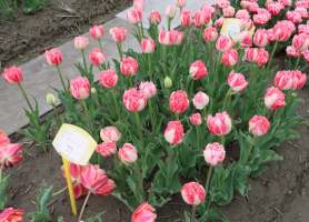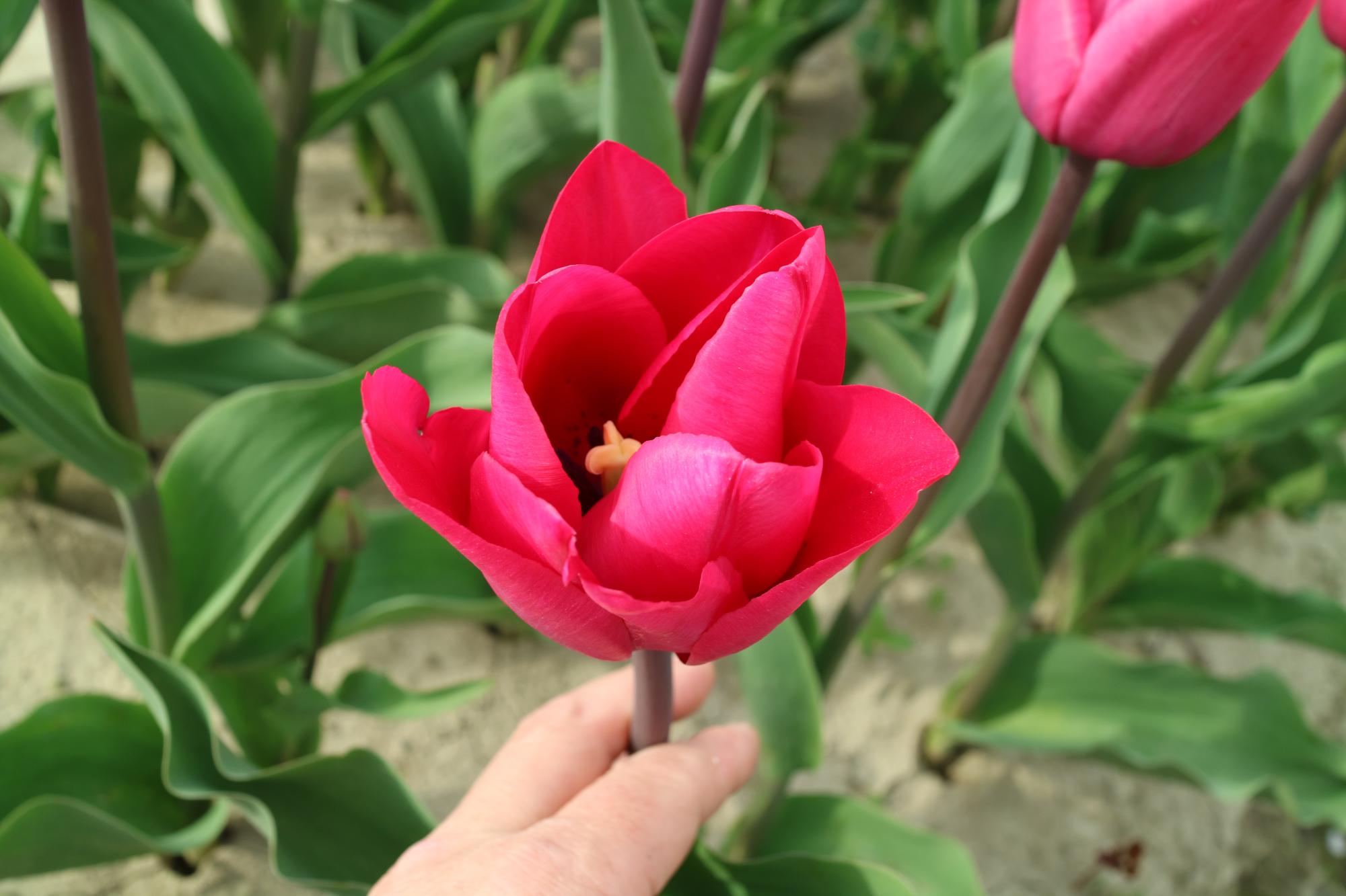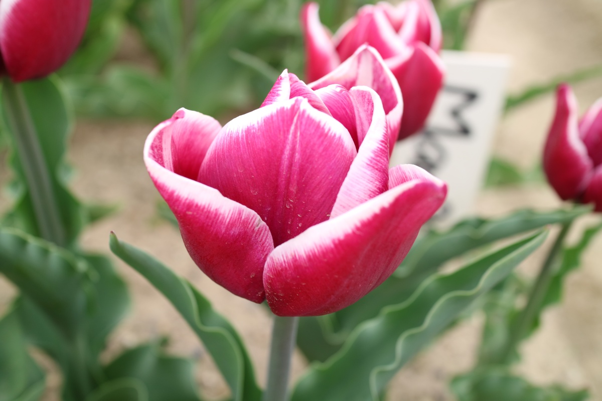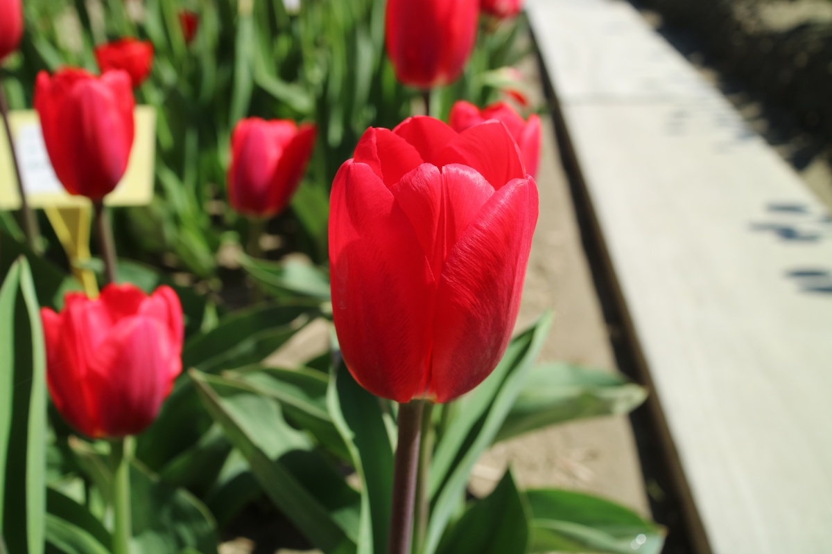 リンファンダーマーク LeenvanderMark T ・Red/White ・Medium、赤にクリームふち ・レーンバンデルマルク。1968年登録。オランダでも日本でも作付けの多いロングセラー。胎内市でも生産されている |