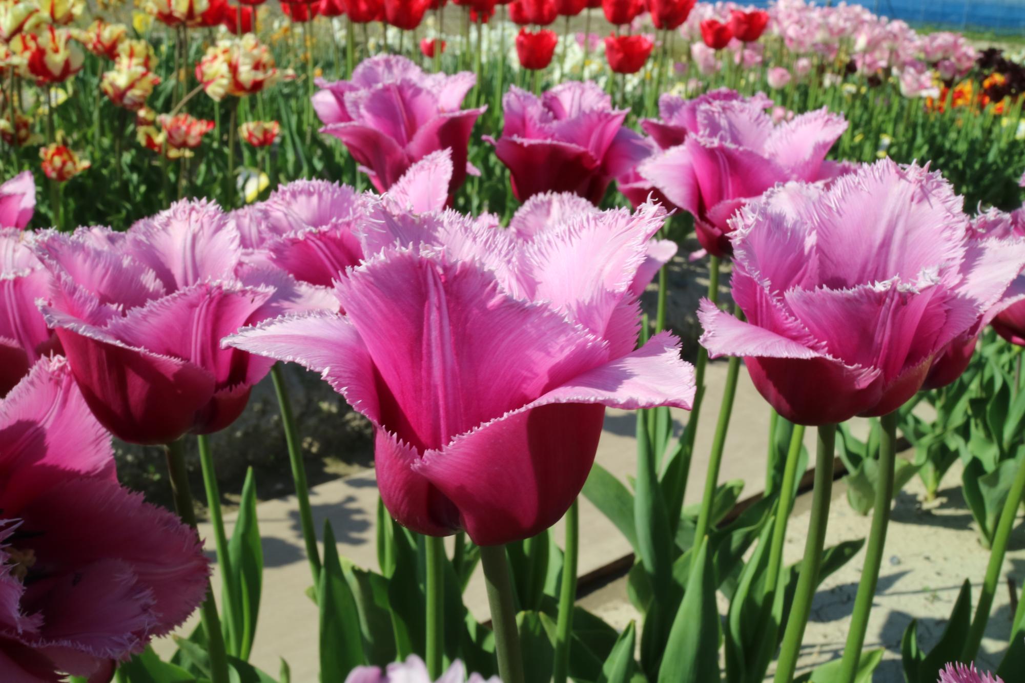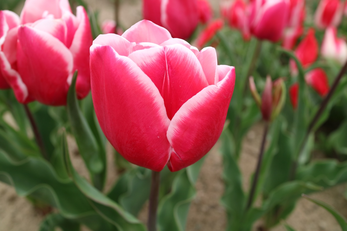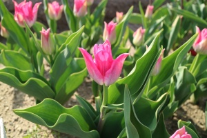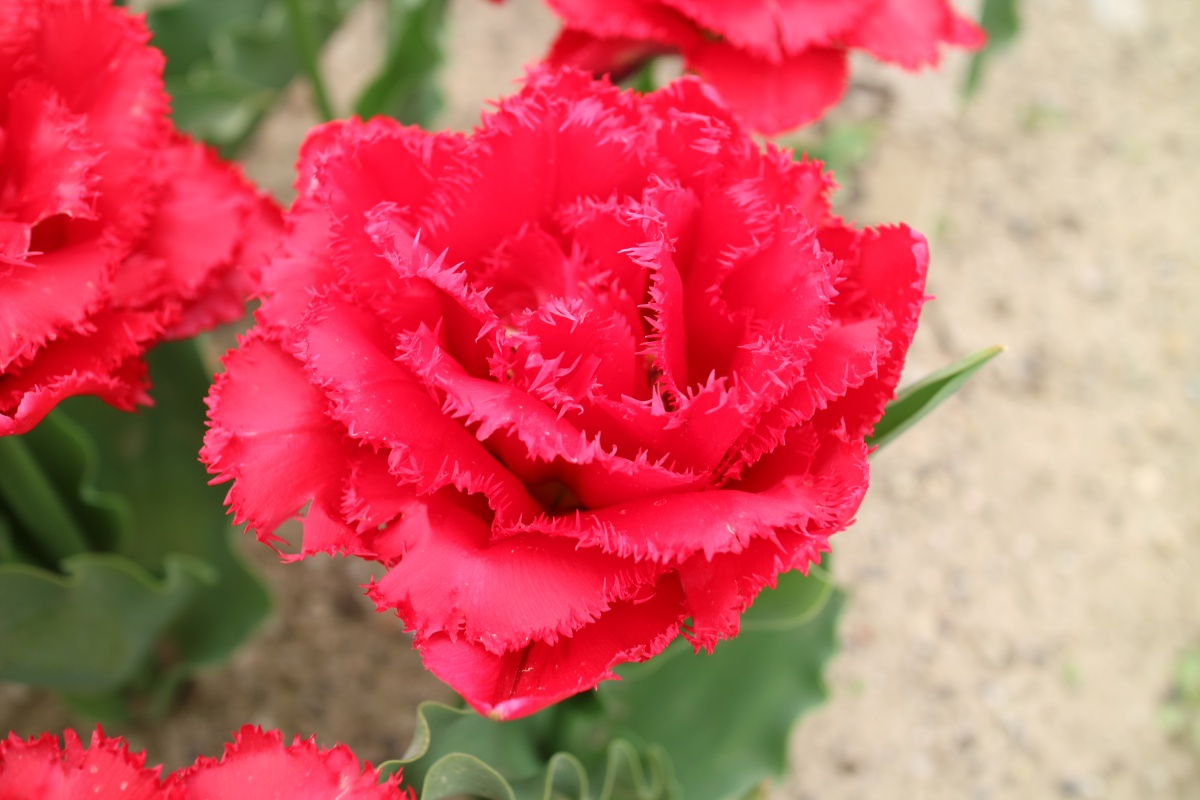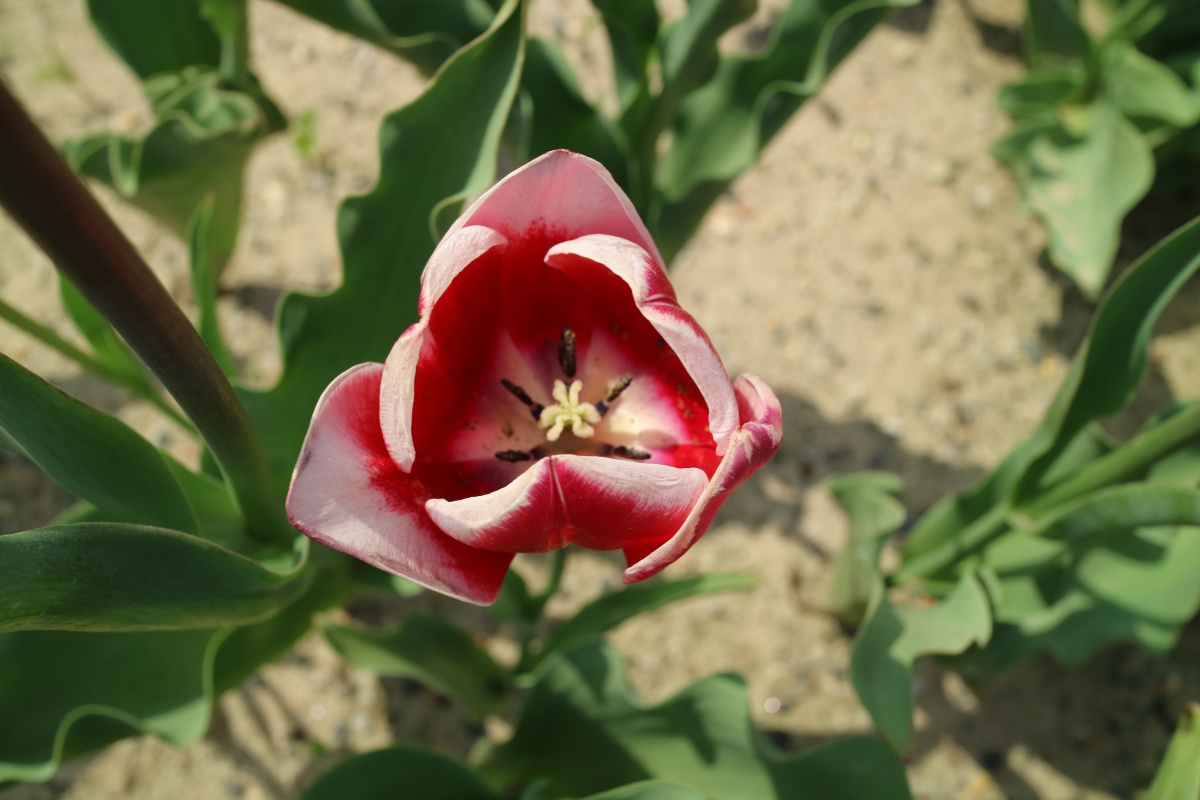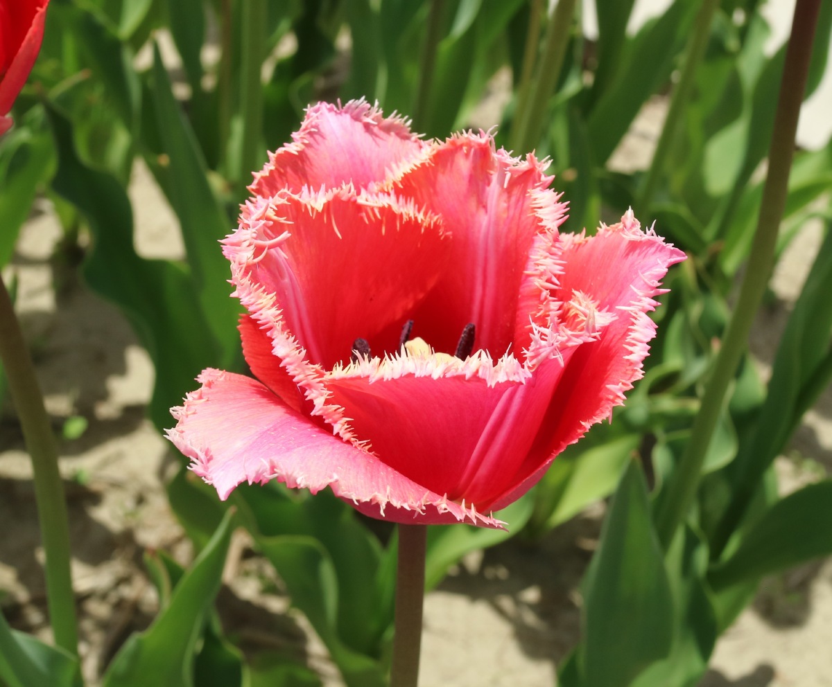 リンファンダーマーク LeenvanderMark T ・Red/White ・Medium、赤にクリームふち ・レーンバンデルマルク。1968年登録。オランダでも日本でも作付けの多いロングセラー。胎内市でも生産されている |