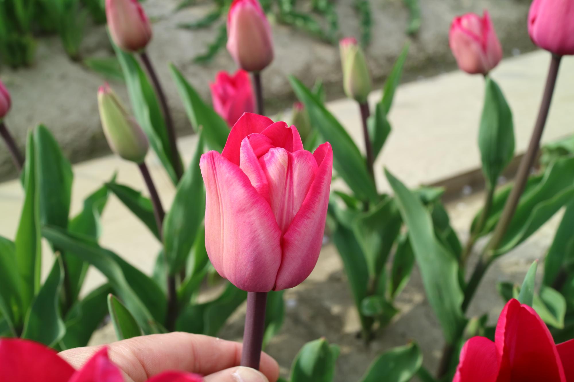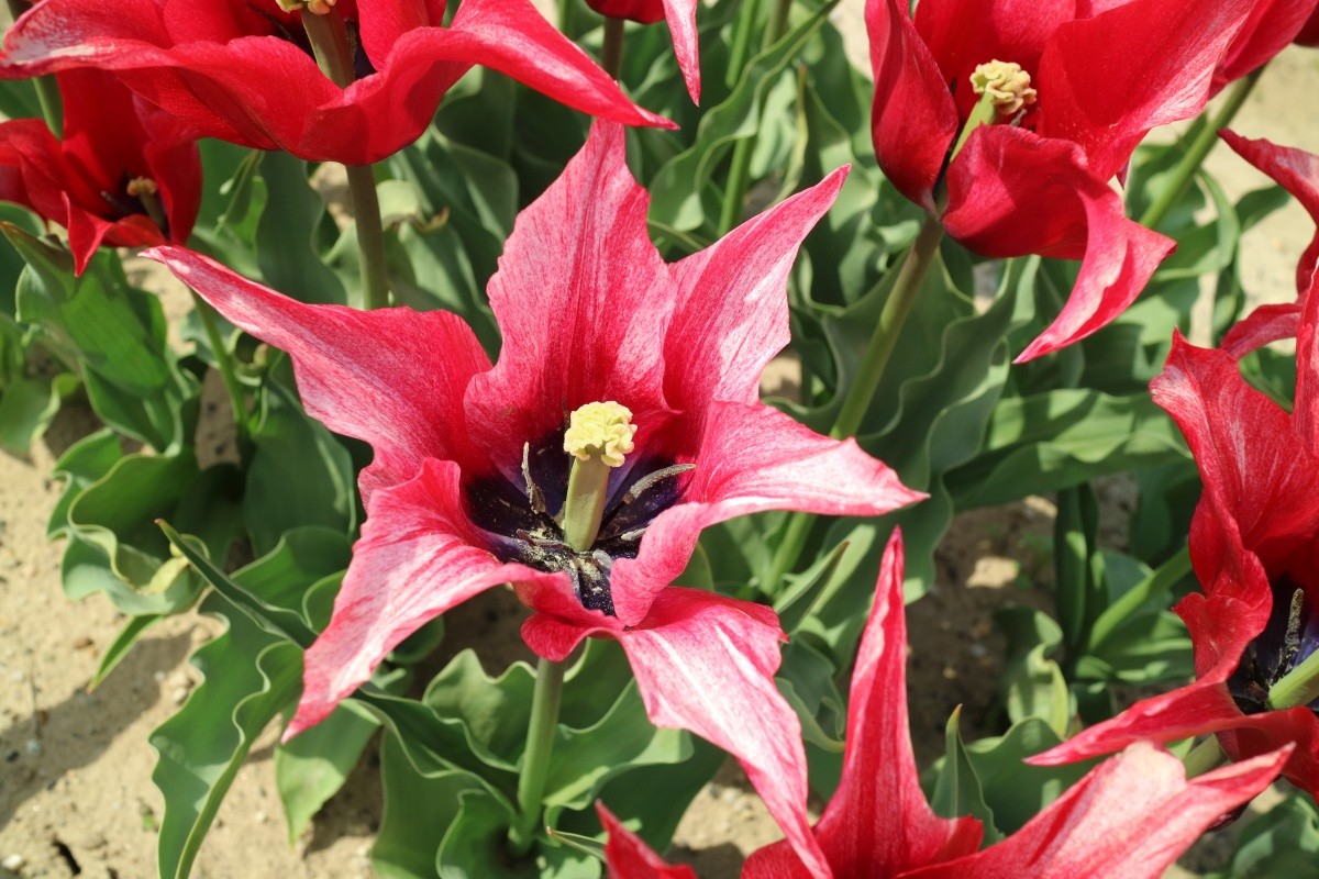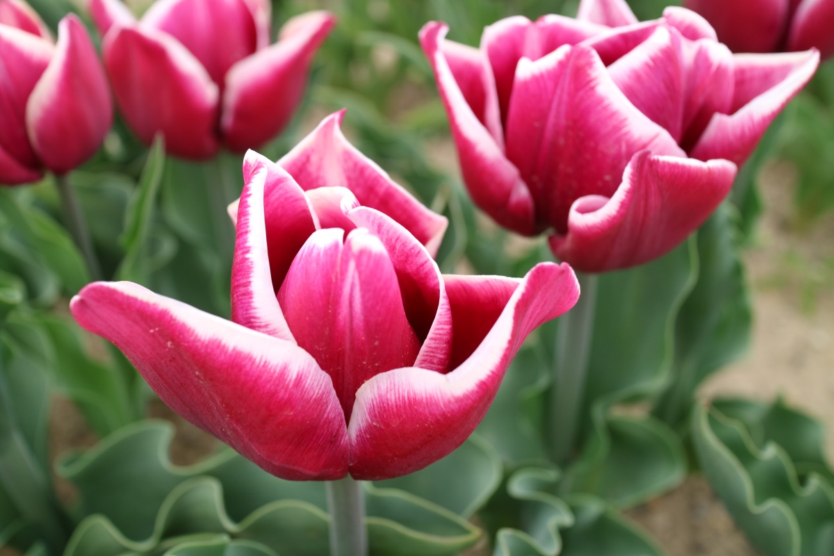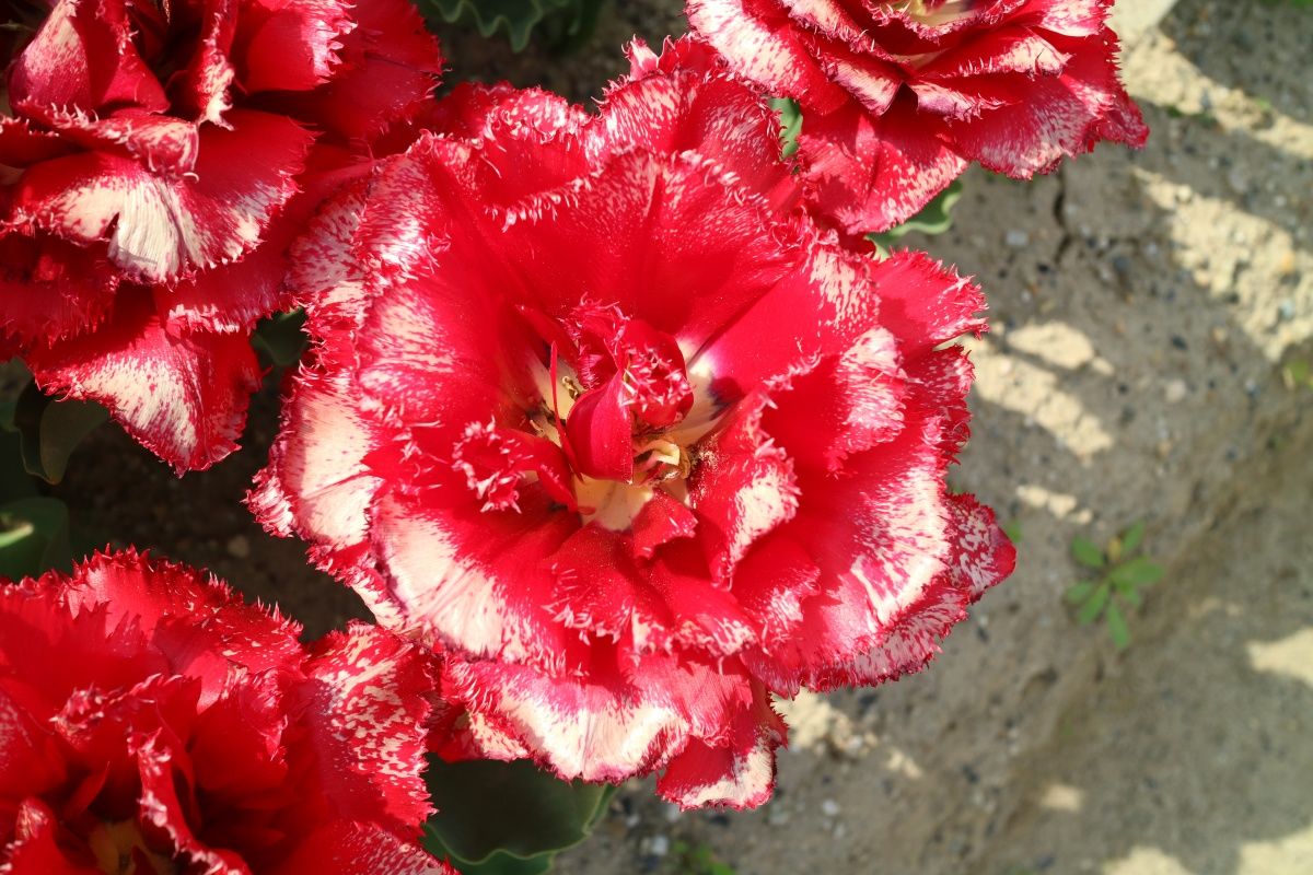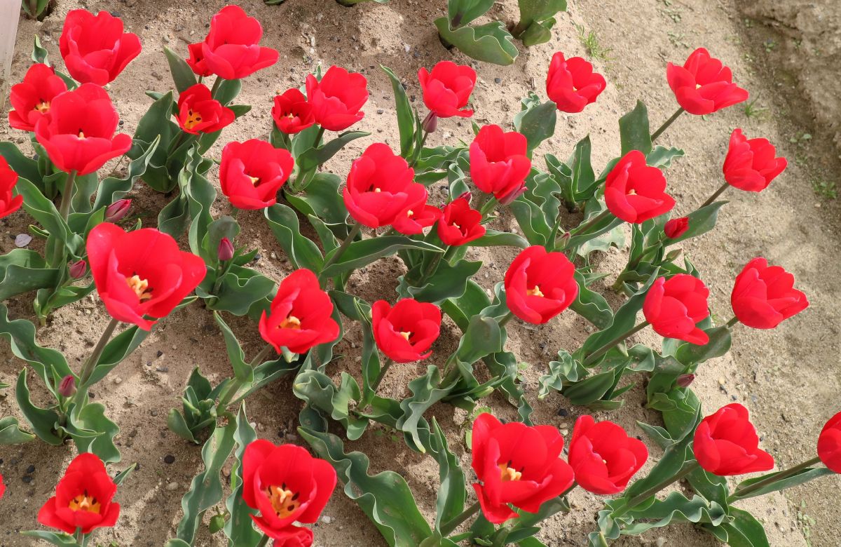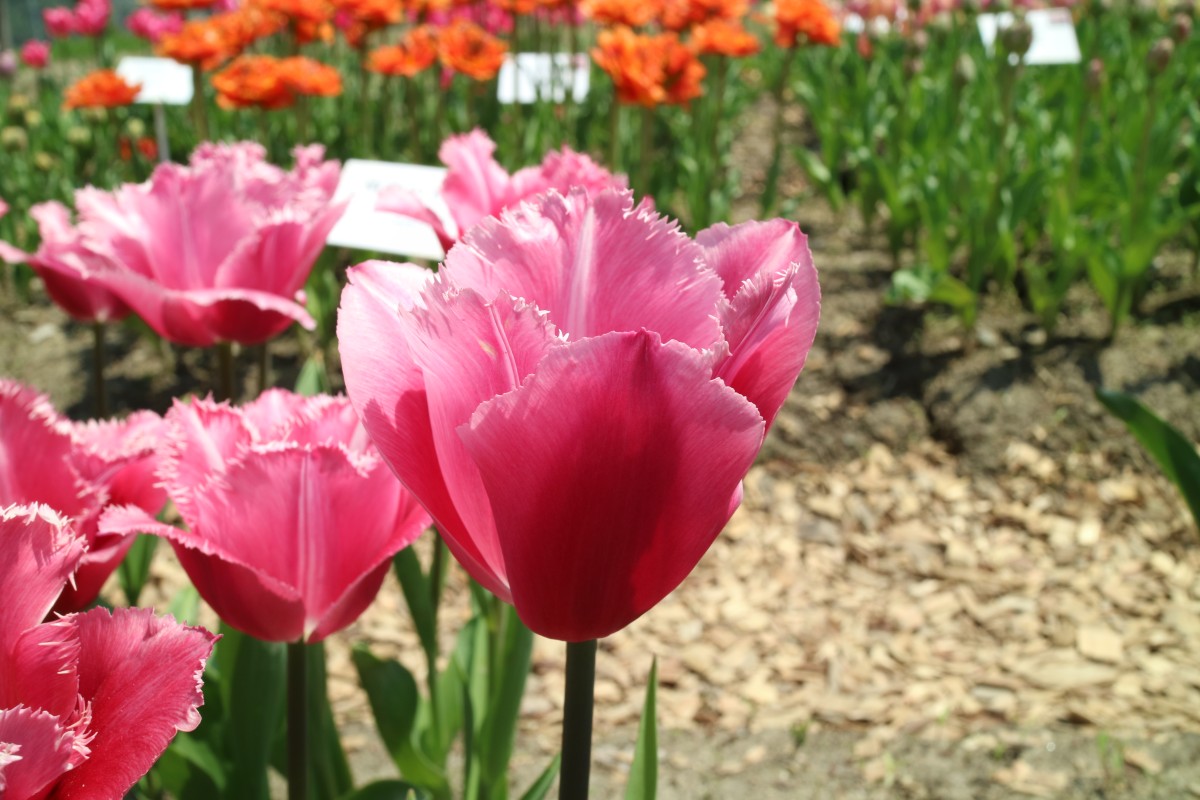 リンファンダーマーク LeenvanderMark T ・Red/White ・Medium、赤にクリームふち ・レーンバンデルマルク。1968年登録。オランダでも日本でも作付けの多いロングセラー。胎内市でも生産されている |