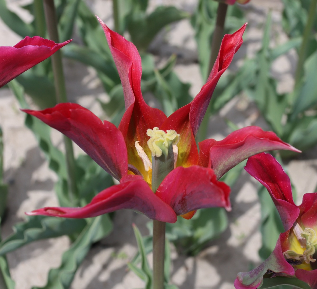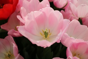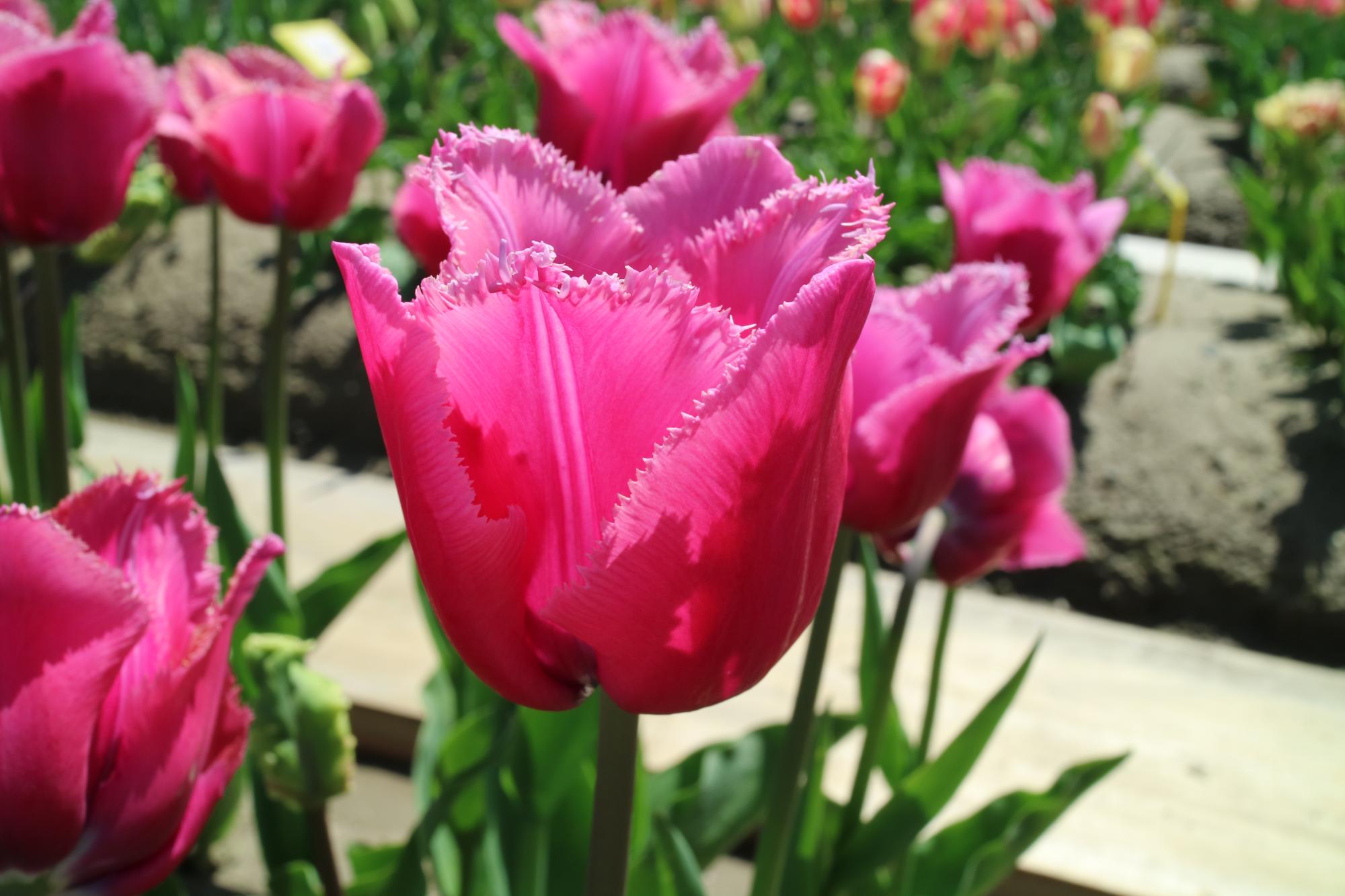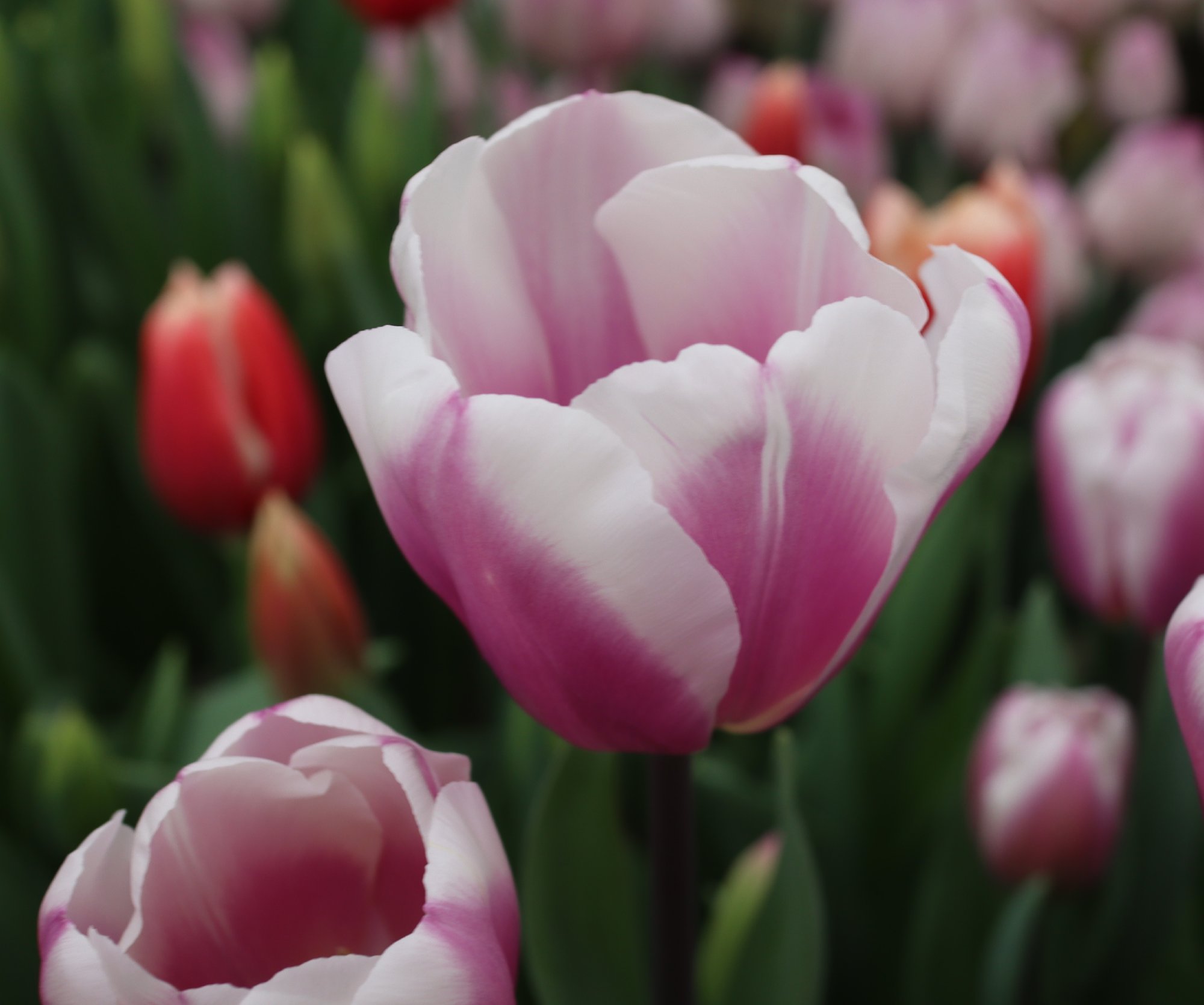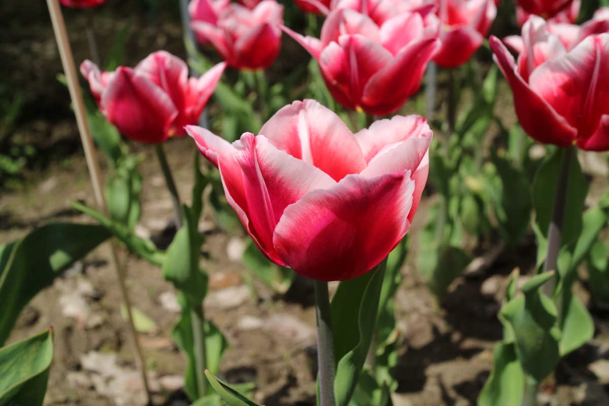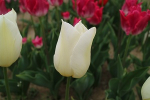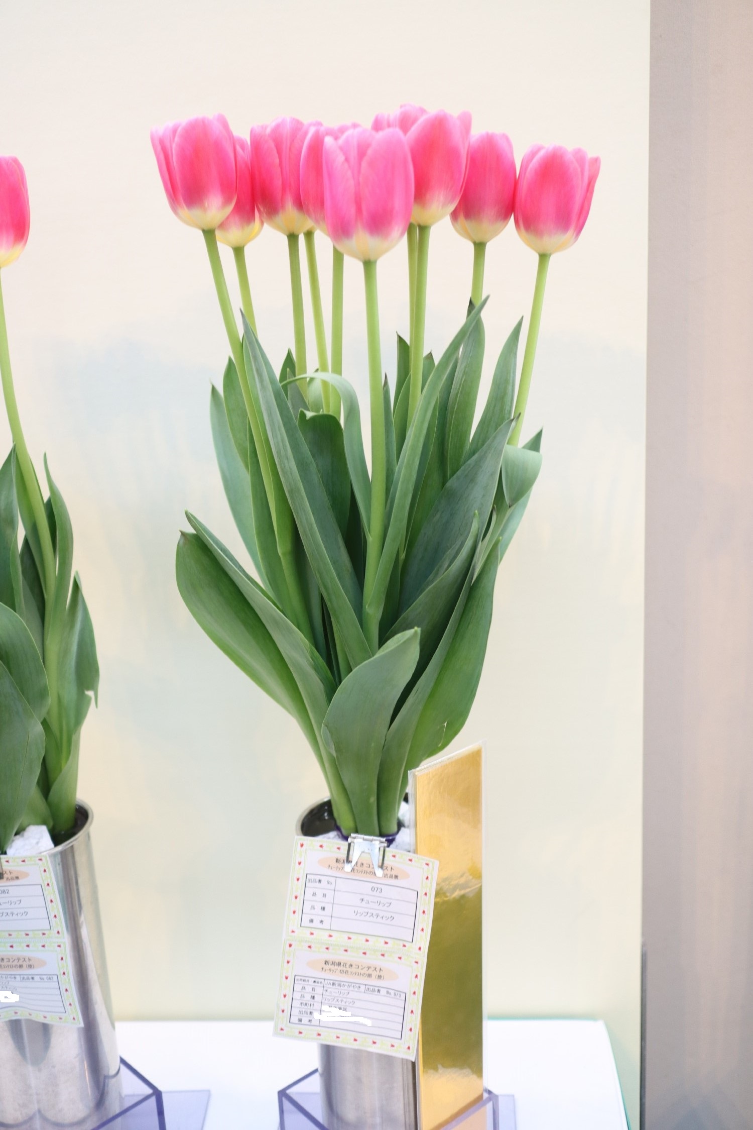 リンファンダーマーク LeenvanderMark T ・Red/White ・Medium、赤にクリームふち ・レーンバンデルマルク。1968年登録。オランダでも日本でも作付けの多いロングセラー。胎内市でも生産されている |