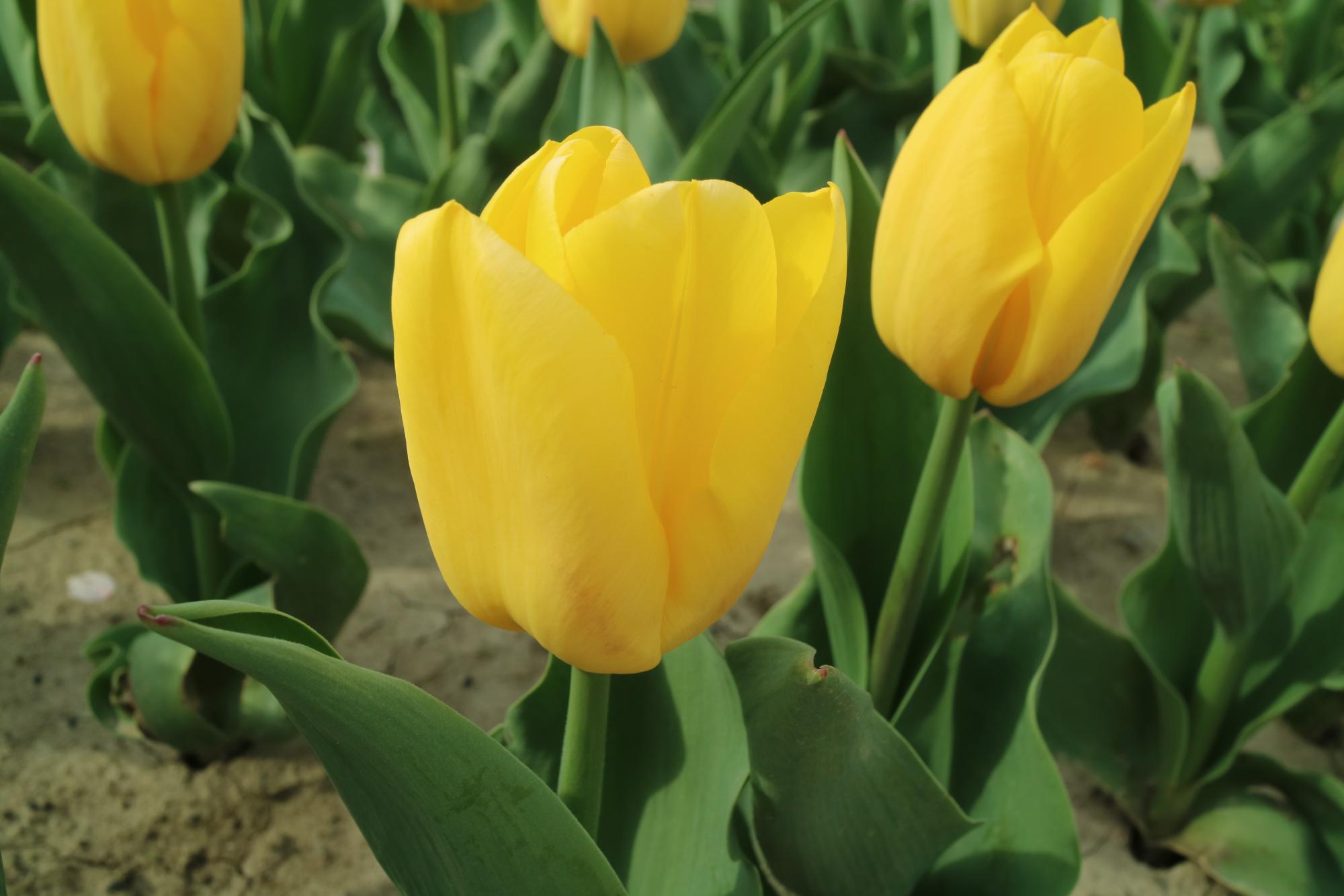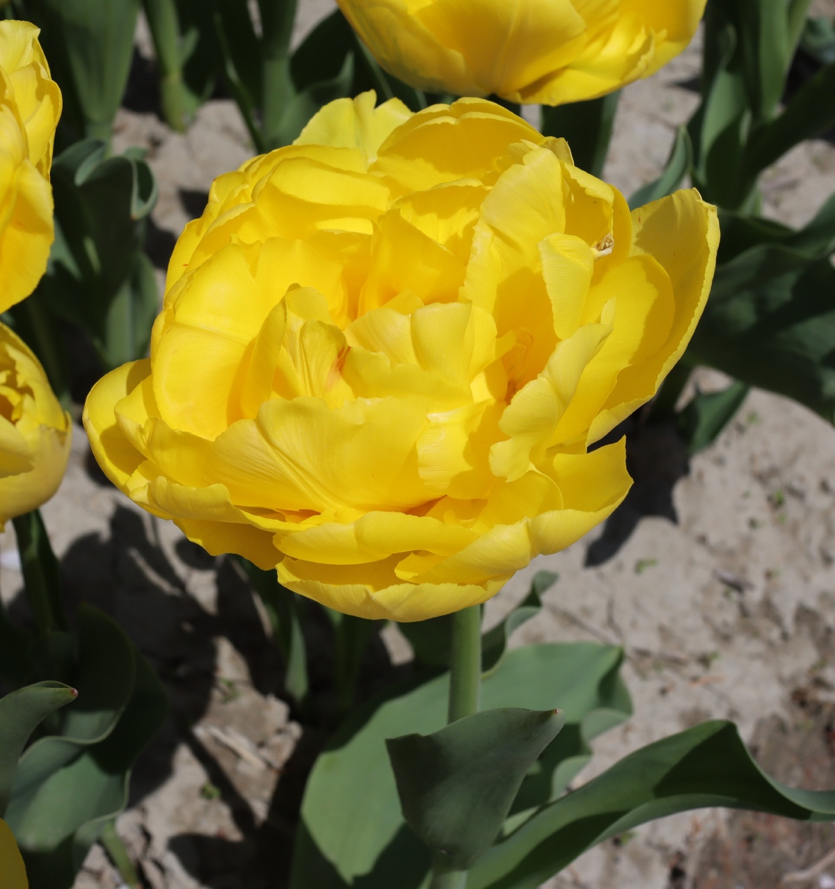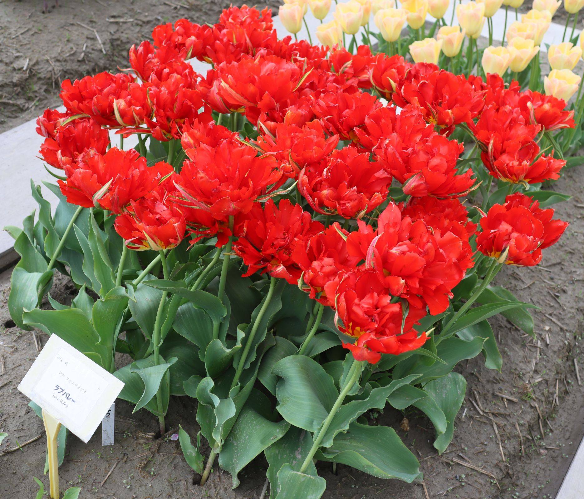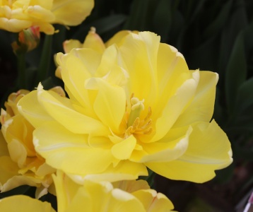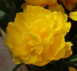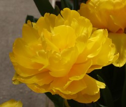 | リムジン Limousine DE ・八重早咲き系。黄色の八重の中で大きなシェアを占める。花首がやや弱く雨で折れやすい。 |
