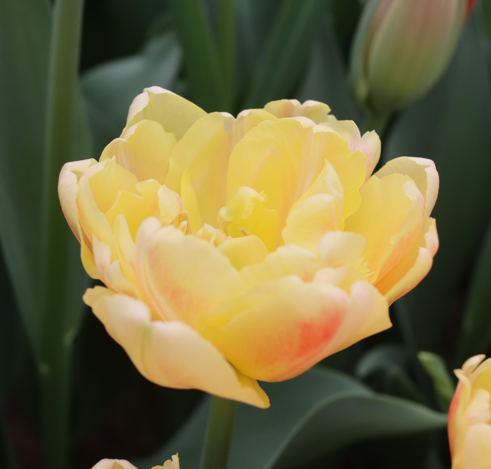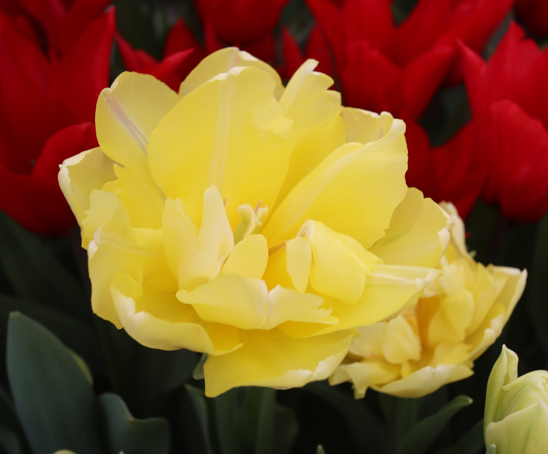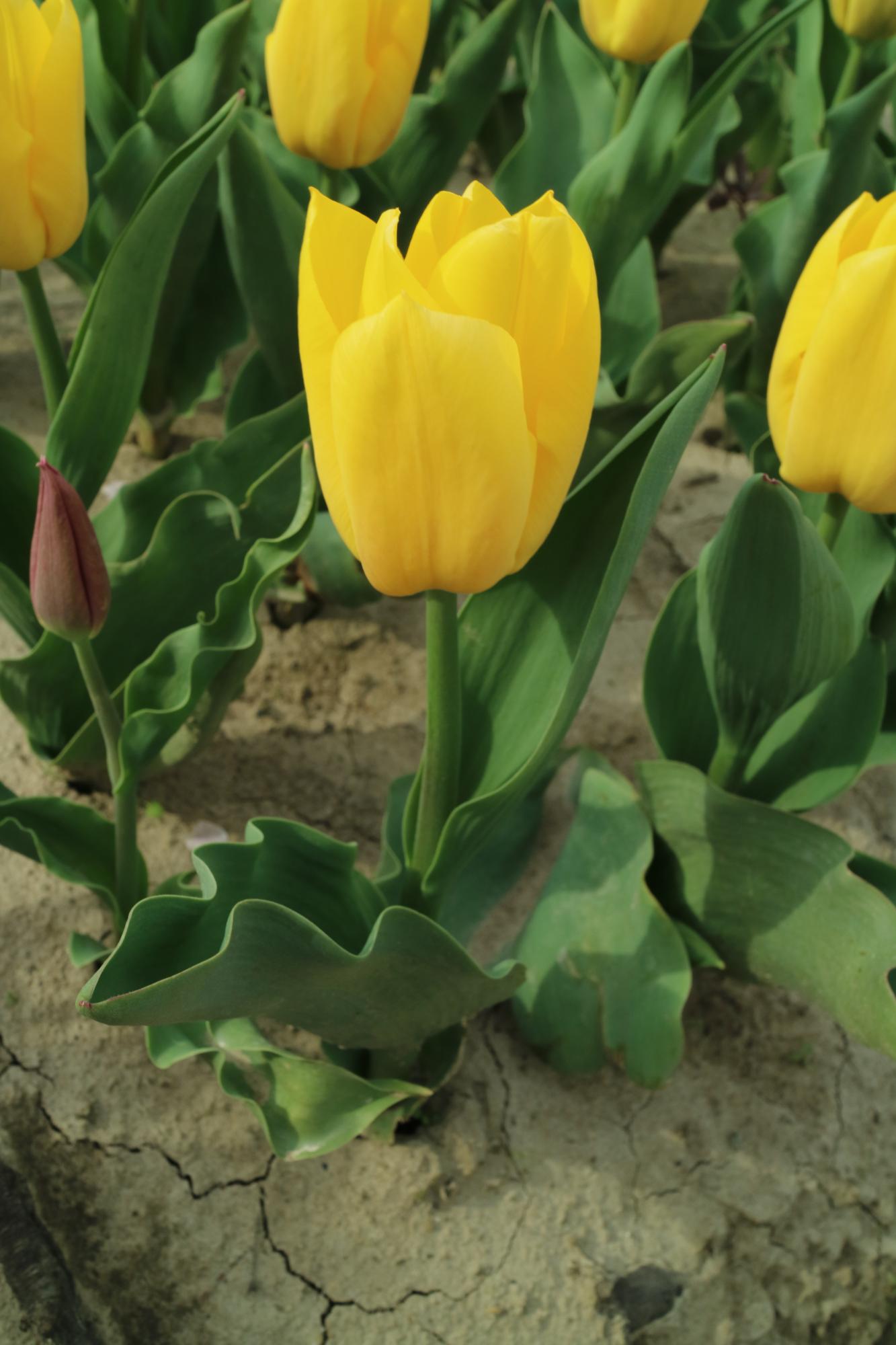 | リムジン Limousine DE ・八重早咲き系。黄色の八重の中で大きなシェアを占める。花首がやや弱く雨で折れやすい。 |