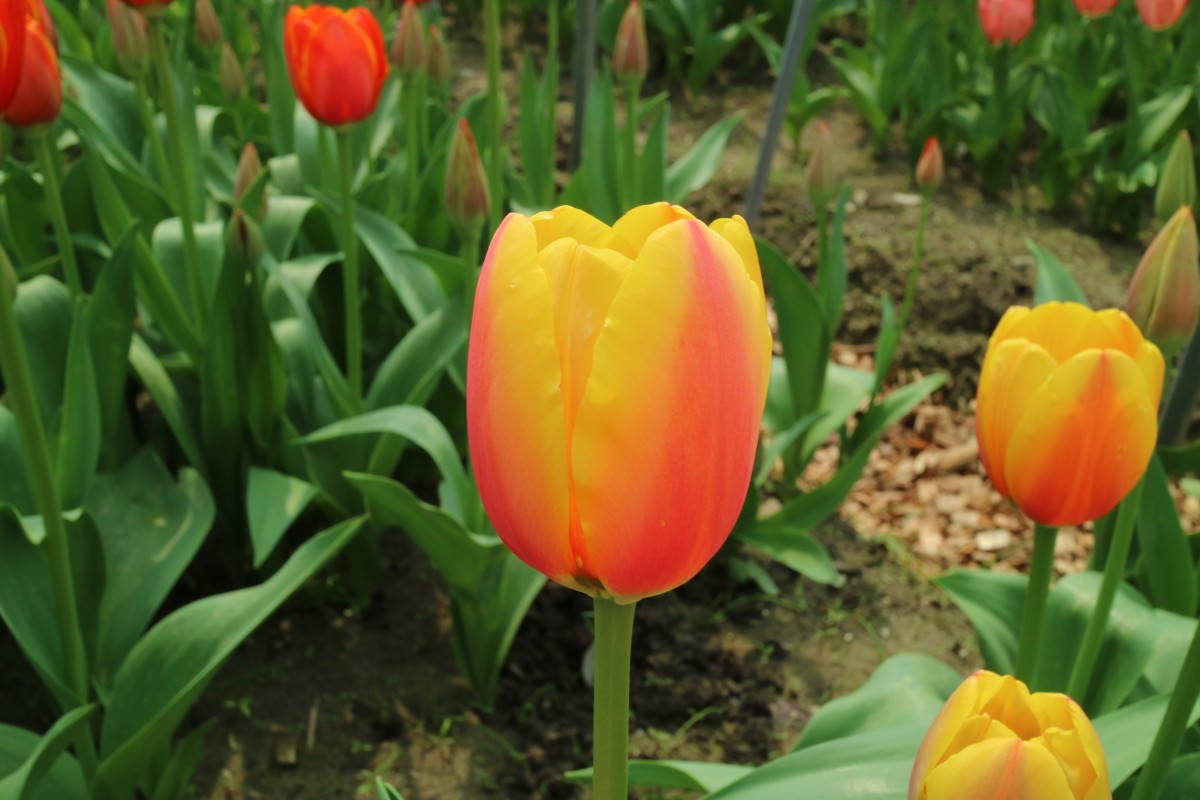 ワールドピース WorldPeace DH ・Orange/Yellow、橙/黄 ・Medium、ワールドフェイバリットの枝変わり ・DH系ワールズフェイバリットのスポート(突然変異)で生まれた品種 |